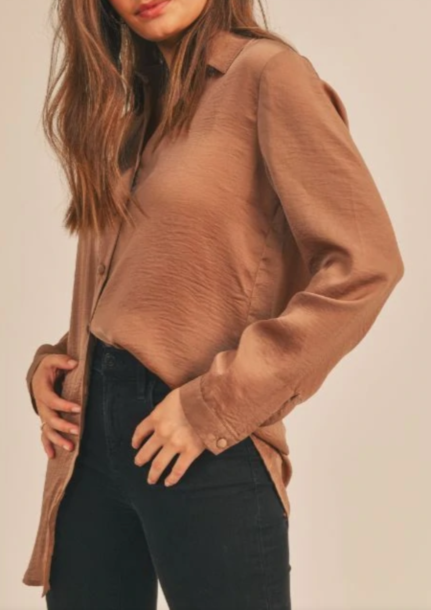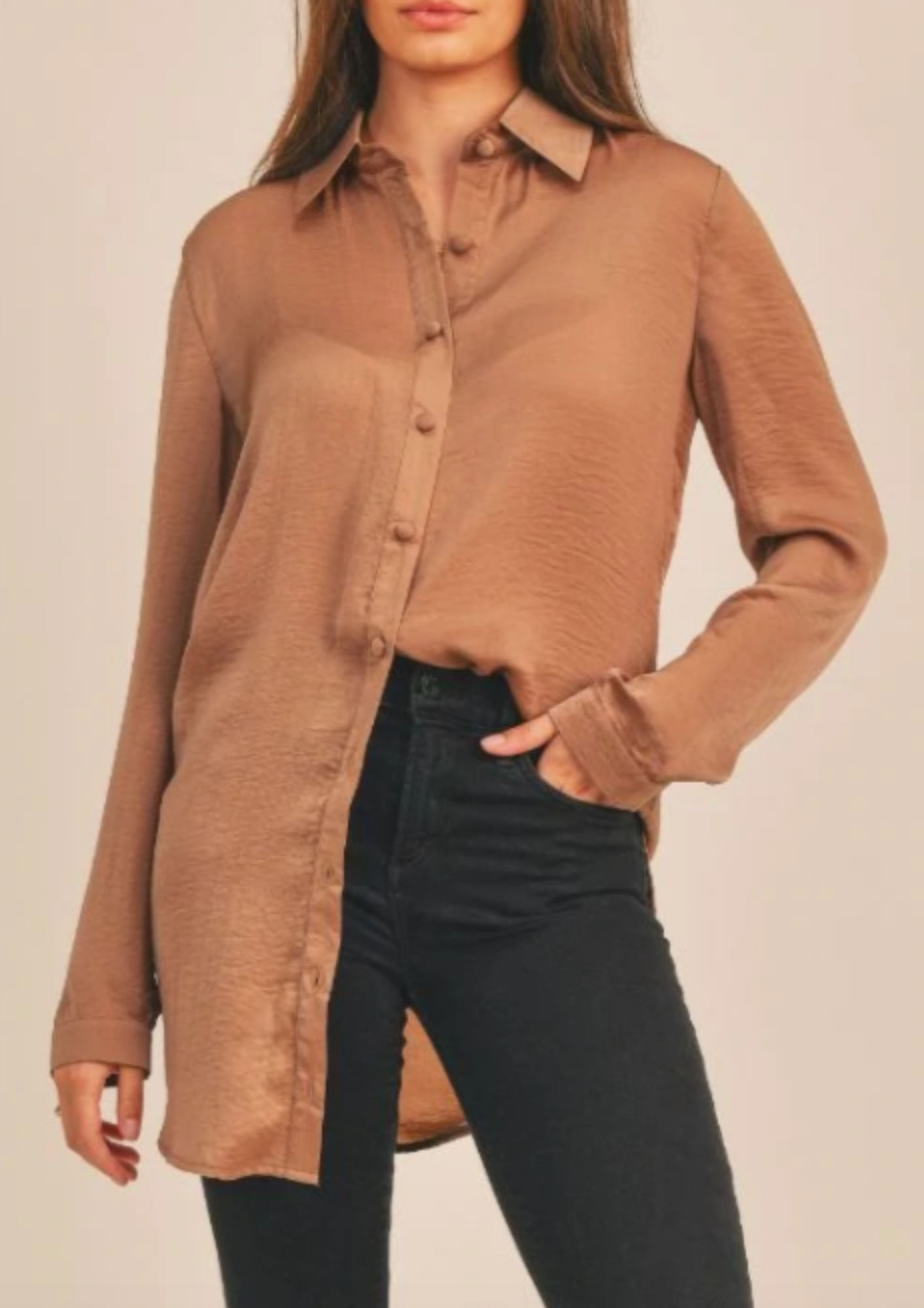The Admire You Shirt Dress has endless styling opportunities! Wear it as a dress for date night or put it on over black pants for a more professional look! We love the slight sheen to make it more elevated!