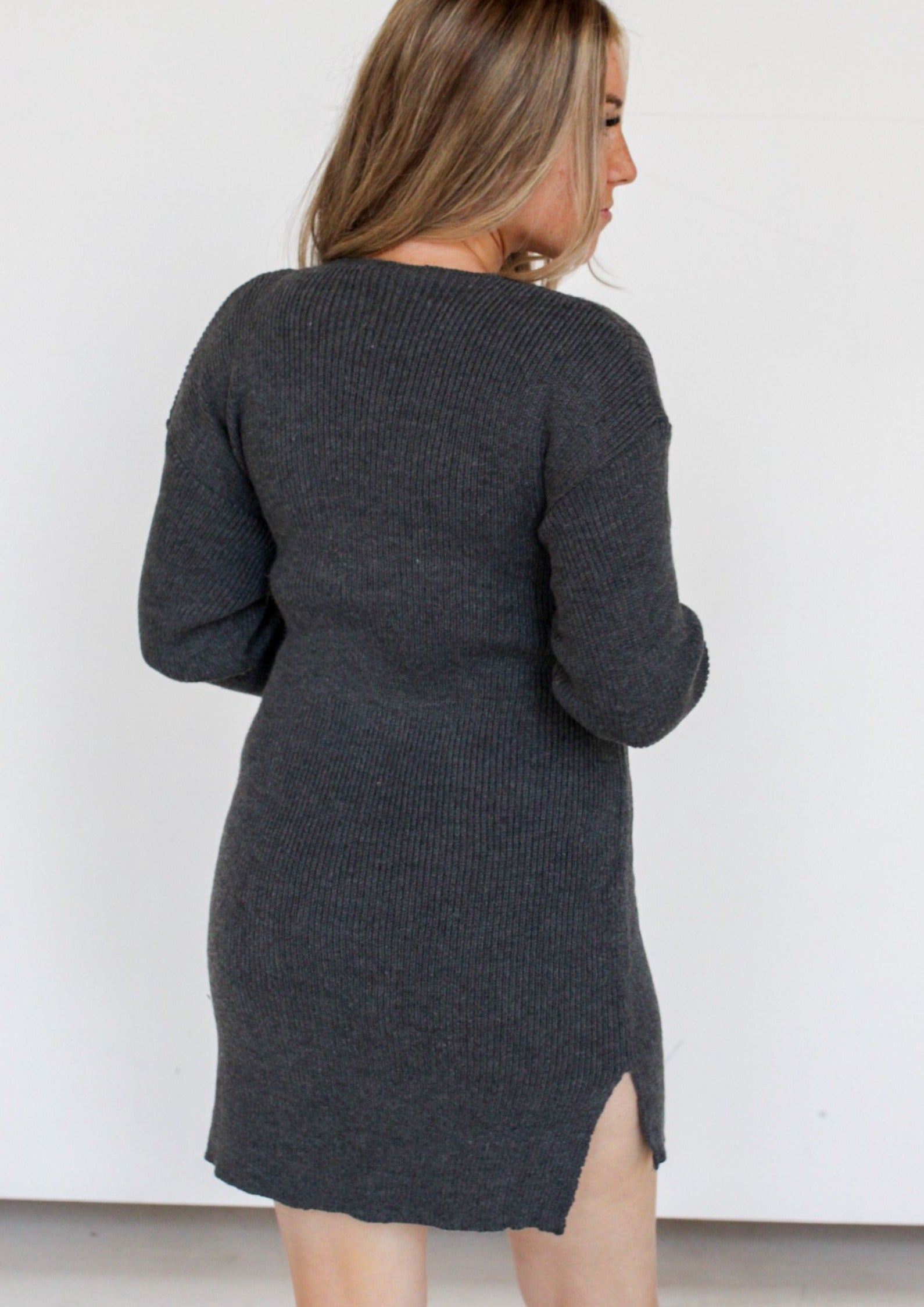 We love the tie detail on the Ari Surplice dress. It has the look of a wrap dress and creates a super flattering neckline. This dress is a thick knit and will keep you warm through the cooler months!