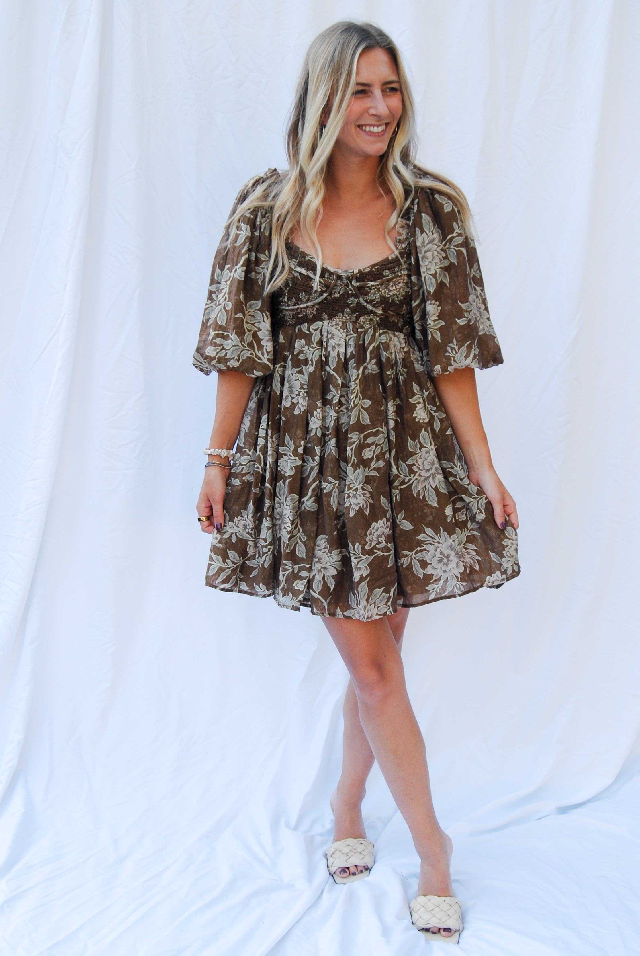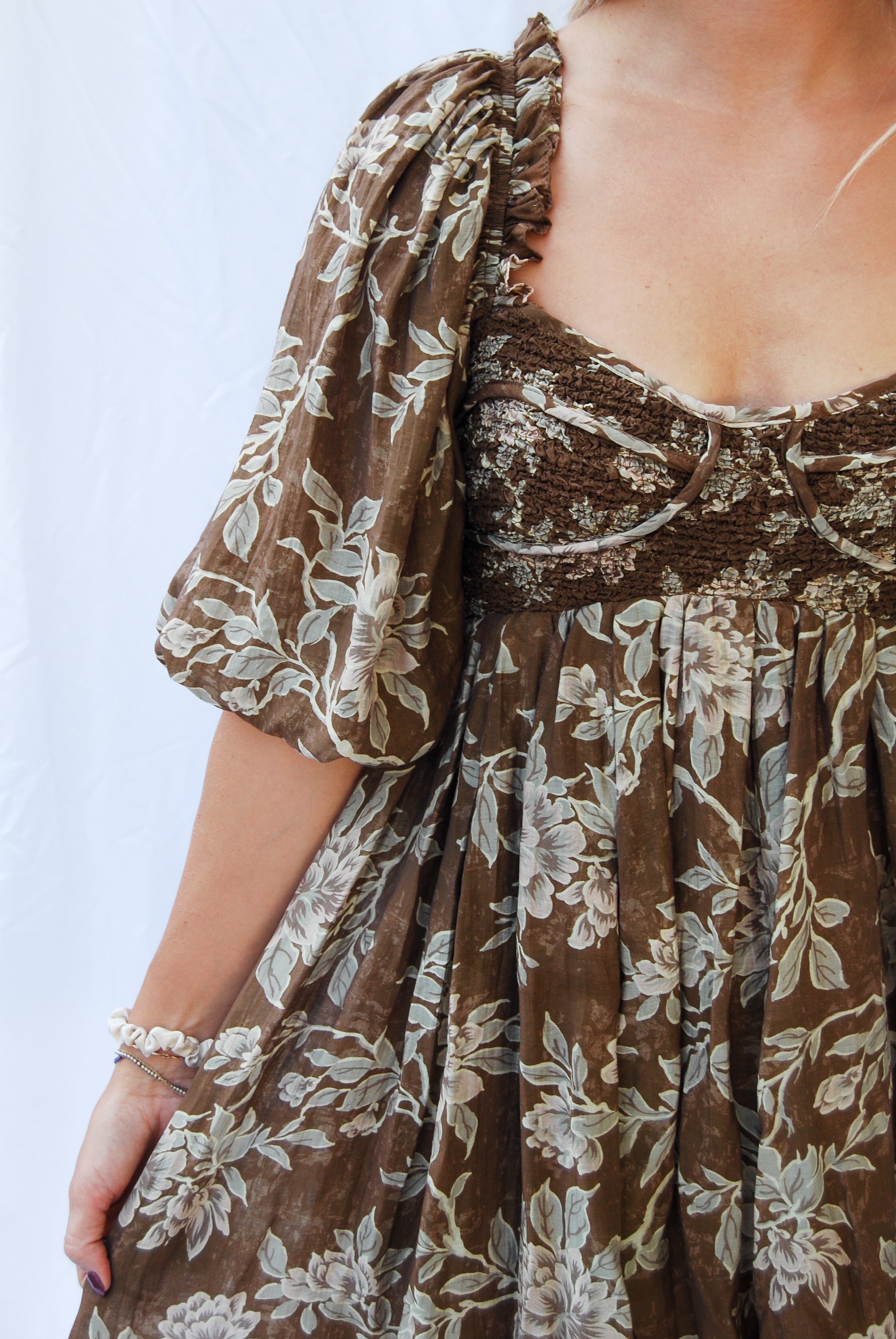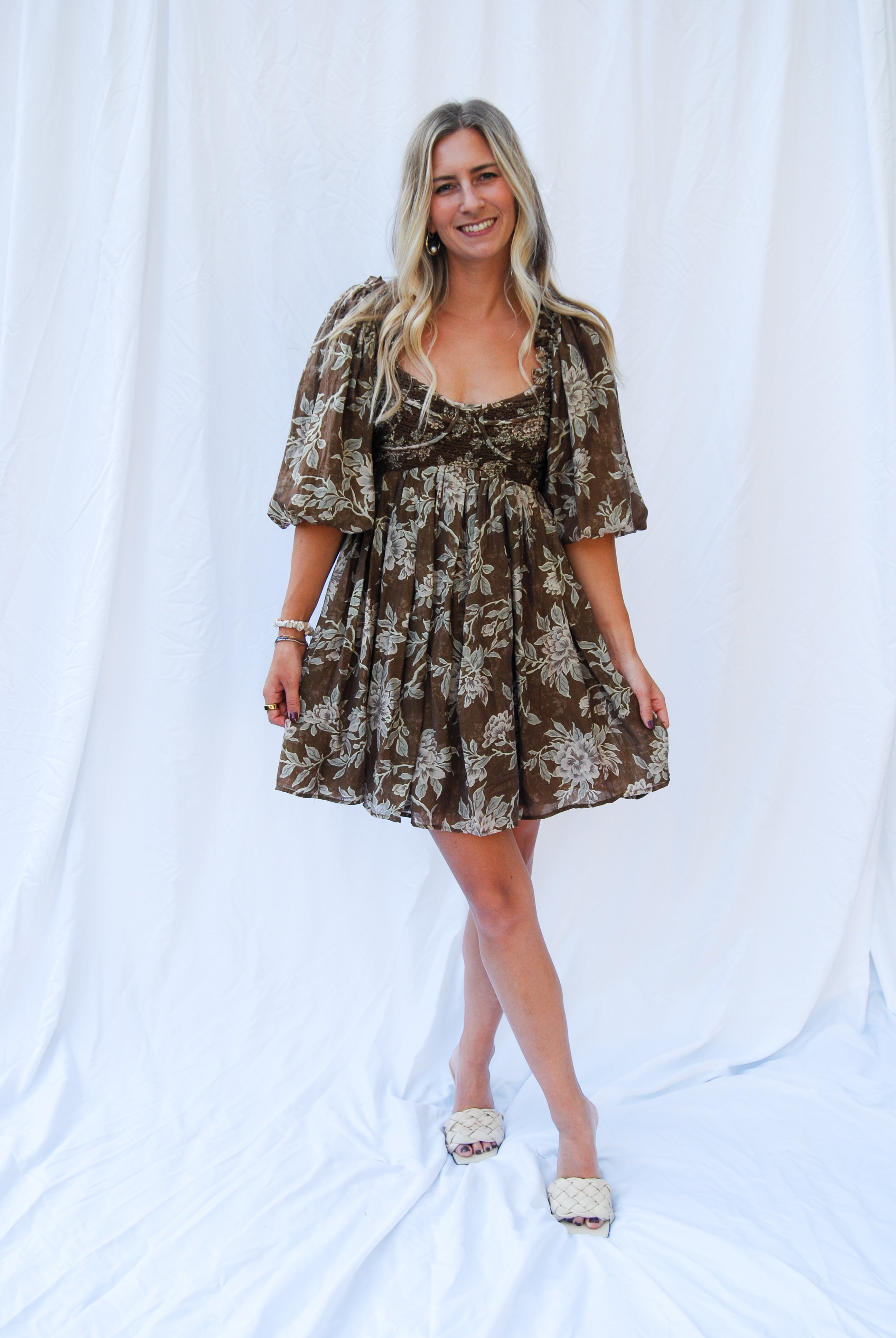 Turn heads in the playful Autumn Mini Dress, featuring charming puff sleeves and a flattering bustier detail. The delicate floral pattern adds a touch of whimsy, while the back zipper ensures a perfect fit. Dress it up with heels or keep it casual with sneakers—this versatile piece is ready to brighten any occasion.