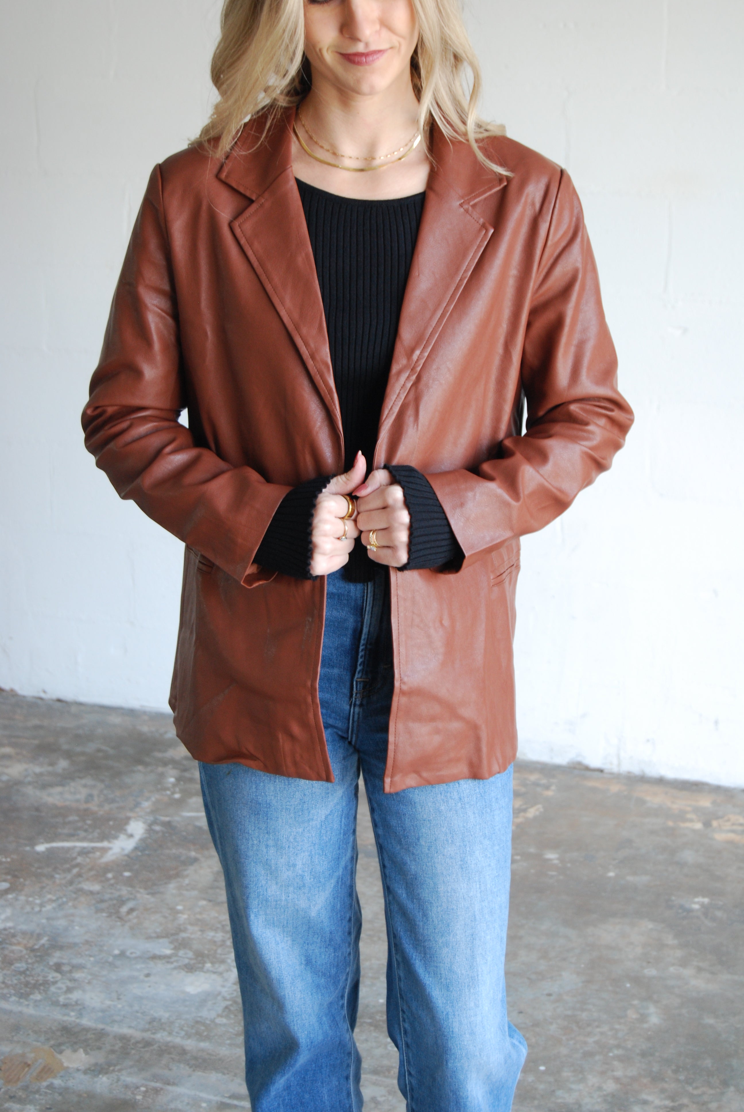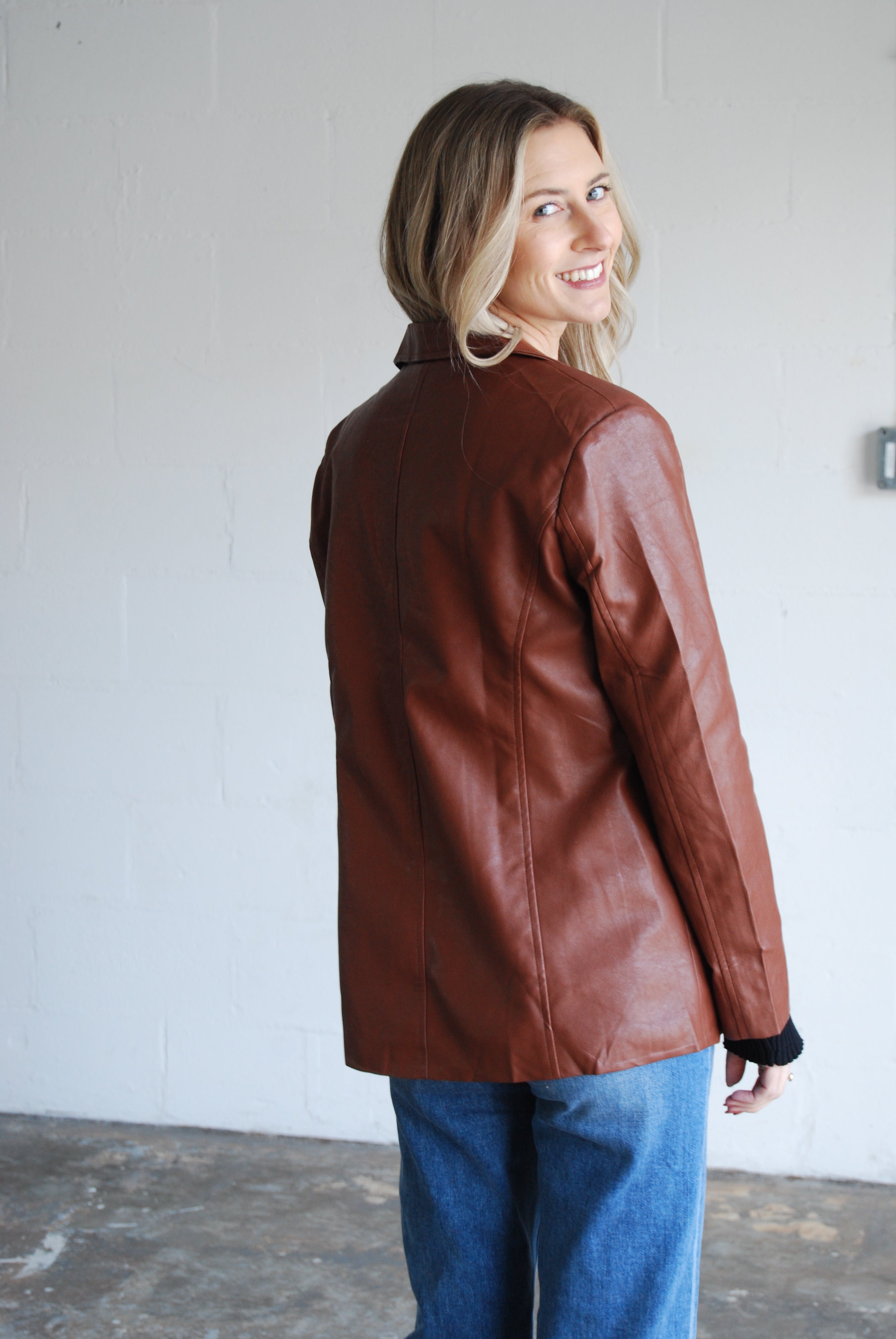 - Faux leather blazer