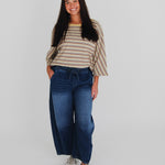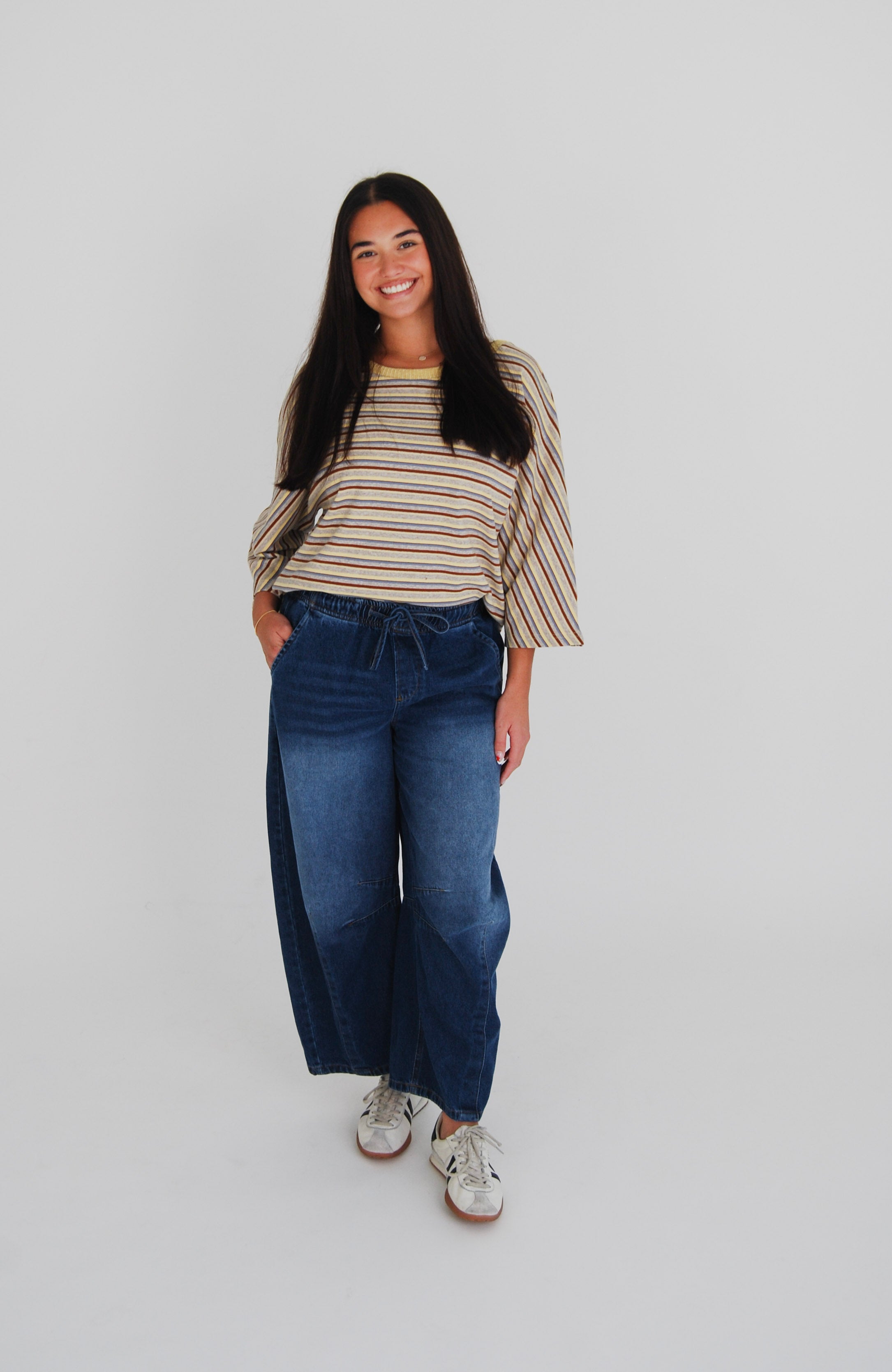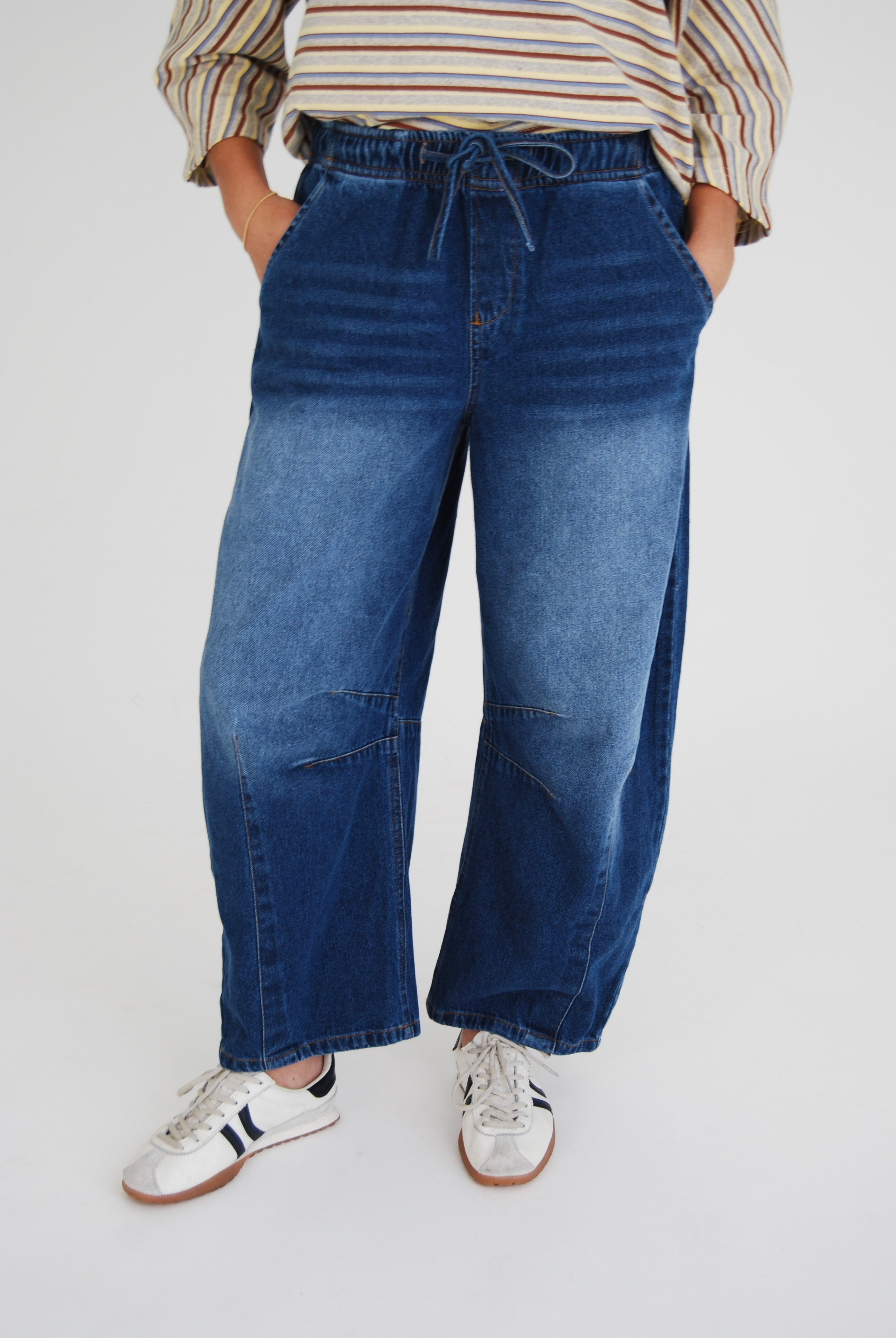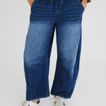 Meet your new favorite fall essential — the Cara Barrel Jean! With a comfy drawstring elastic waist and a trendy barrel silhouette, these jeans combine effortless style with all-day ease. Perfect for cozy autumn days, they add a playful, cool vibe to any outfit. Embrace comfort without sacrificing style this season!