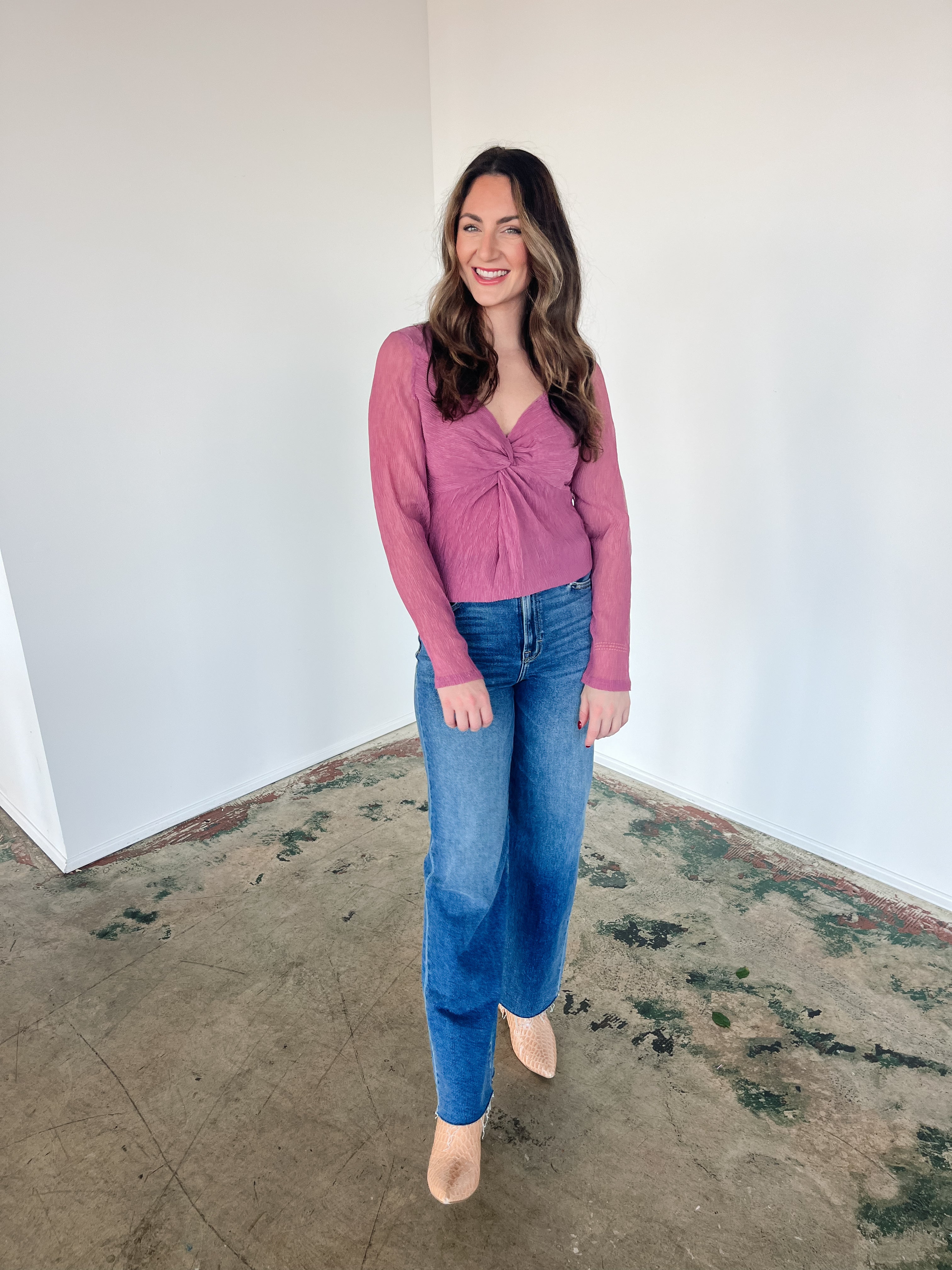 Fun and flirty, the Carmela Top features a slight puff sleeve and a front twist detail that is guaranteed to elevate your look this Holiday season!