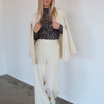 The Carrey Blazer is a statement maker. This classic blazer is a beautiful cream color and features front buttons . Elegant, stylish and timeless this is a must have in your closet. Also, pair with our Carrey Wide leg trousers for a fashion forward look!