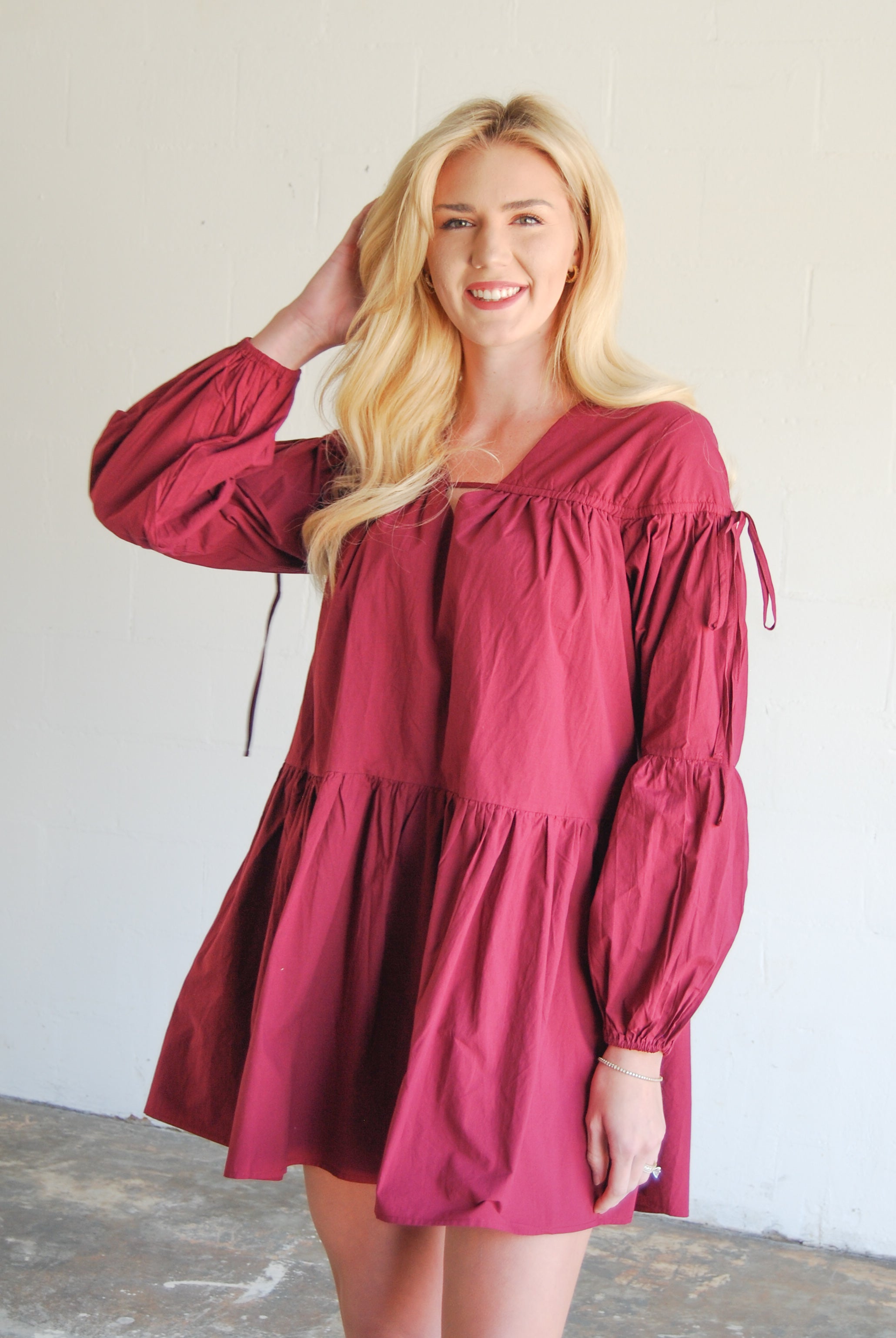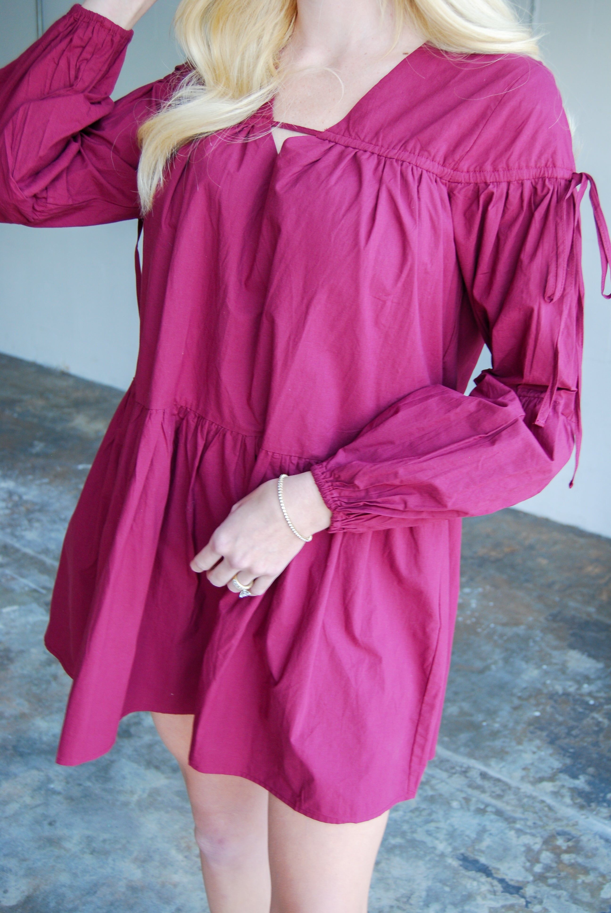 Get ready to turn heads in our Chianti Dress! This mini dress features adjustable sleeve ties at the shoulder and convenient pockets, making it both flirty and functional. The perfect mix of comfort and fun, this dress will have you feeling stylish and confident all day long.