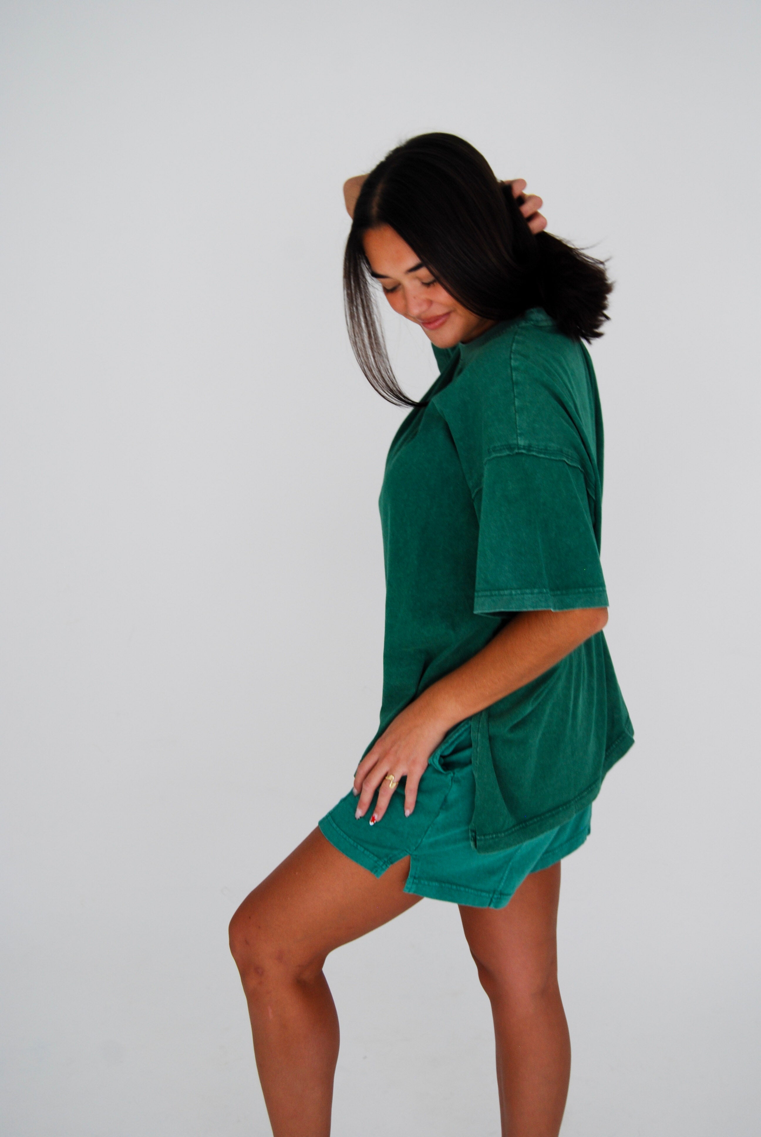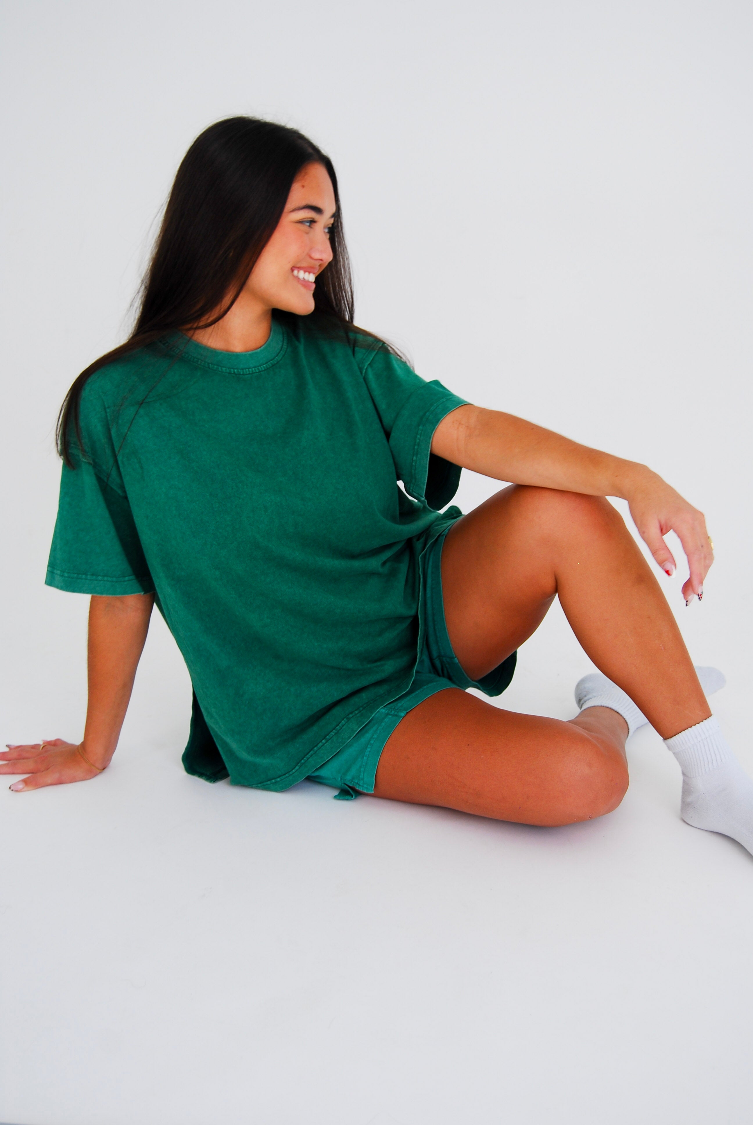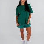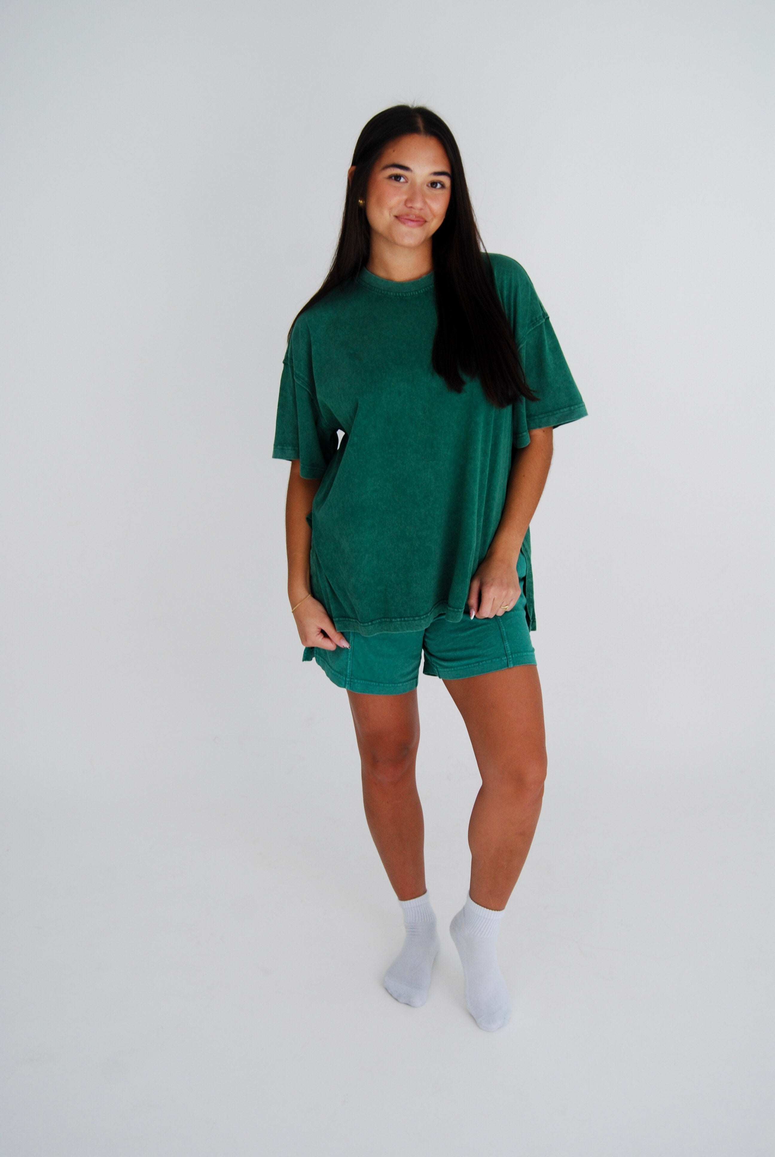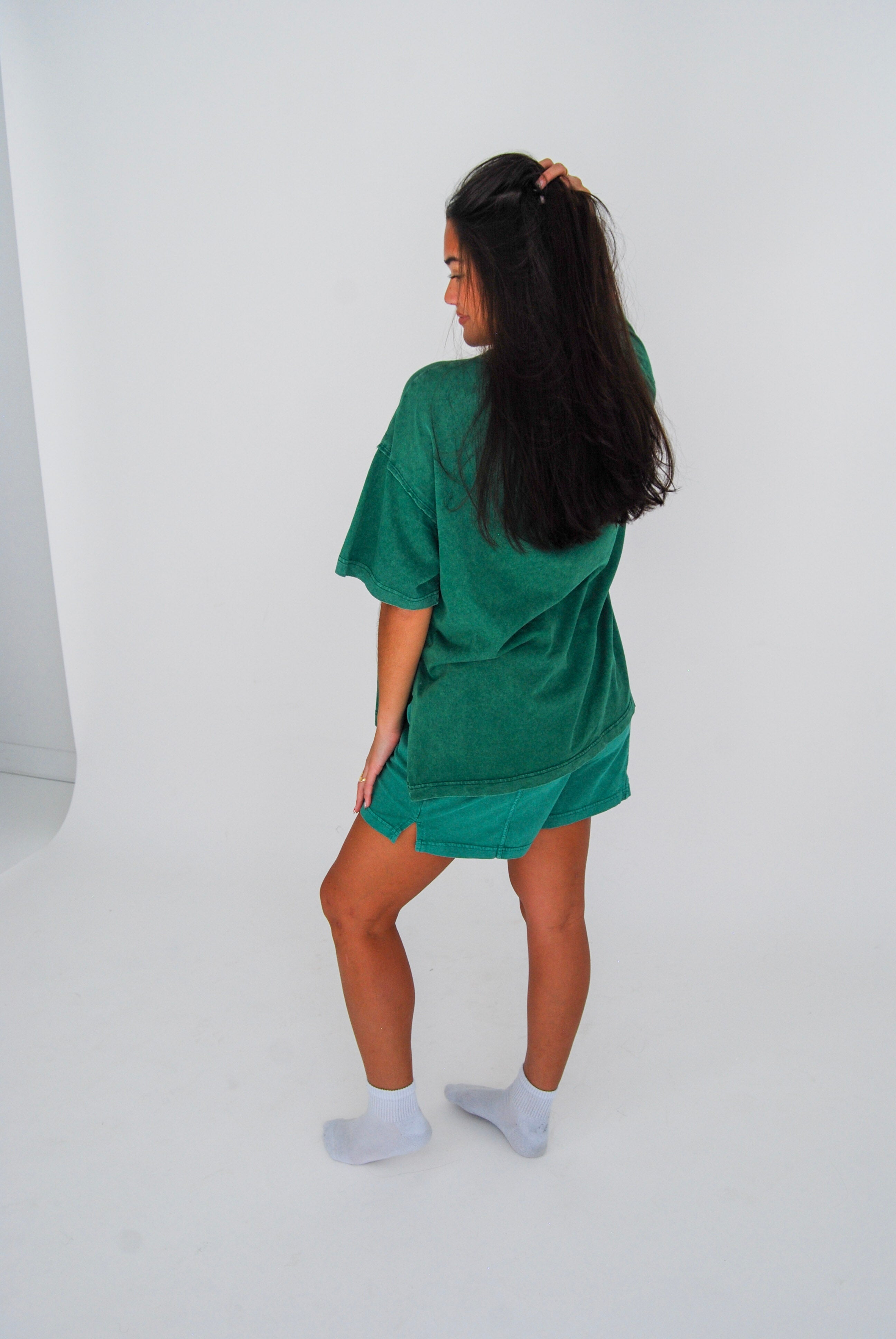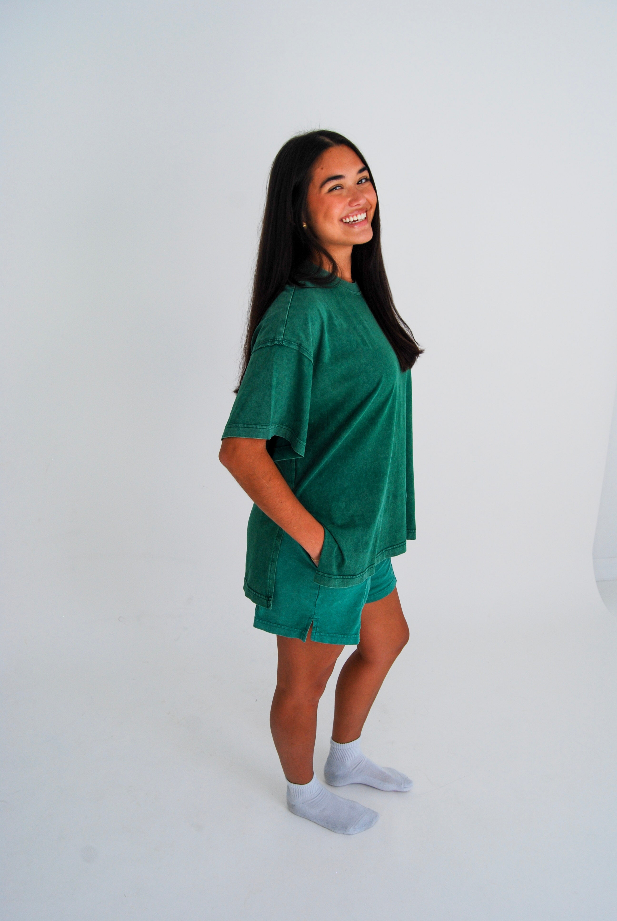 **Please note: due to the mineral wash of this set, the coloring of each piece is unique and may have a slight differentiation from top to the shorts.