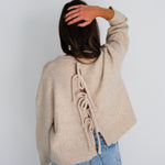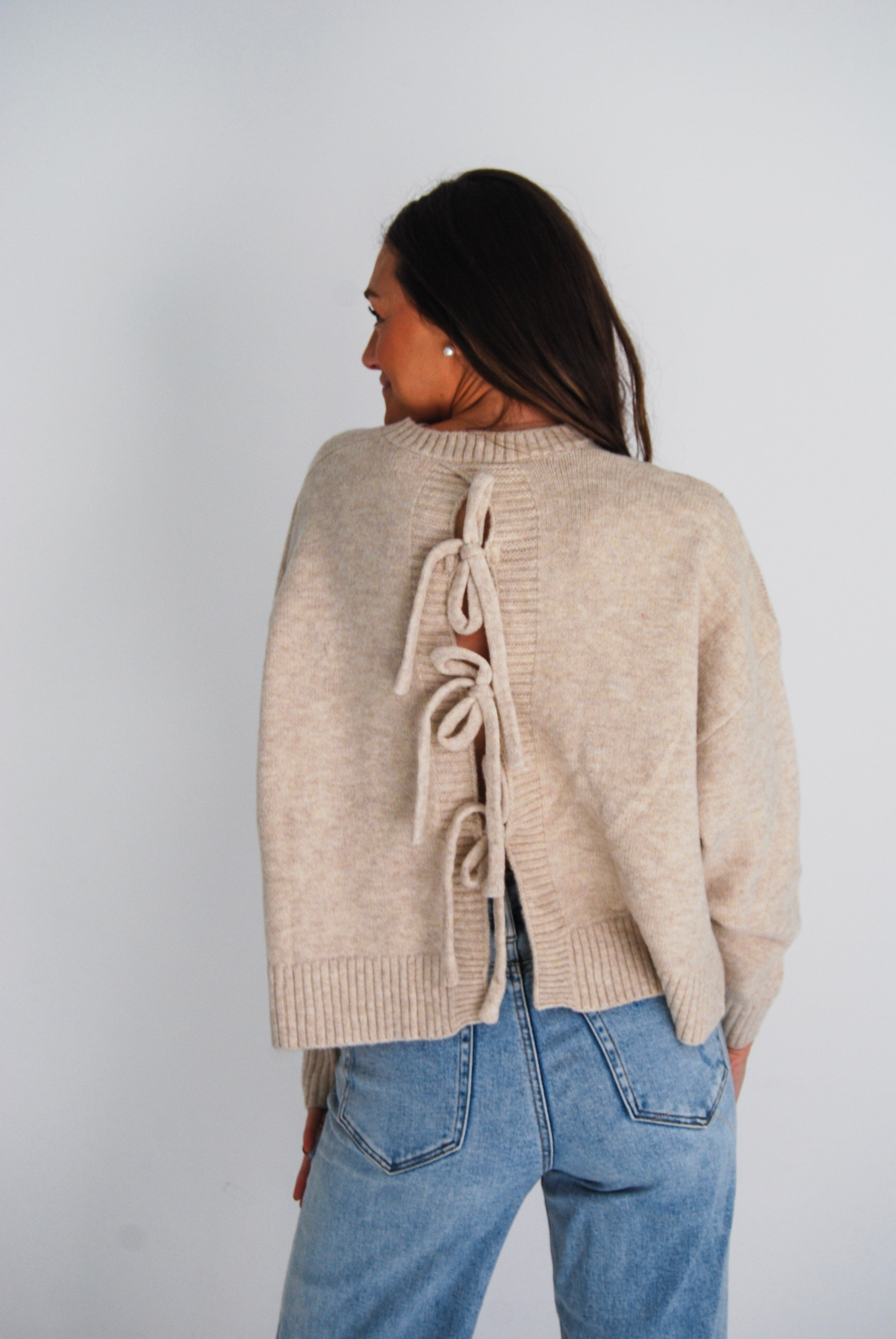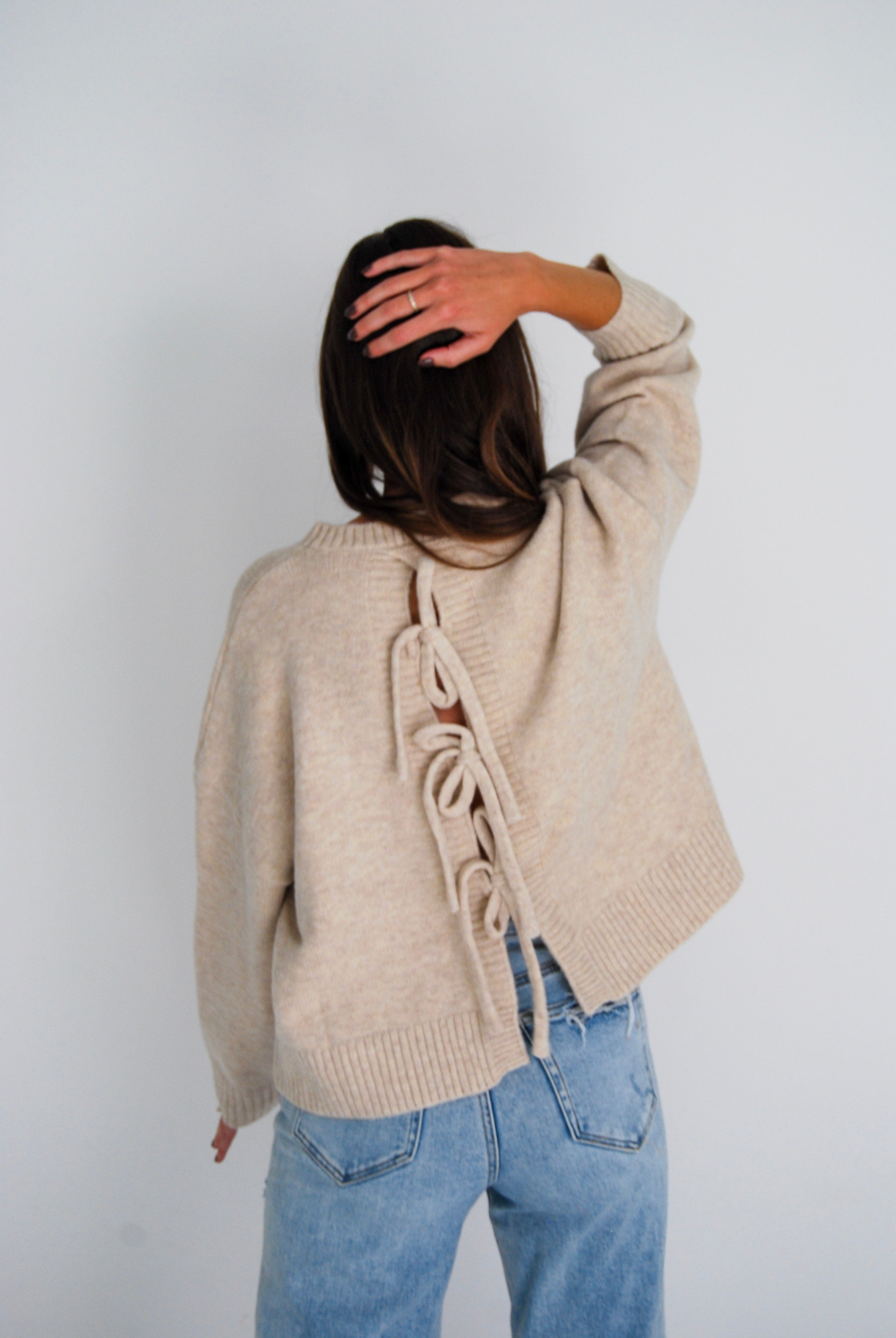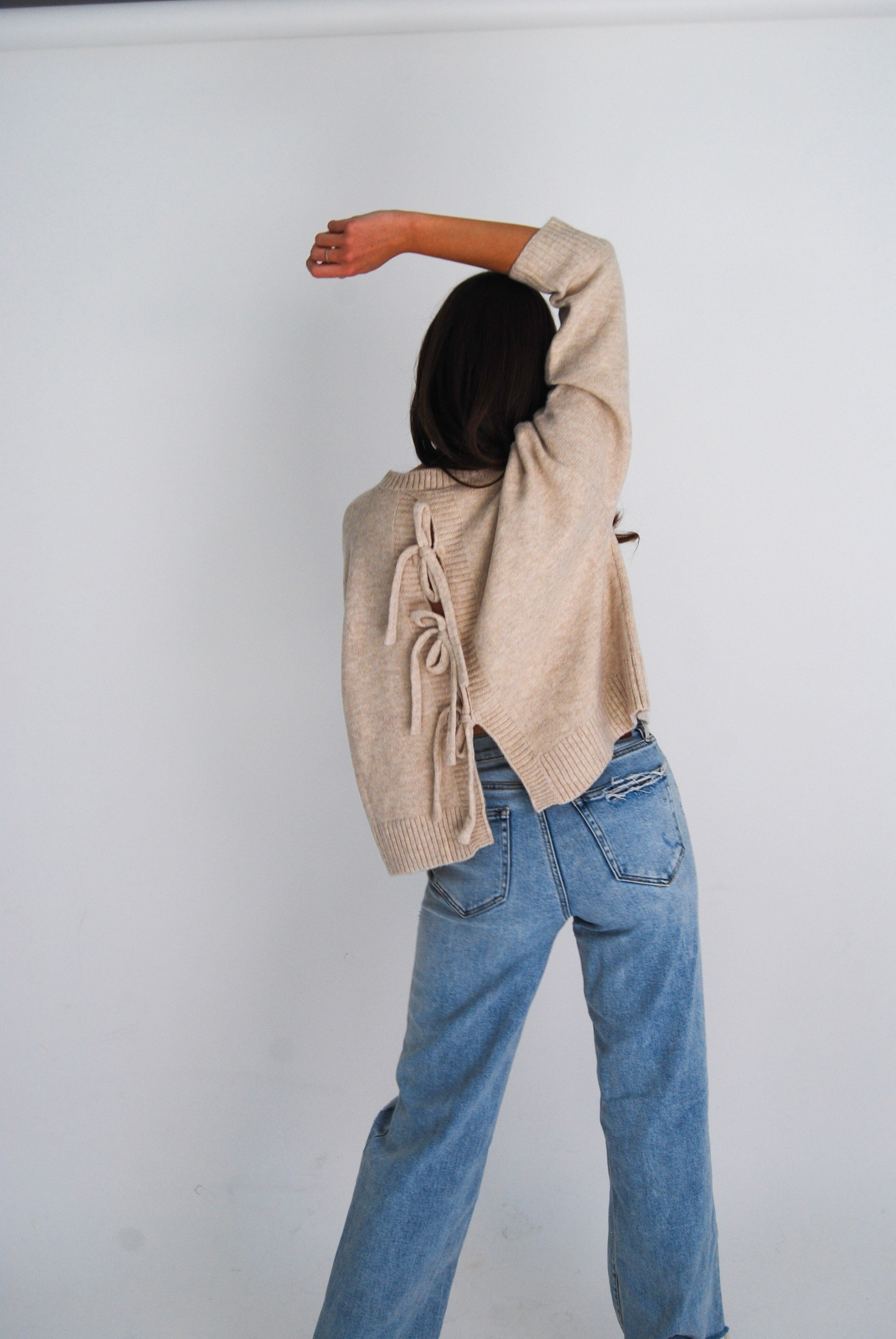 Flirt with style in the Crystal Clear Tie Back Sweater! This playful long-sleeve features an open back with adjustable ties, giving you a chic twist on a classic look. The timeless oatmeal hue adds warmth and versatility, making it your go-to elevated basic for any occasion.
