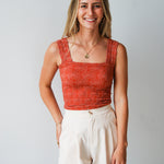 Be deeply rooted in comfort and style with our embroidered tank. The two tone floral jacquard design adds a touch of elegance, while the seamless construction and buttery soft material keep you feeling at ease. Bra friendly and stretchy for ultimate ease of wearing, this tank is the perfect addition to any wardrobe.