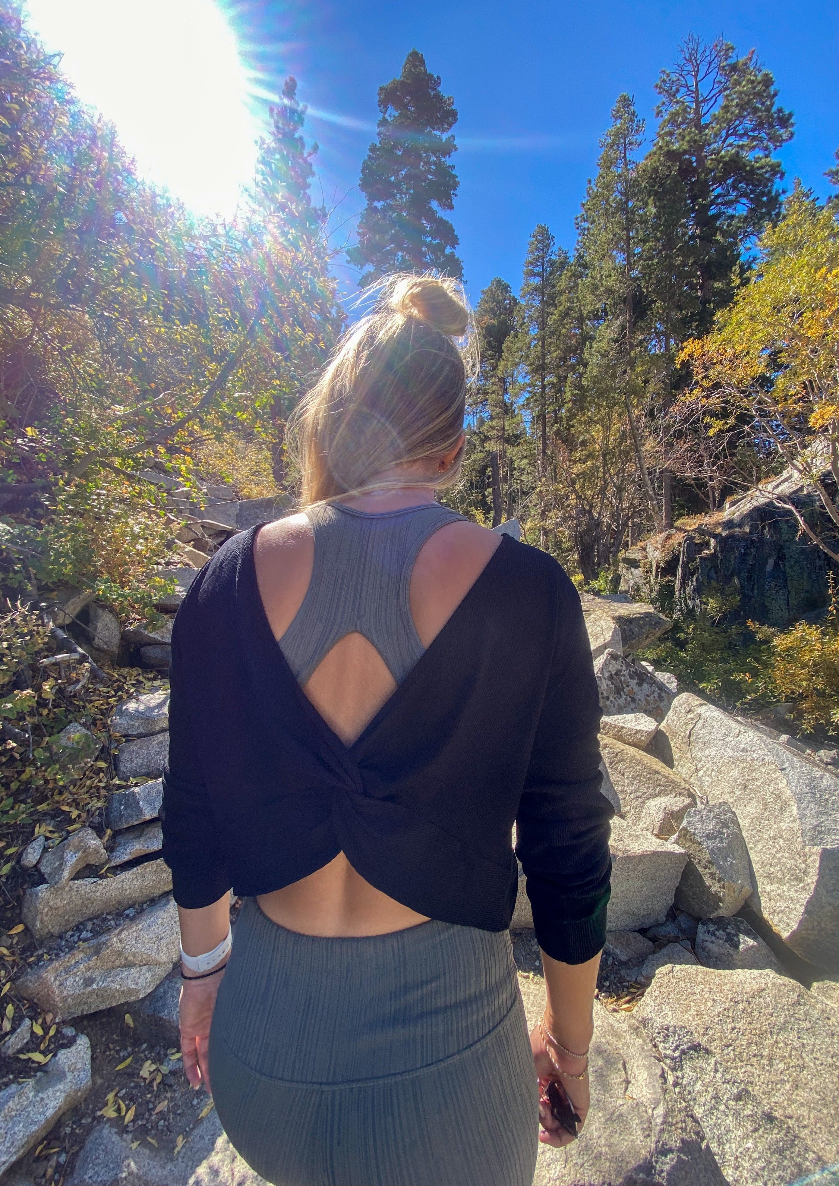 The Do It All Twist Top is the perfect top to take you from work outs to your daytime activities! This top is lightweight and features ribbed detailing as well as an open twist back top. We love that it can easily be paired with your favorite leggings or denim!