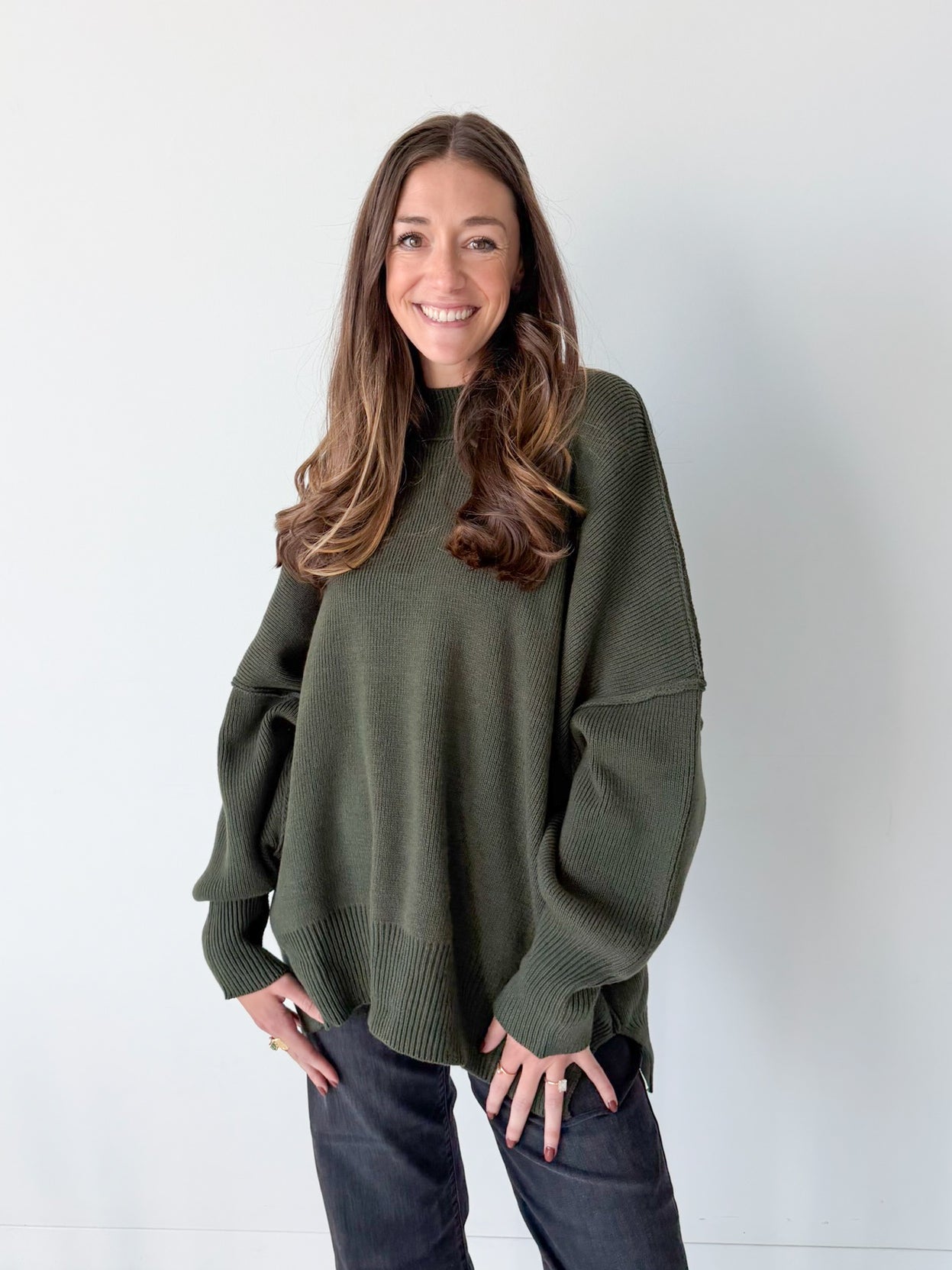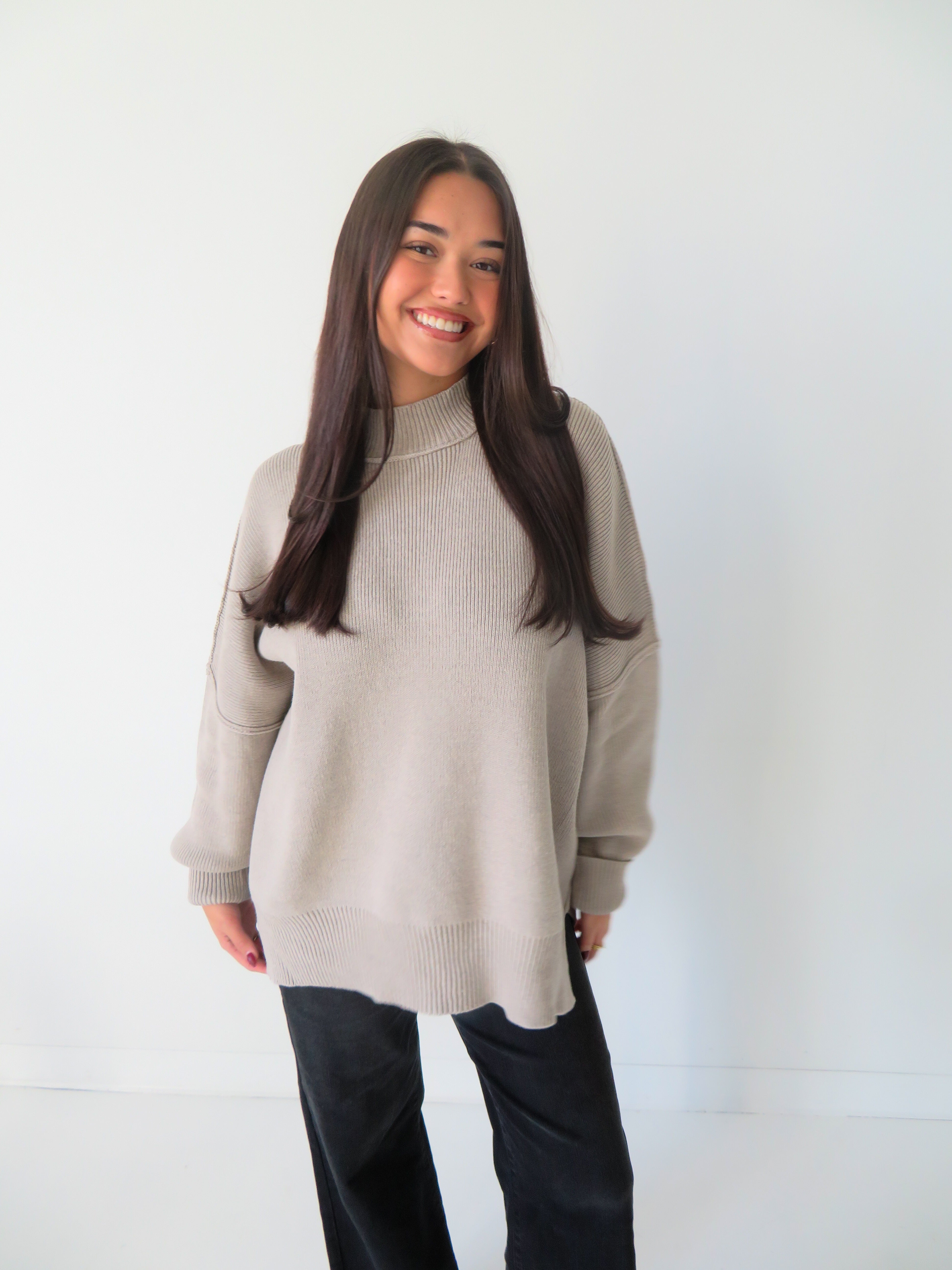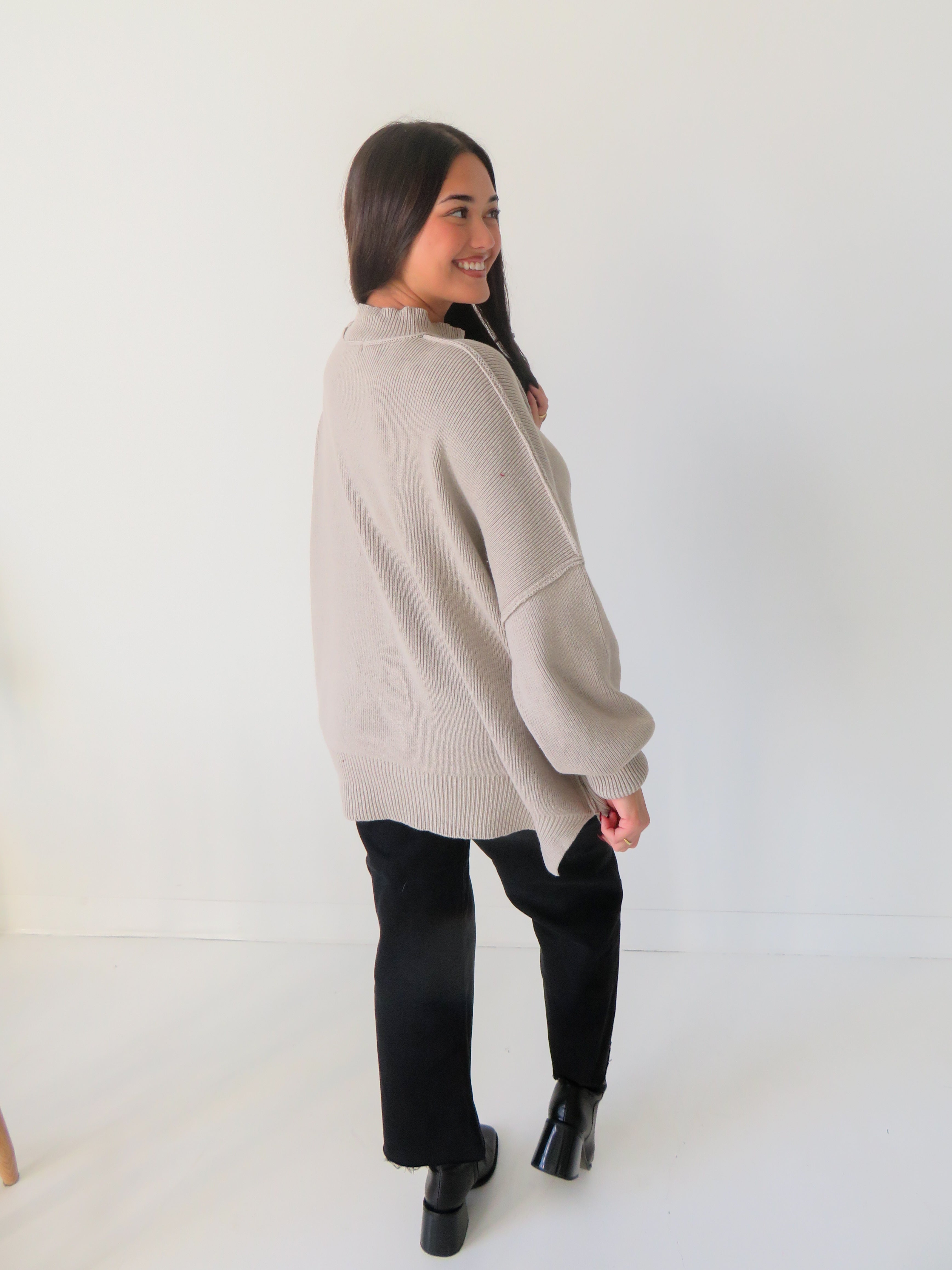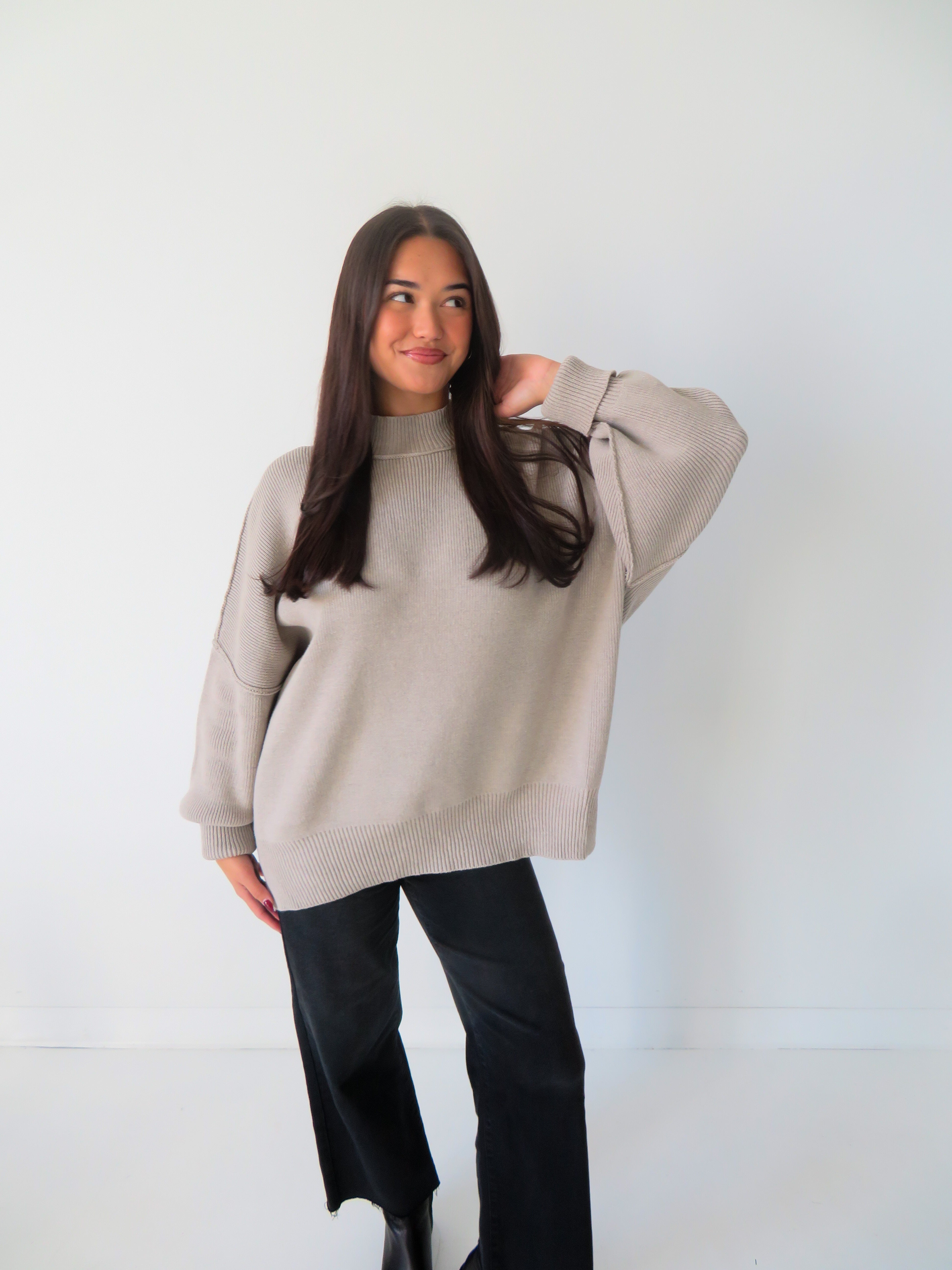 Slip into pure comfort with the Taken For Granted Sweater—an oversized mock neck that's destined to become your go-to layer. Featuring bold ribbing, exposed seaming for an edgy vibe, and a cheeky slit detail, this piece strikes the perfect balance between cozy and cool. So effortless, you'll forget you're wearing it (until someone asks where you got it).