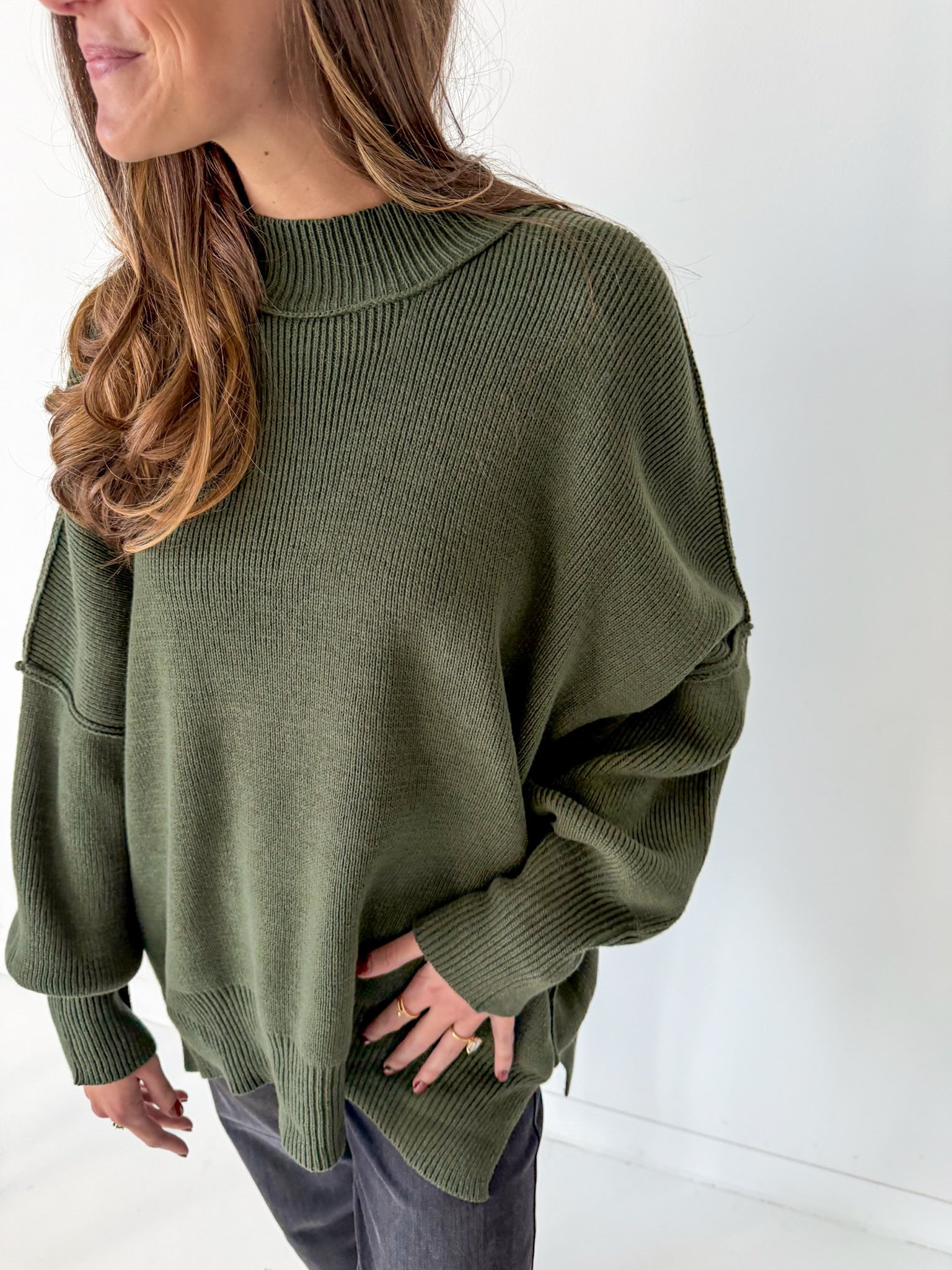 - Oversized mock neck sweater