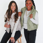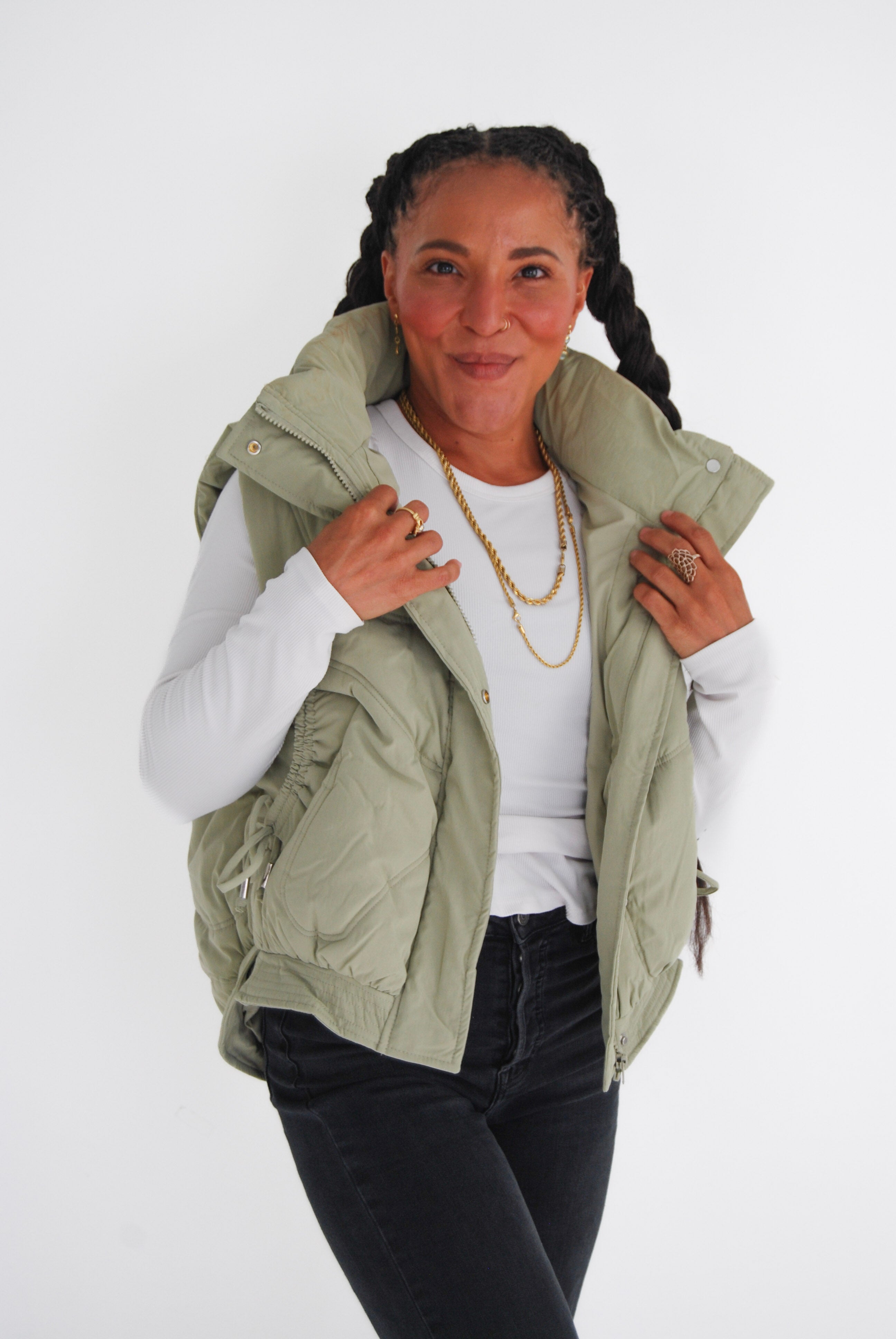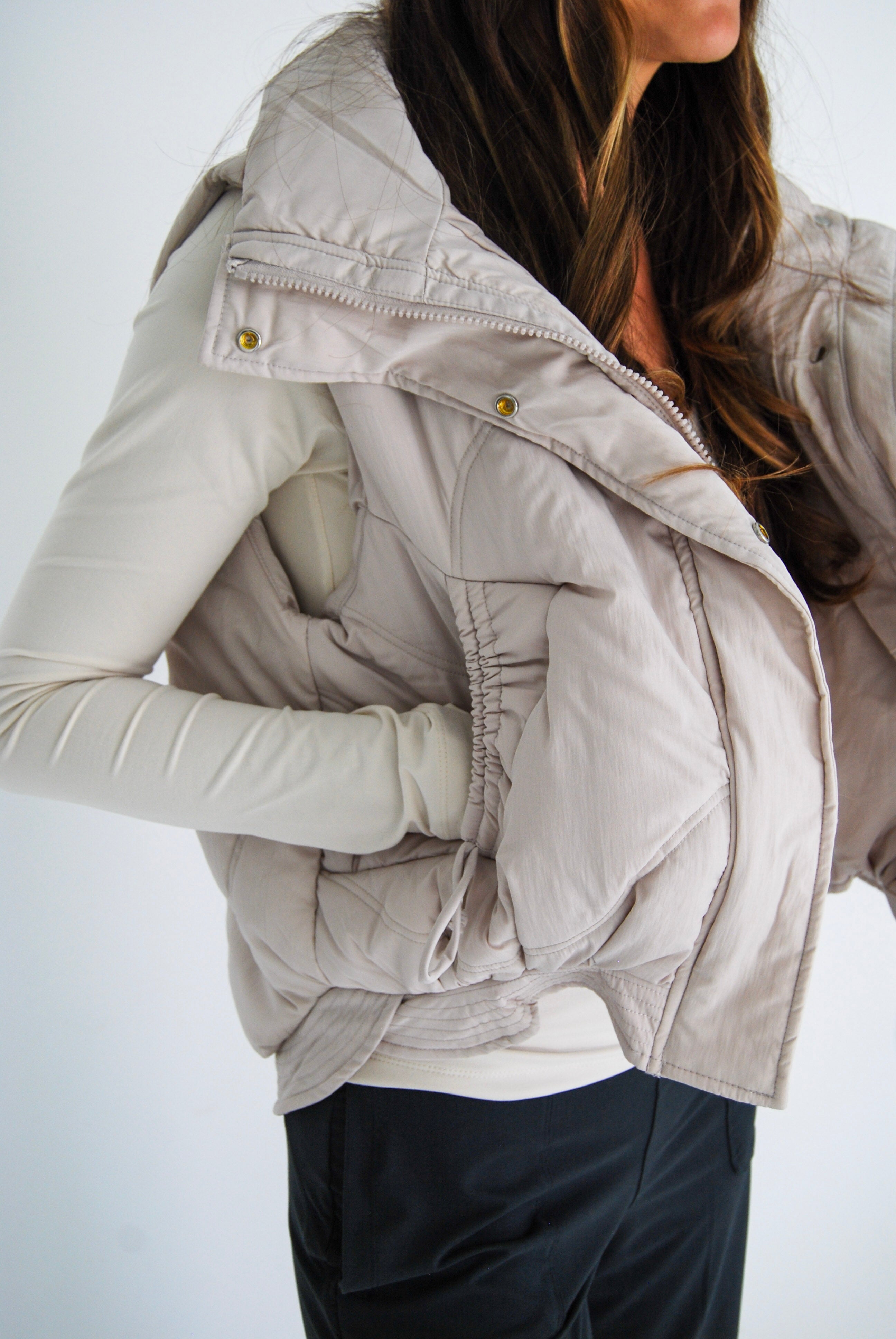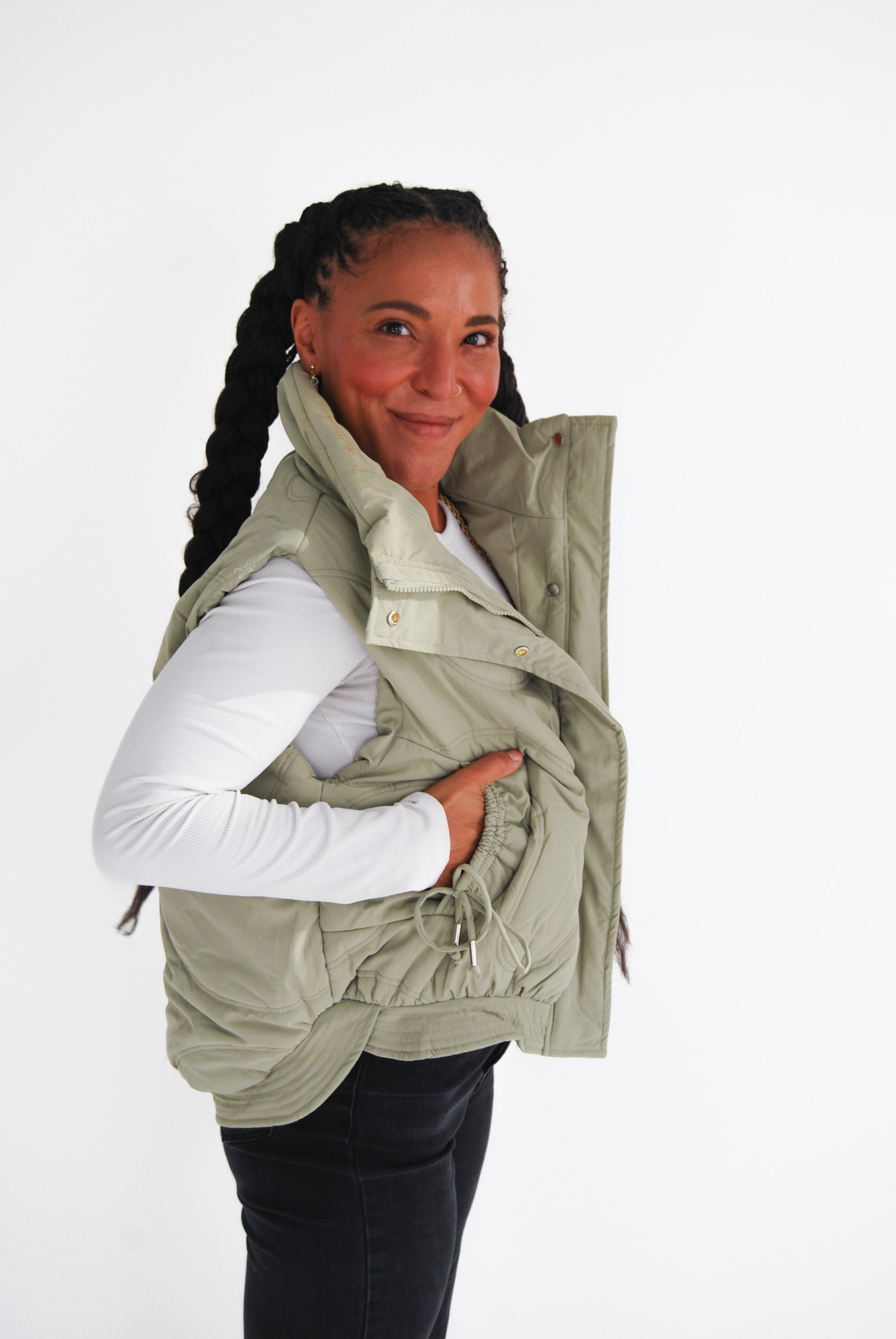 The Drifter Vest brings cozy charm with its high collar and quilted design, perfect for layering with ease. Featuring cinched pocket details, it adds a playful touch while keeping your essentials close. Whether you’re dressing up or down, this vest makes staying stylish feel effortlessly fun and comfortable.