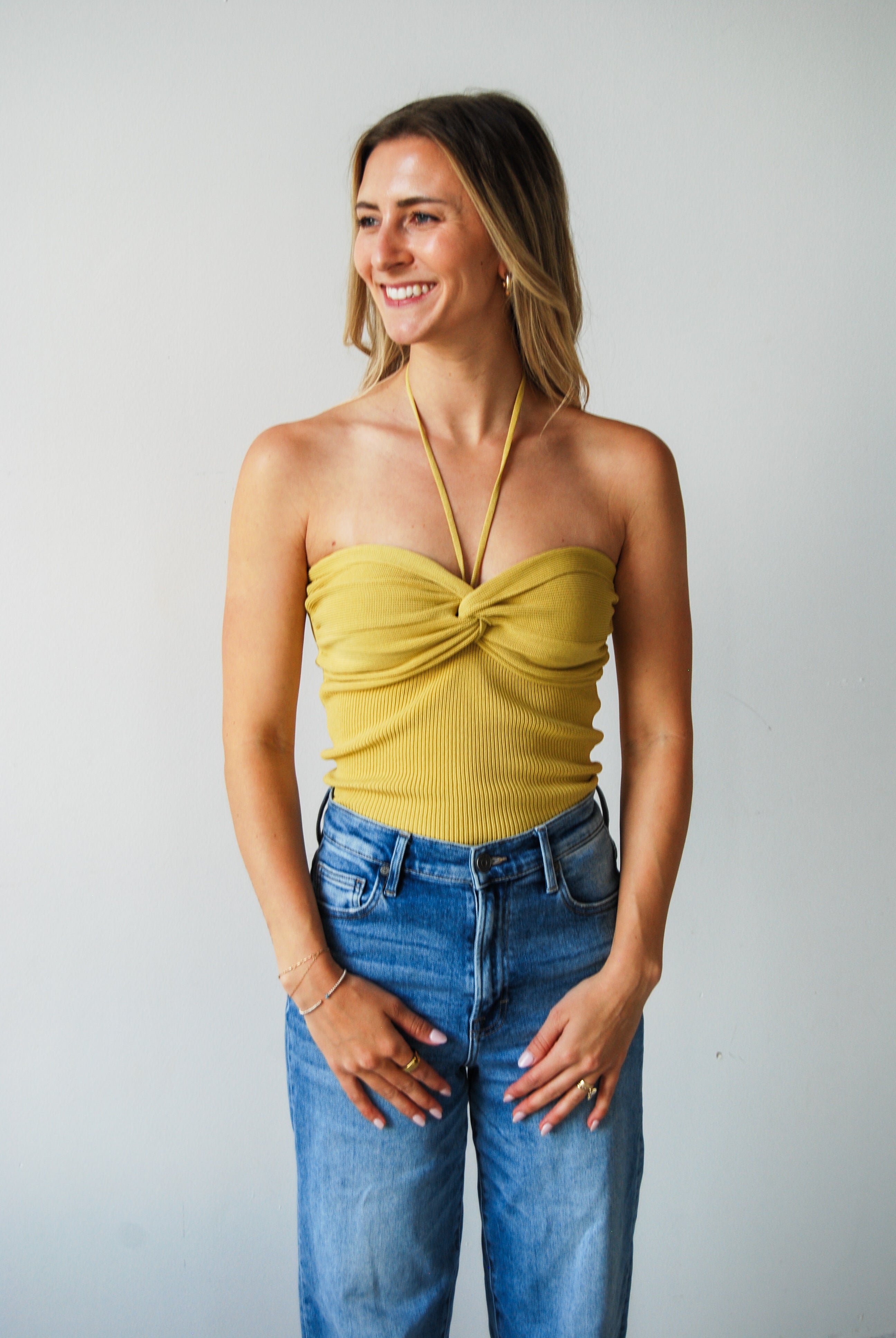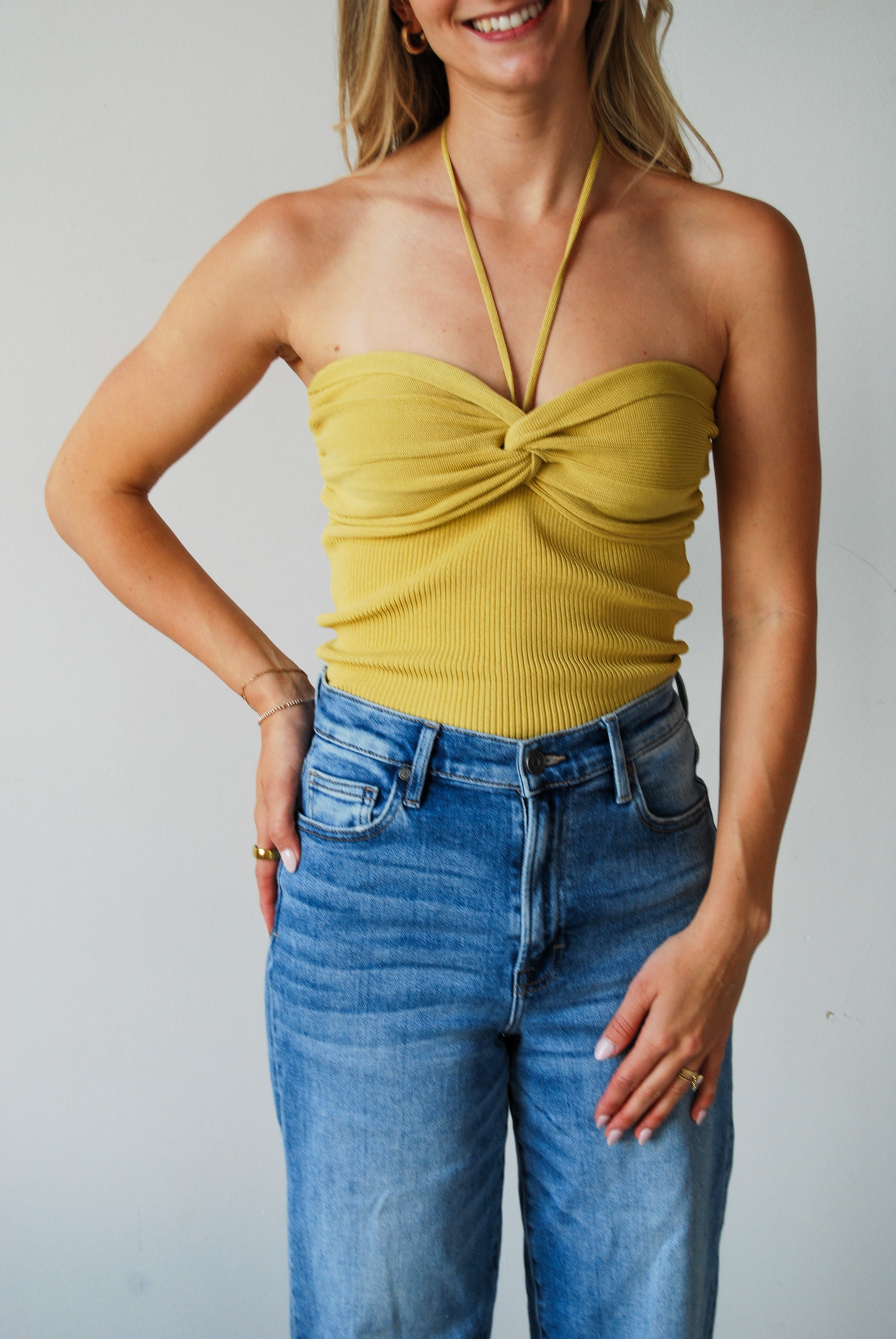 Elevate your everyday style with our Elevated Yet Everyday Tank! This halter tie knit tank features a stylish twist front, perfect for adding a touch of sophistication to any outfit. Say goodbye to plain tanks and hello to effortless style.