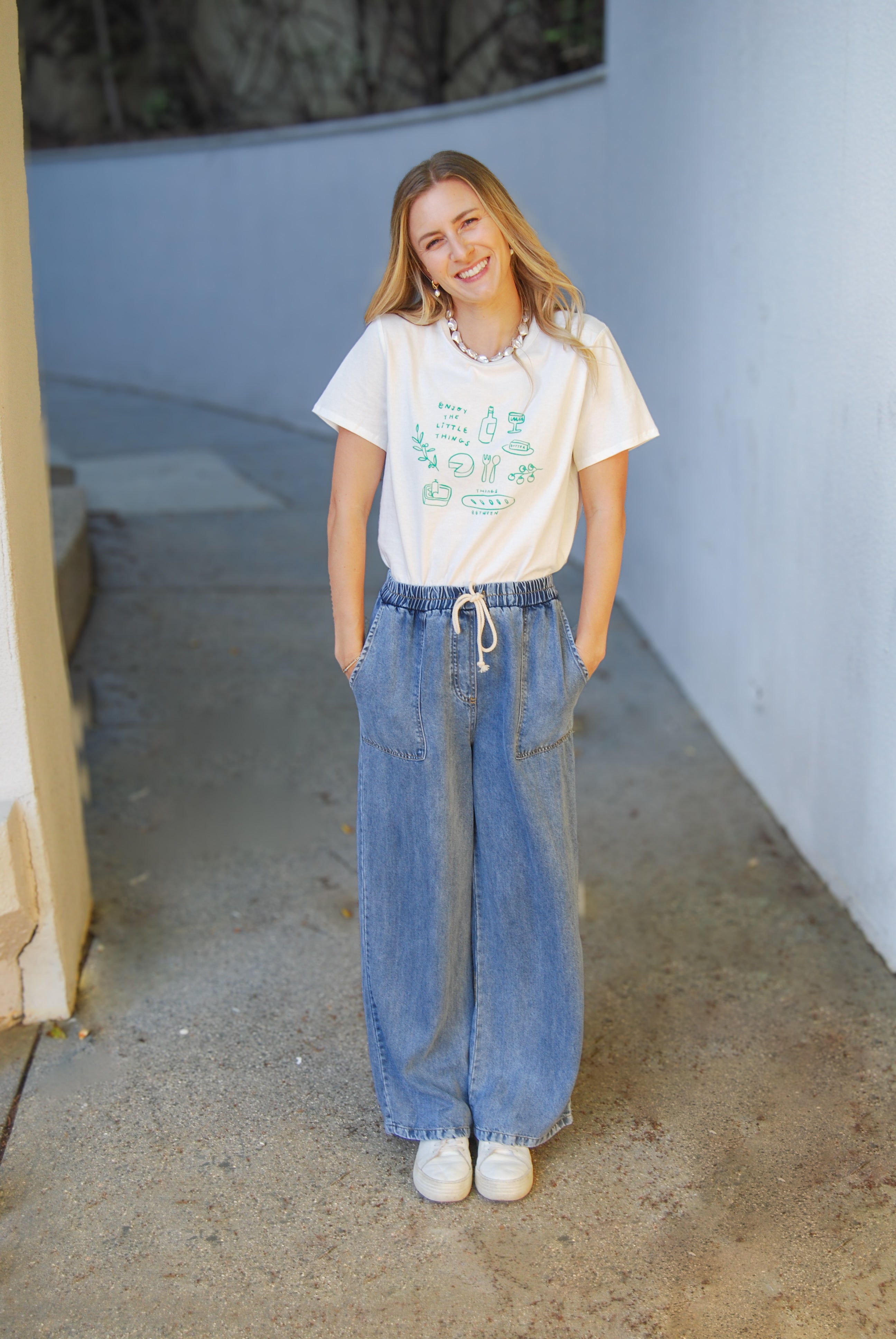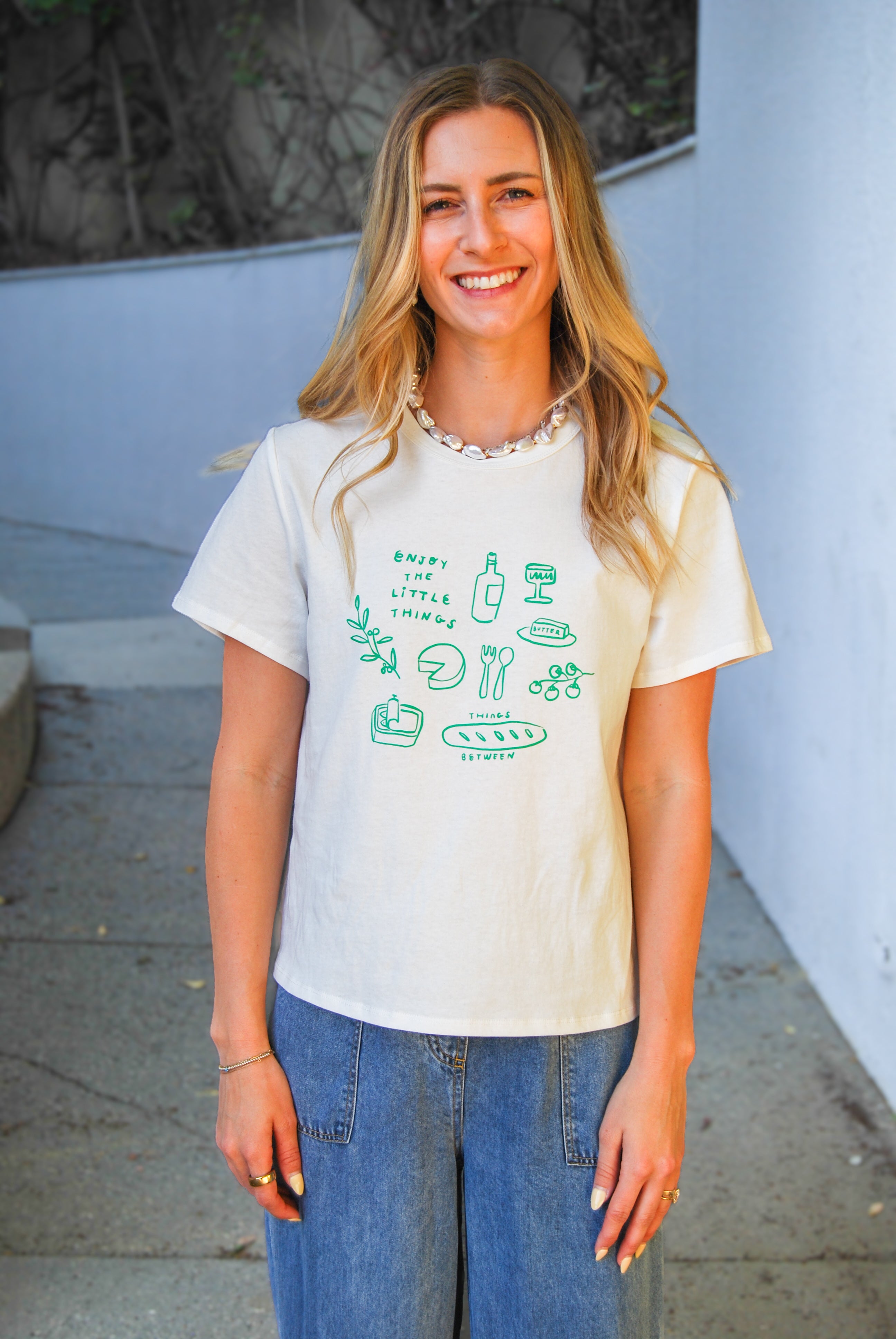 Let this tee be a reminder to appreciate life's small joys. Made of soft cotton, this graphic tee features all the little things that bring happiness. Wear it and spread positivity wherever you go. Because, let's face it, life is too short to not enjoy the little things!