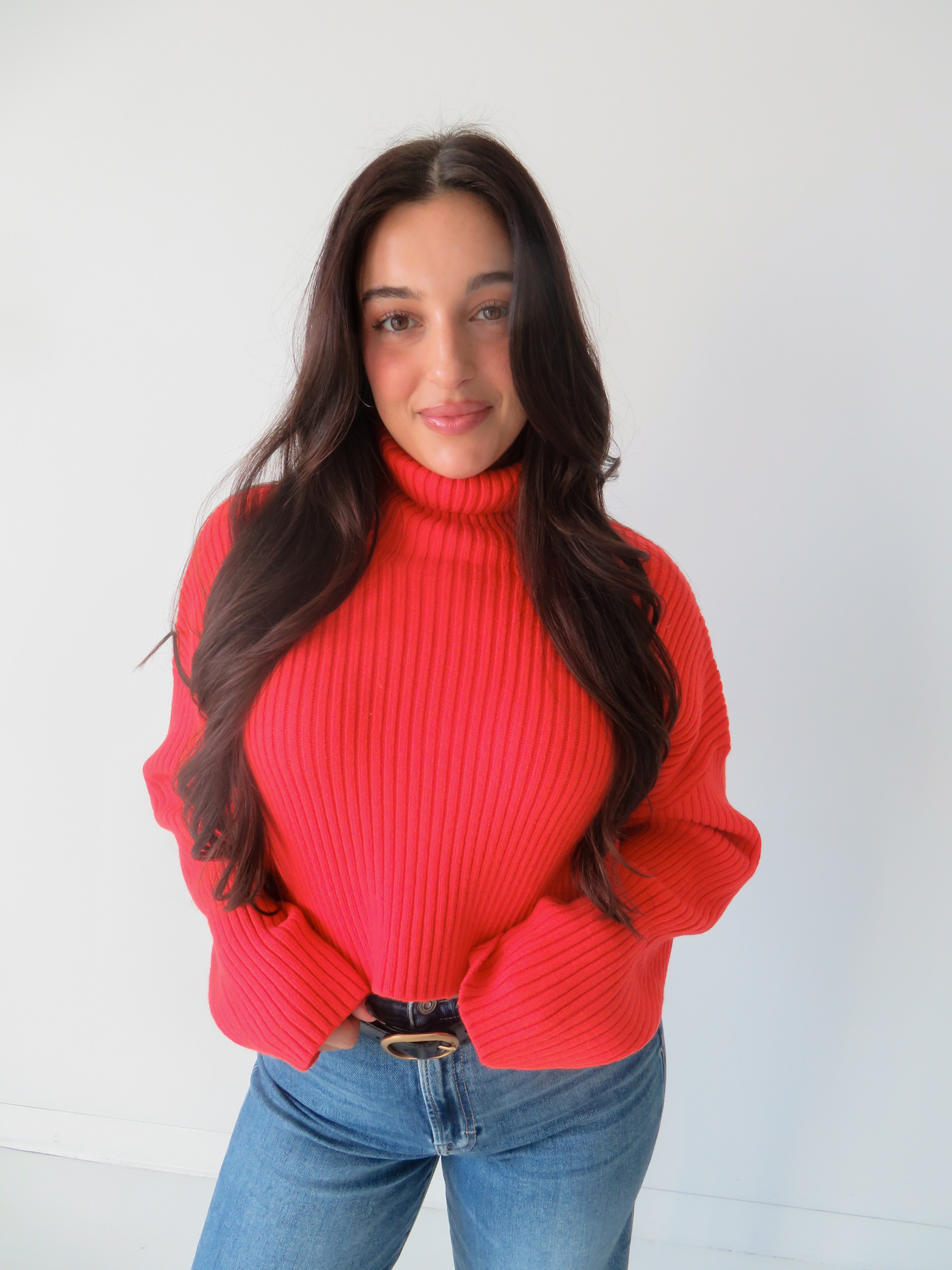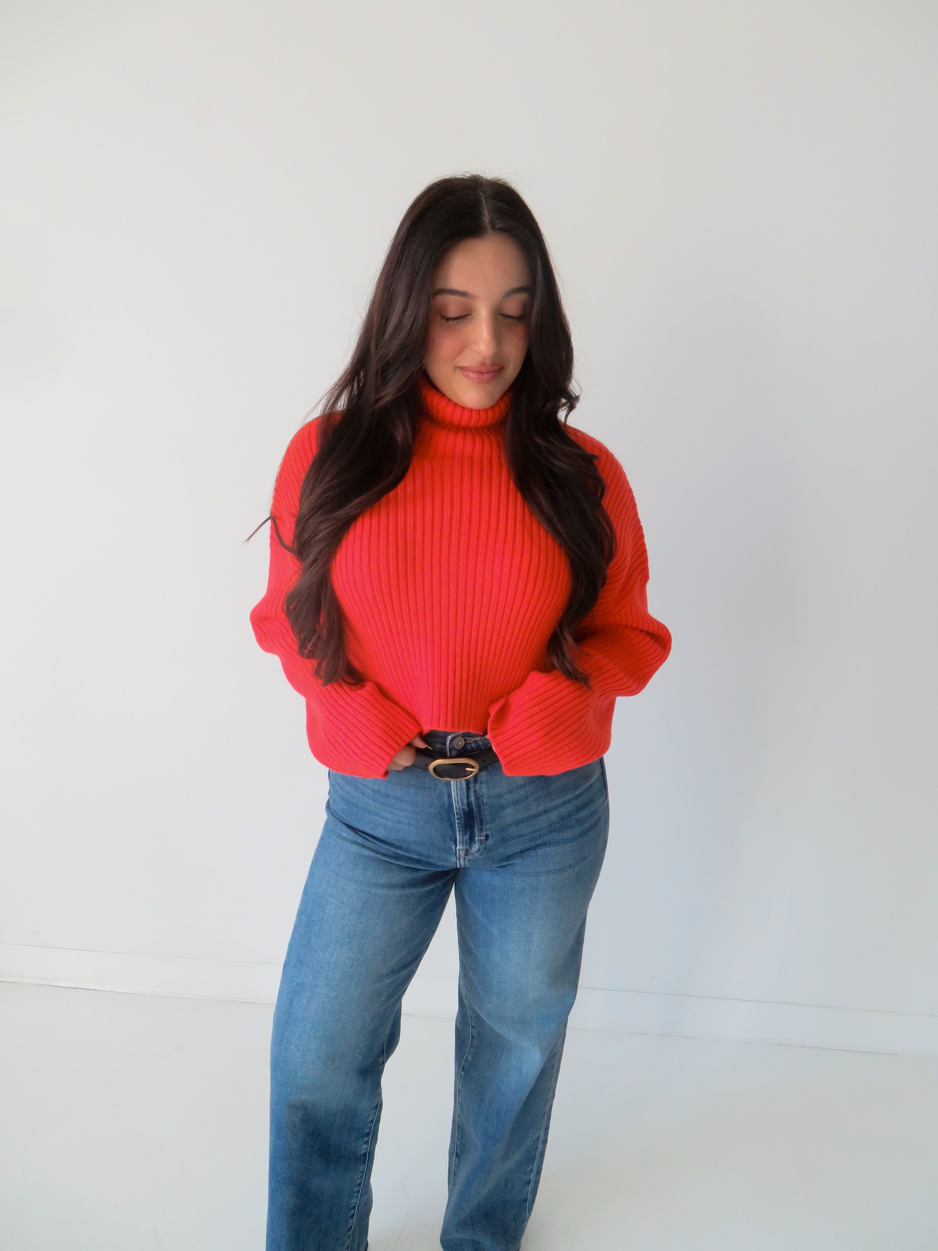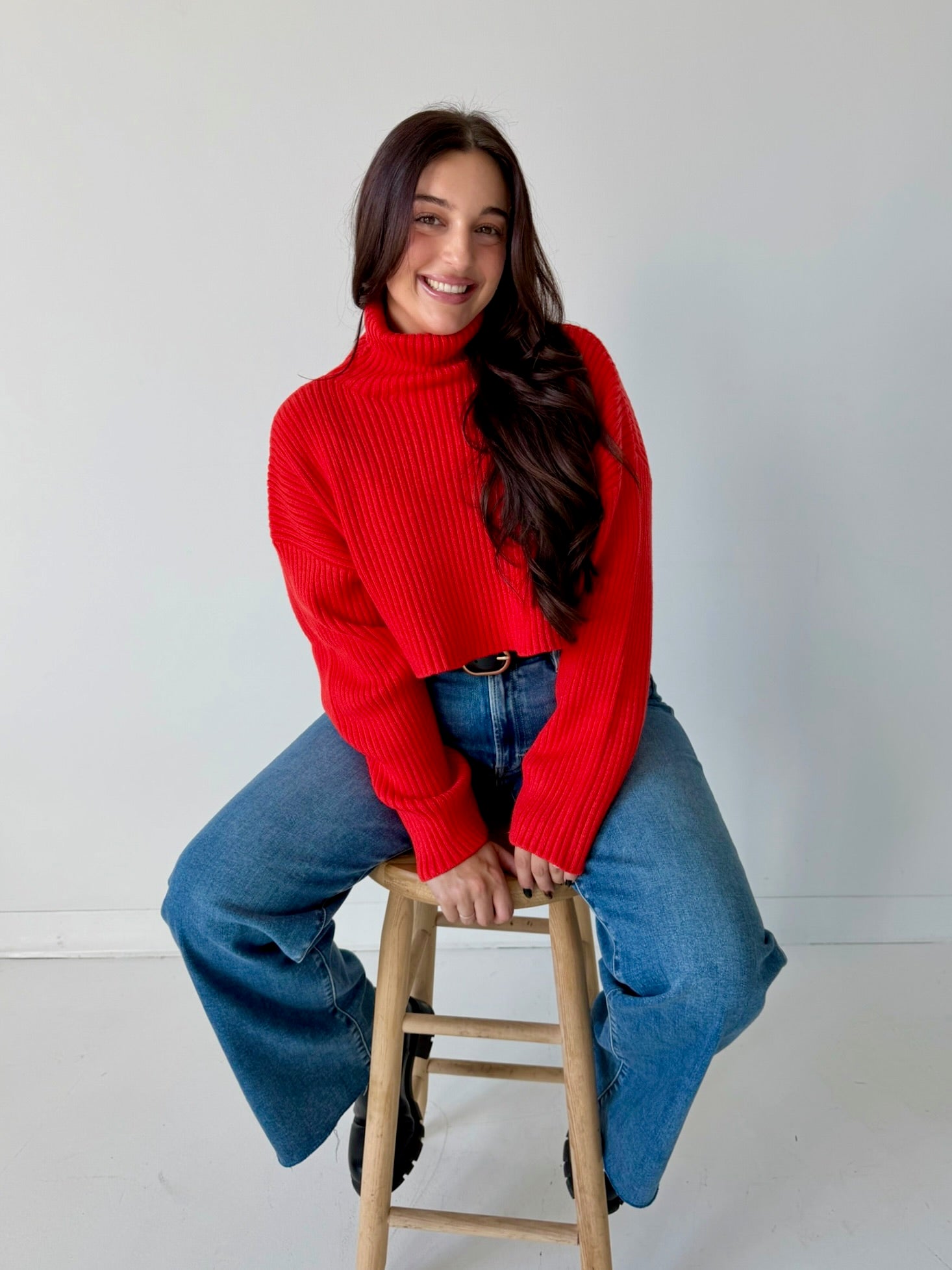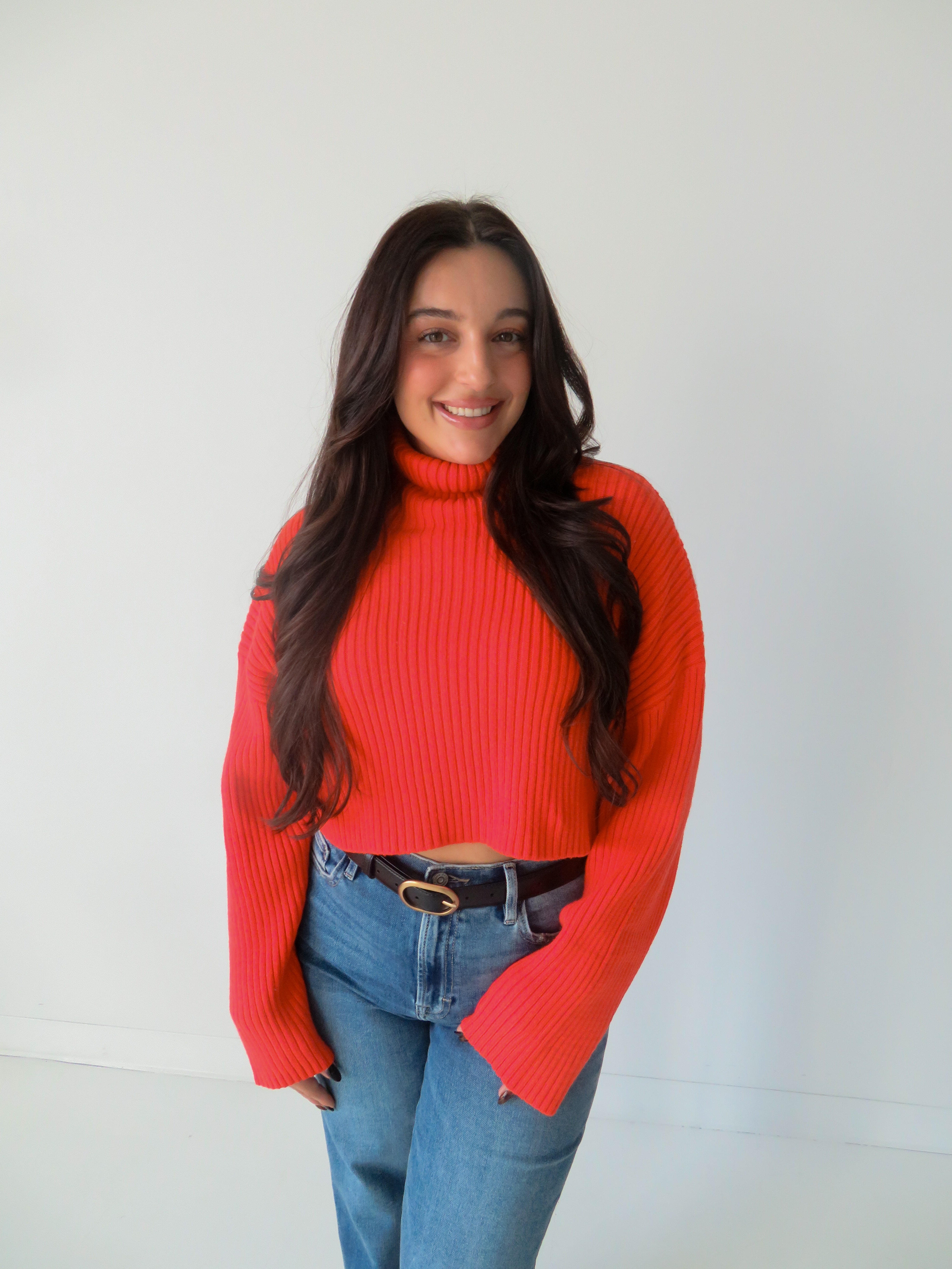 Make a bold fashion statement with the Festive Firecracker Sweater, a cropped turtleneck that brings serious style to your wardrobe. This vibrant piece features a striking color that demands attention, perfect for layering over basics or pairing with high-waisted bottoms. Whether you're heading out for a night on the town or elevating your everyday look, this sweater is your go-to for turning heads and feeling confident.
