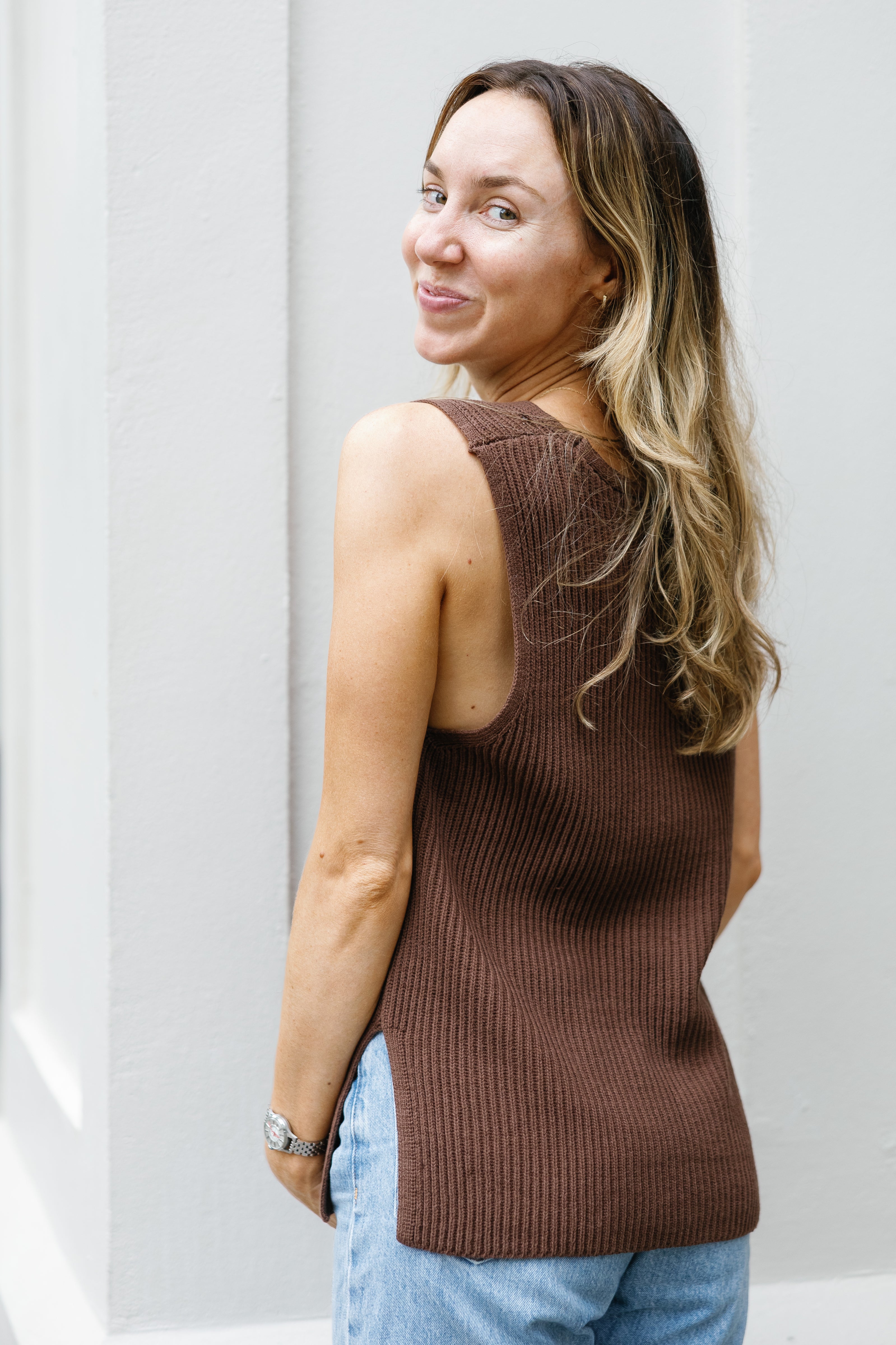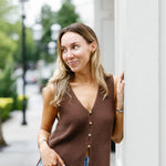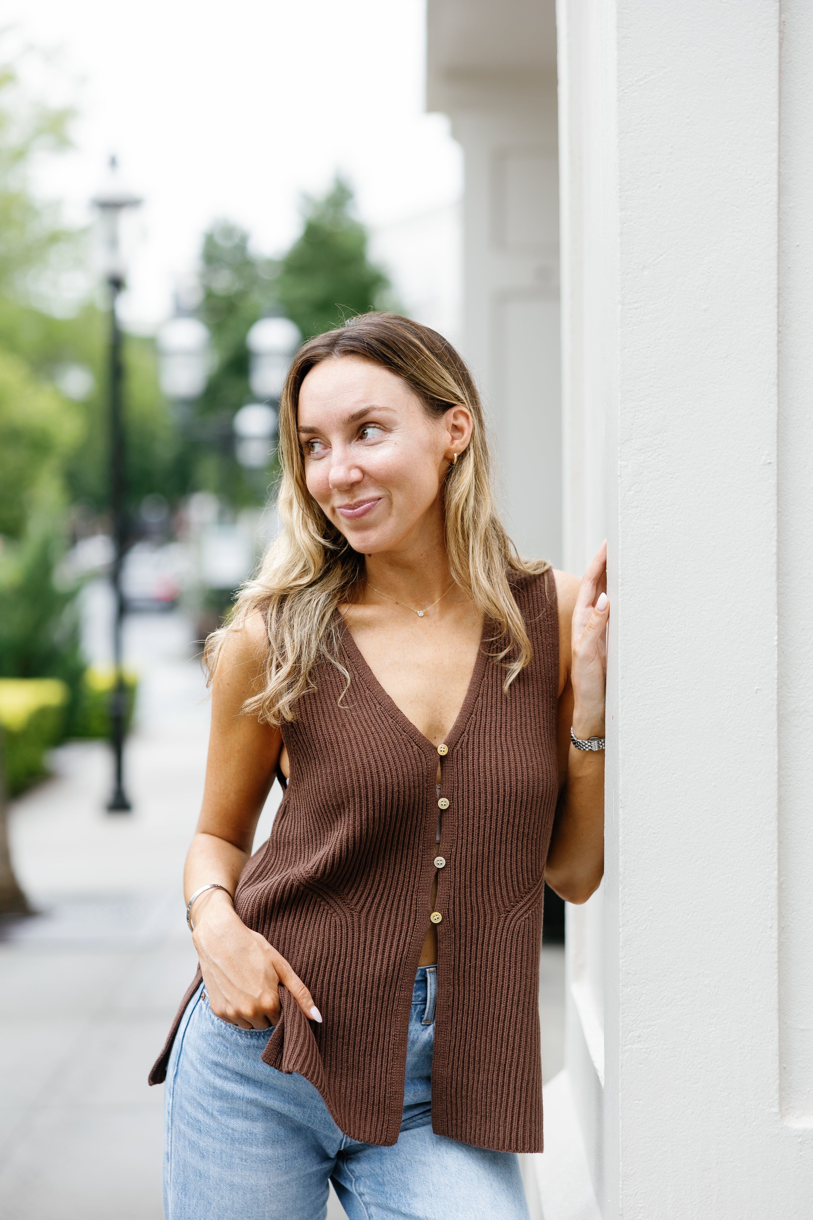 The Girls Who Lunch Knit Vest is a playful take on a classic sweater tank. With its ribbed knit, V-neck, and button-up front, it’s perfect for layering or wearing on its own. Side and front slits add movement and a relaxed fit, while the longer length keeps it cool and comfy for all-day fun.