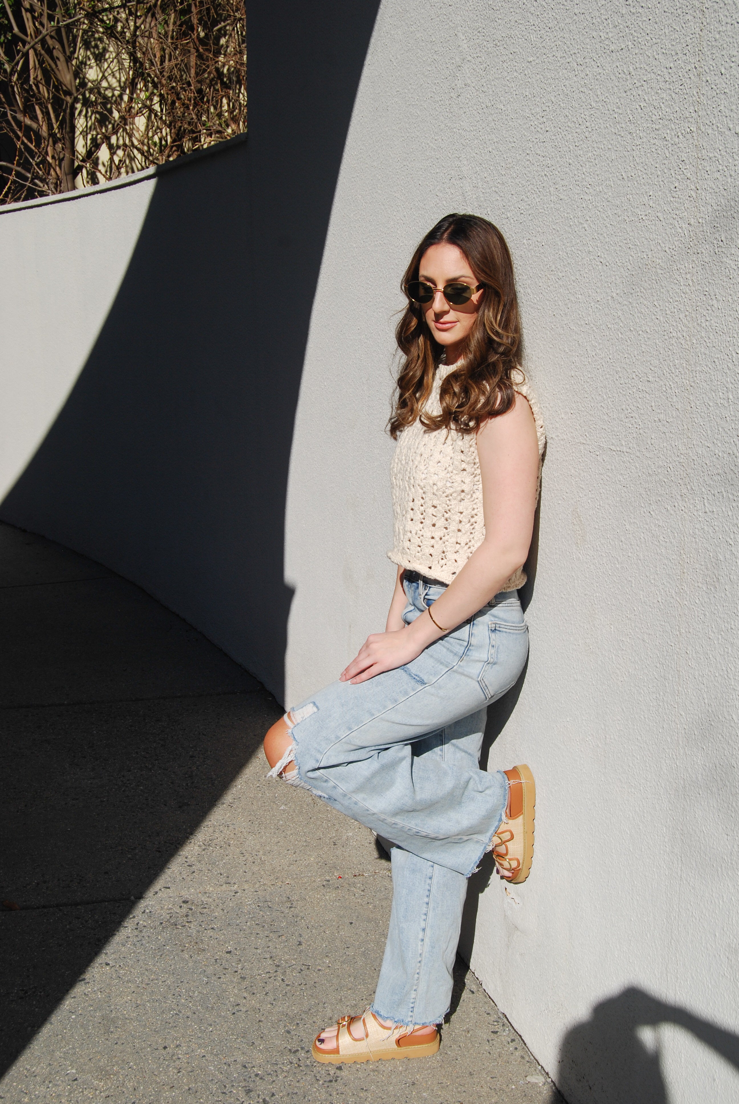 Get cozy in the Goldie Knit Sweater! This oatmeal-colored, crochet cropped sweater is a versatile staple that can be layered or worn solo. Easy to style and effortlessly chic, it's the perfect addition to any wardrobe. Stay stylish and comfortable with Goldie.