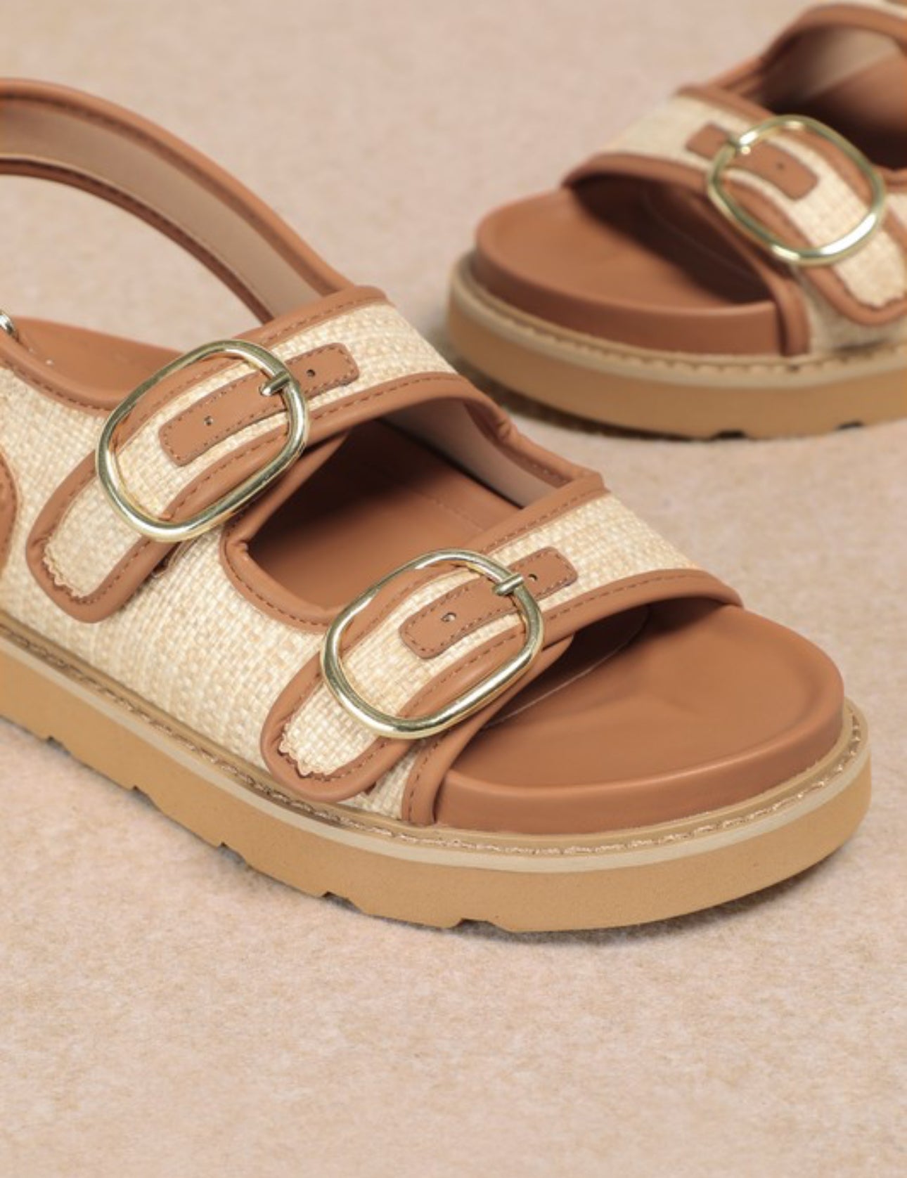 Hallie is the epitome of comfort meets style. Utilitarian-style straps and a contoured footbed collide with chic metal buckles and statement-making colorways and textures. This sandal is sure to make a statement all Summer long!