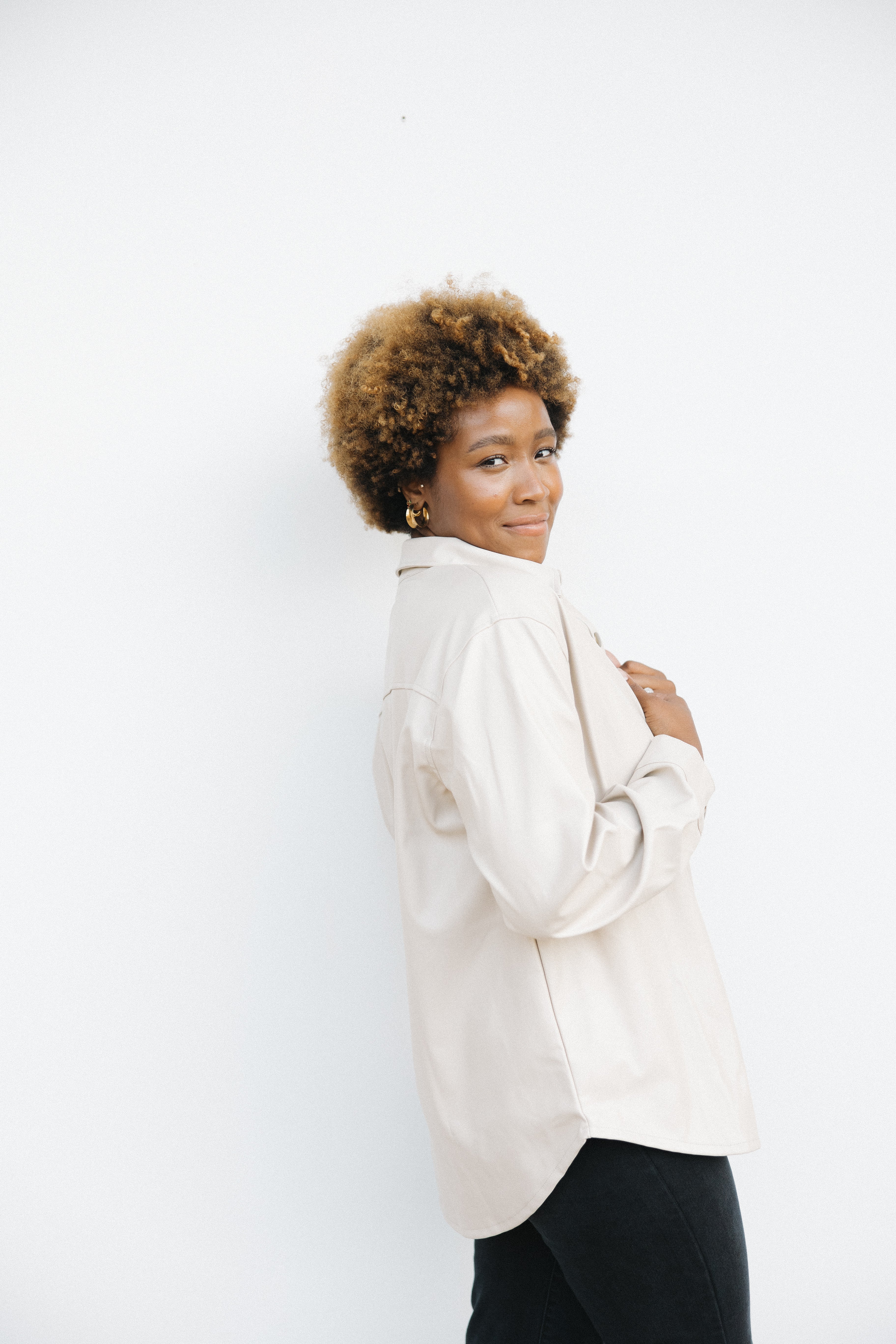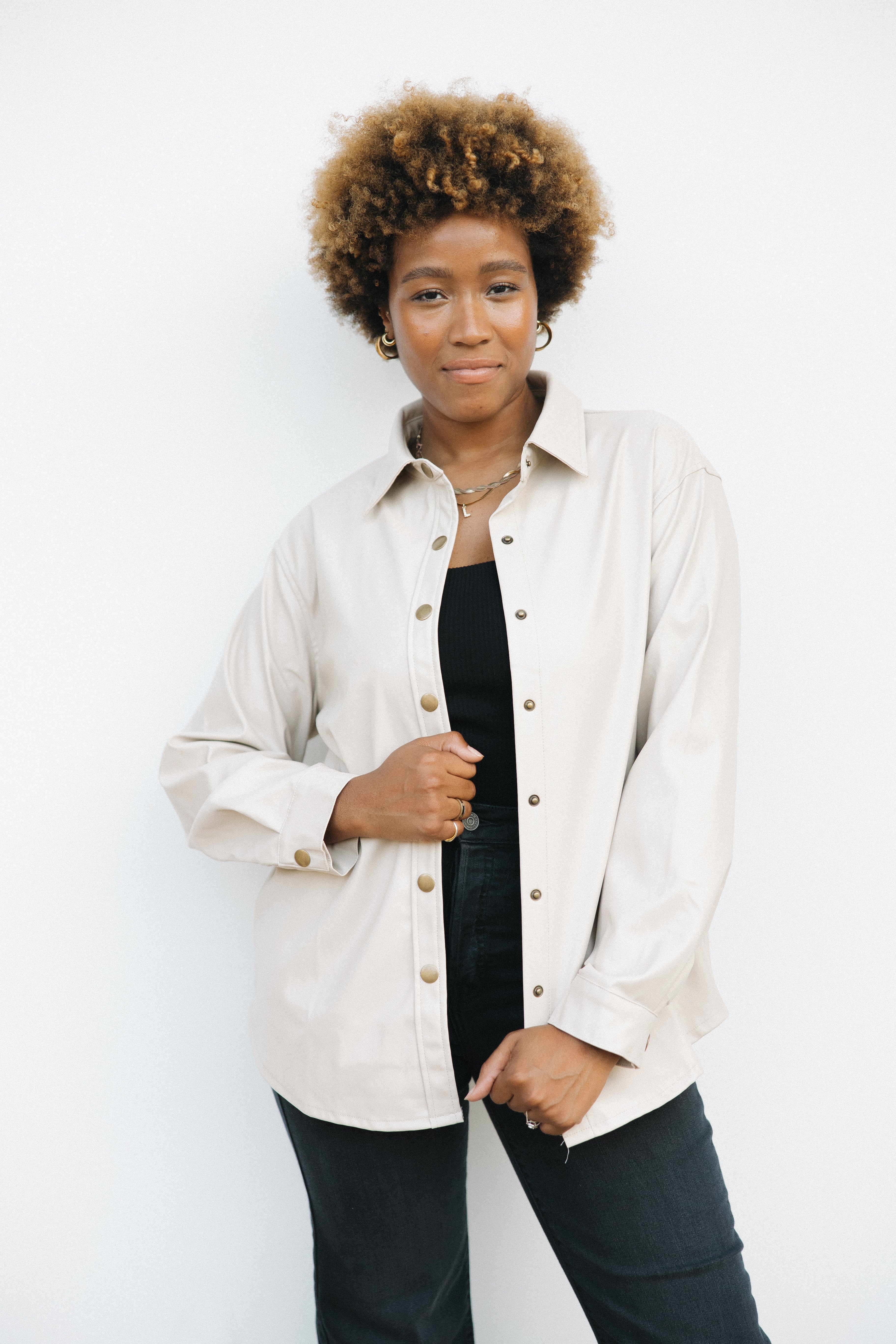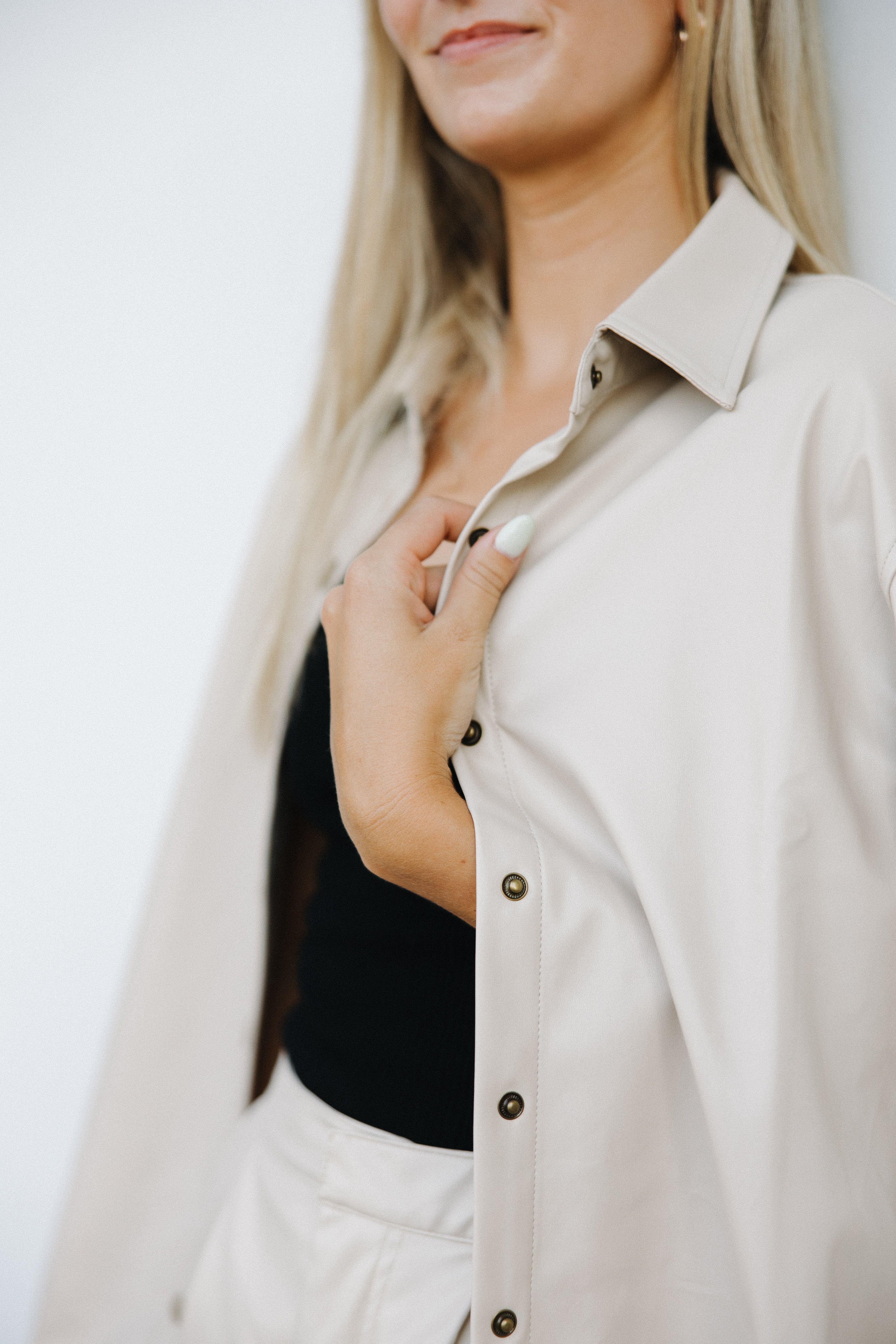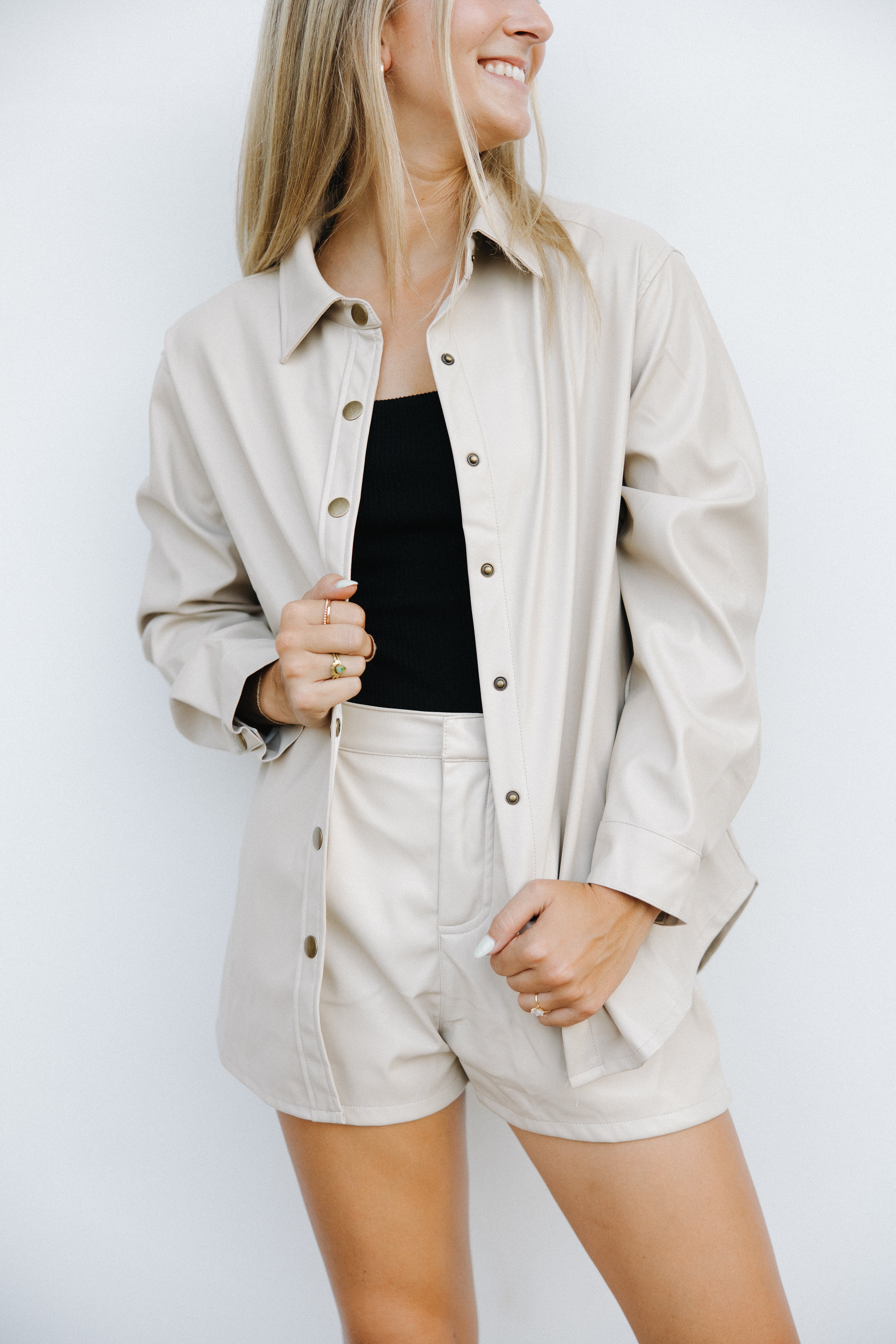 - Leather button up shacket