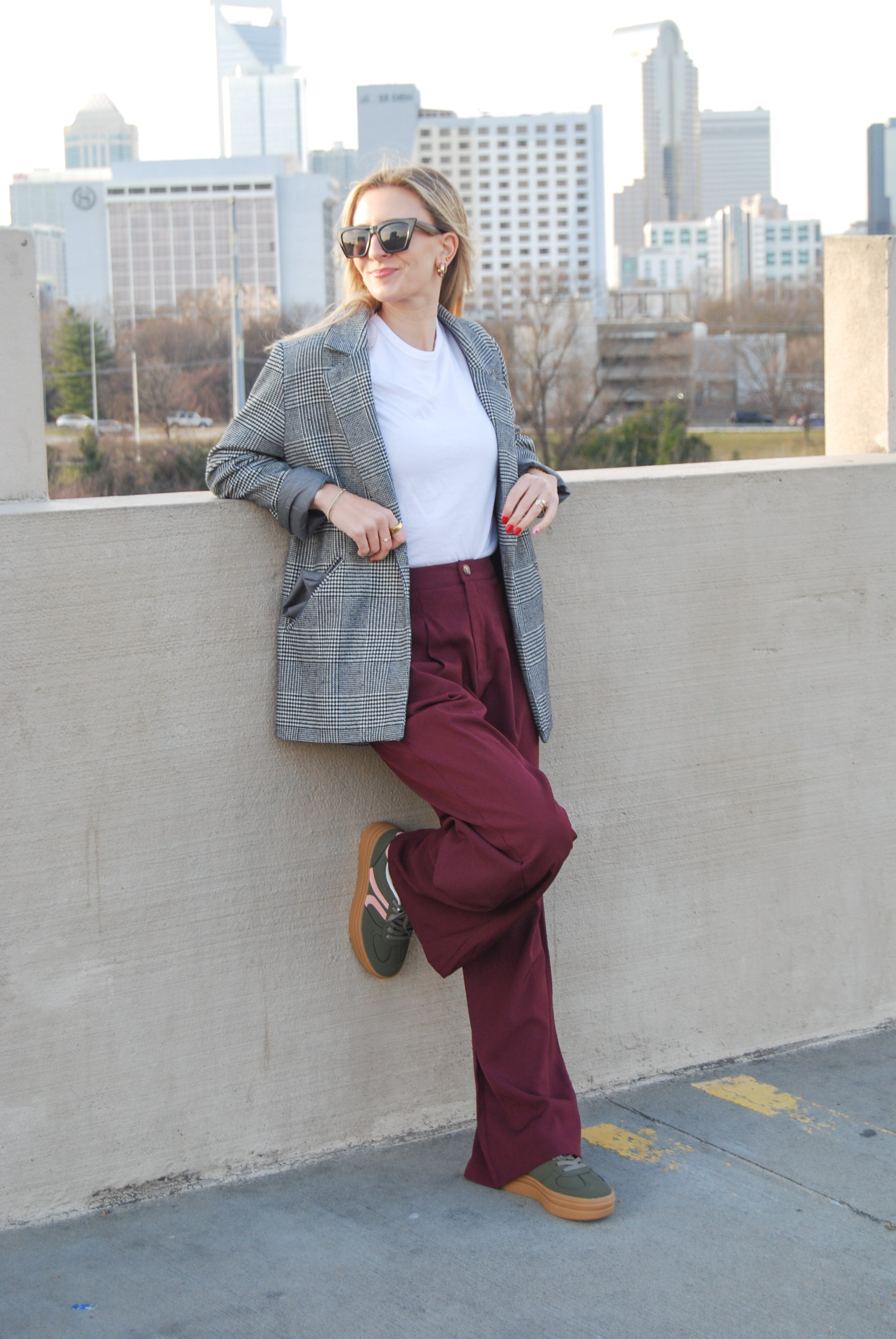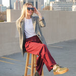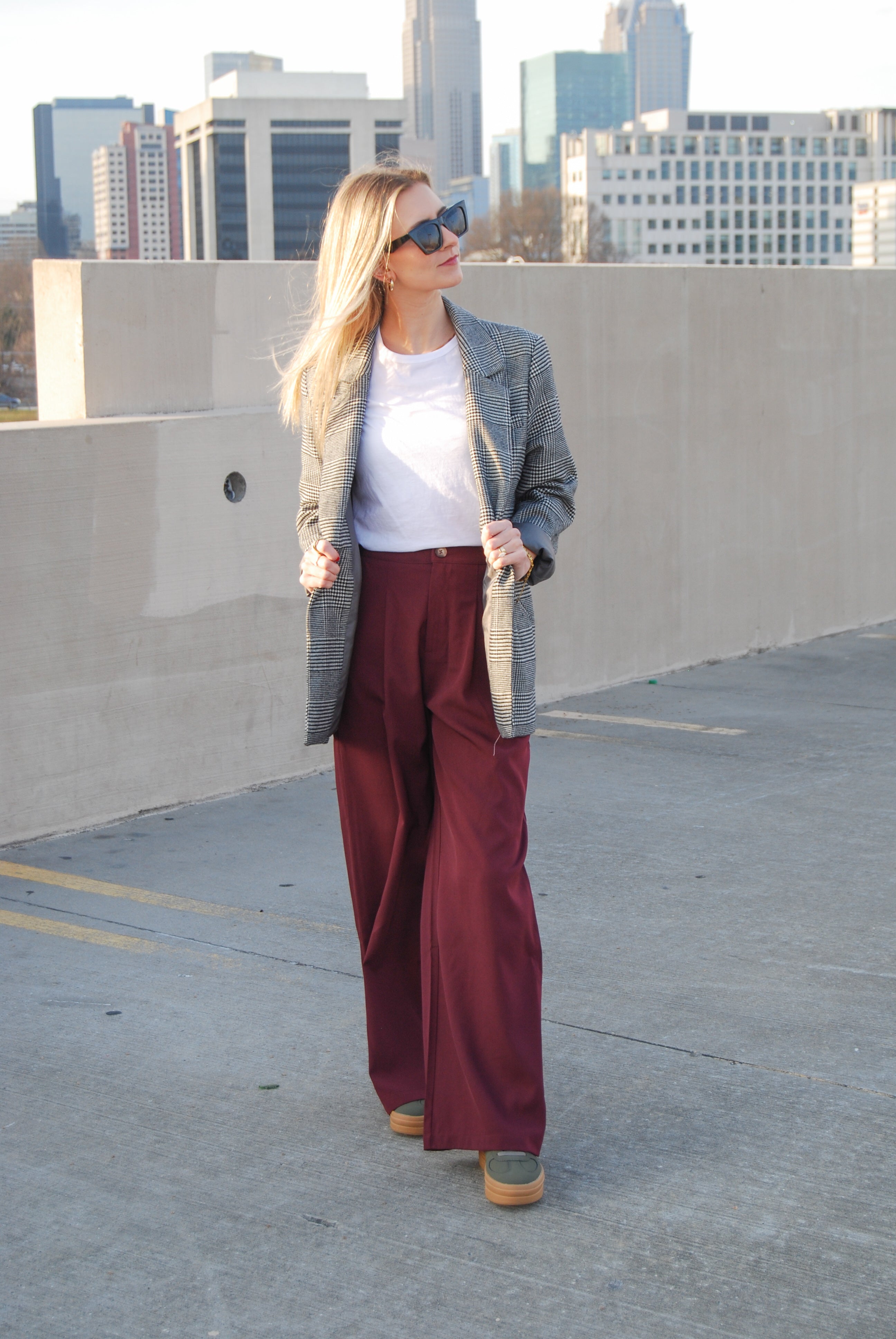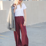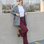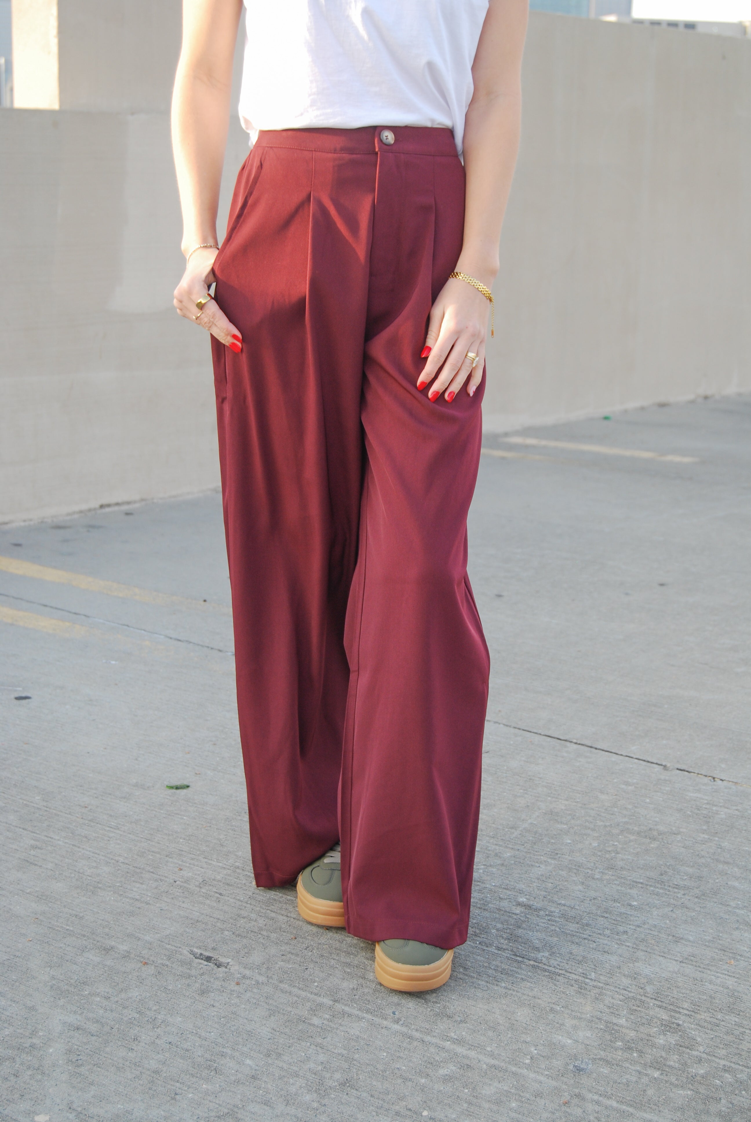 The ultimate blend of fashion and function, these maroon trouser pants elevate any wardrobe with their timeless style. Perfect for any occasion, whether it's a day at the office or a weekend outing. Be bold and chic with these high rise pants.