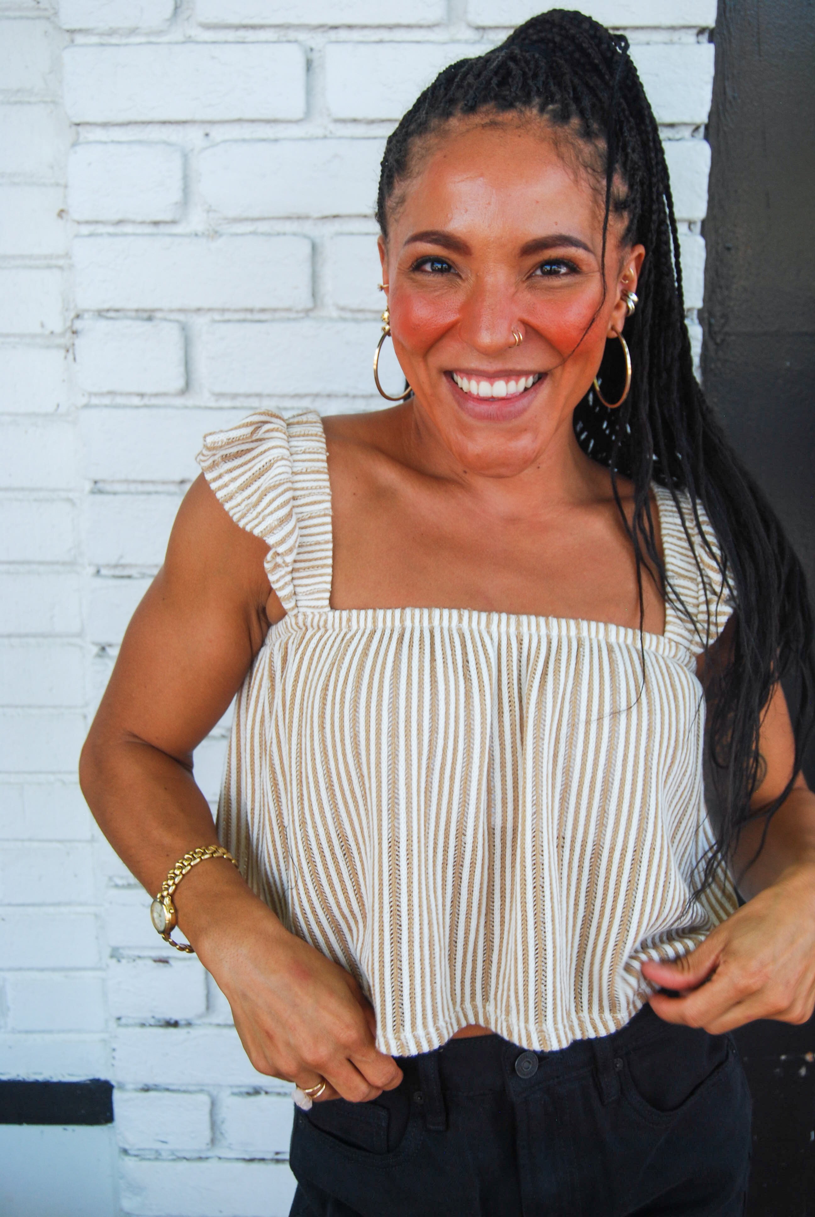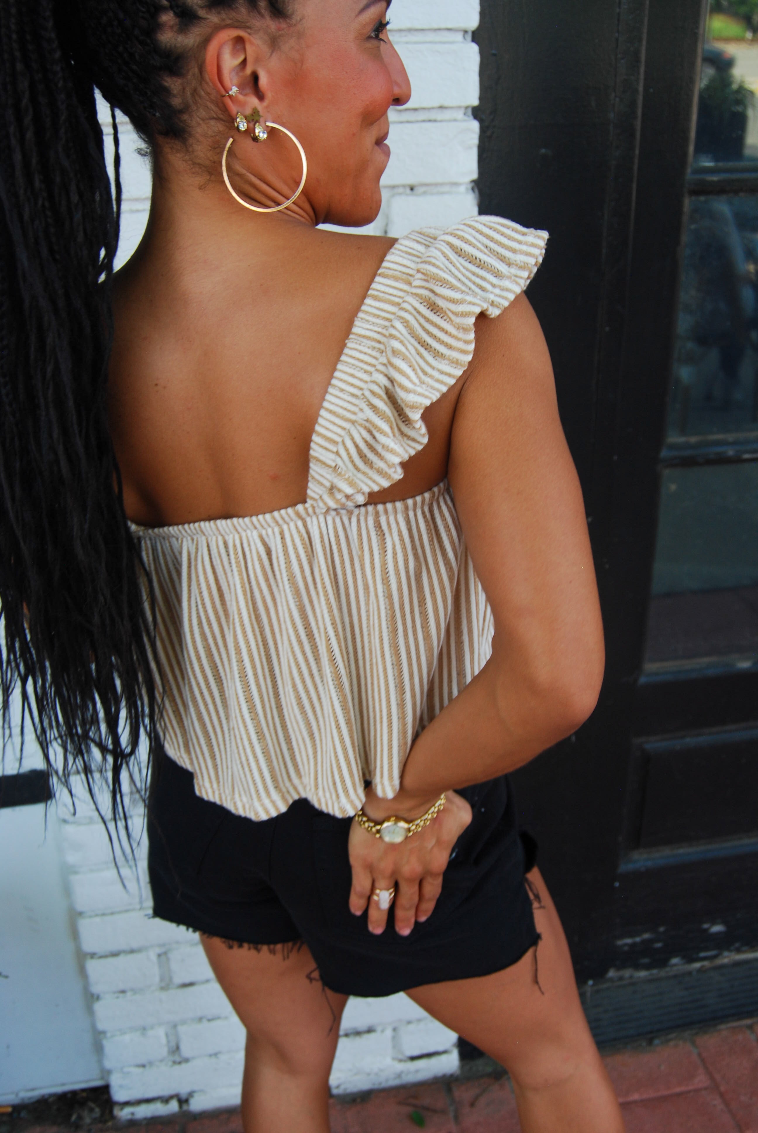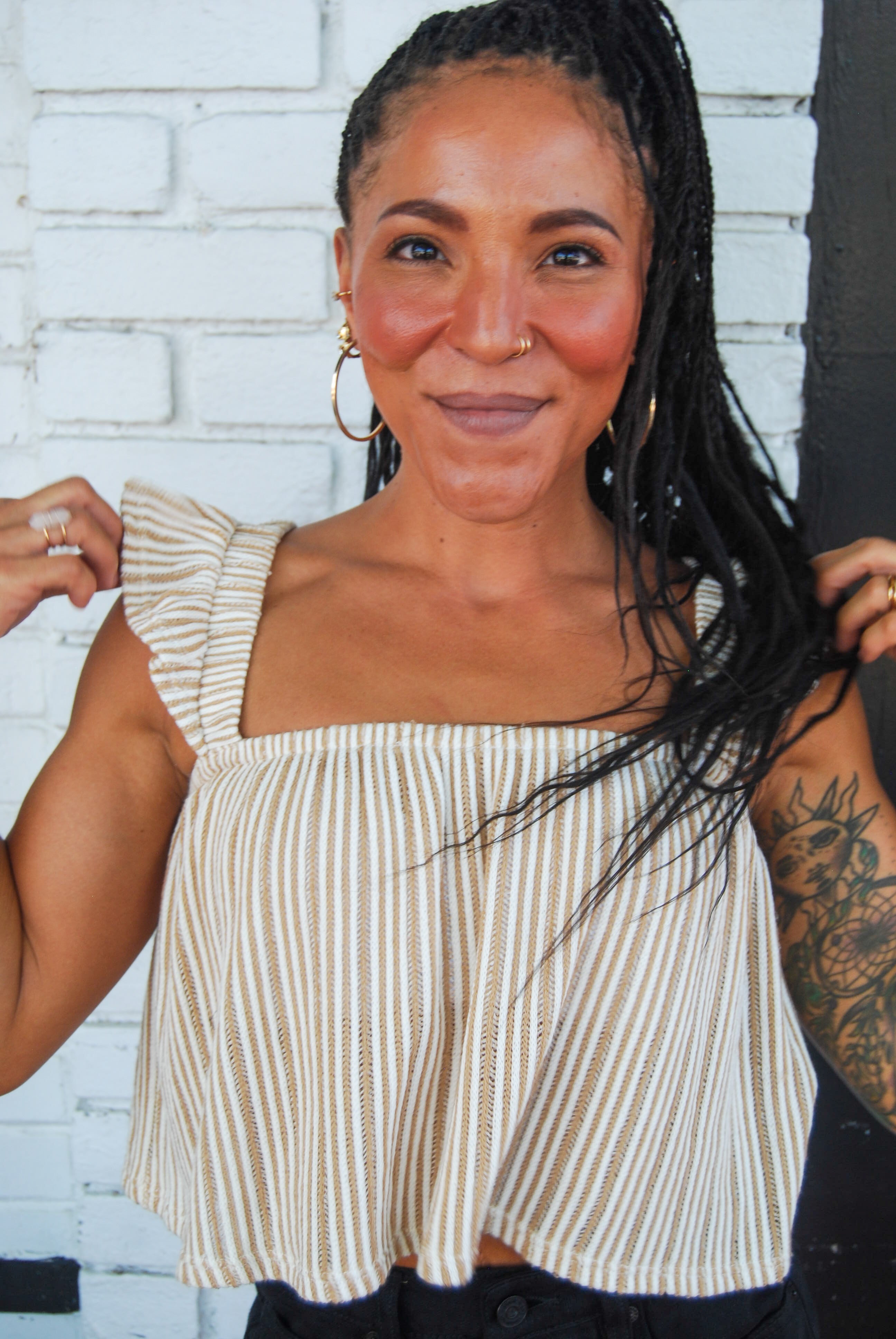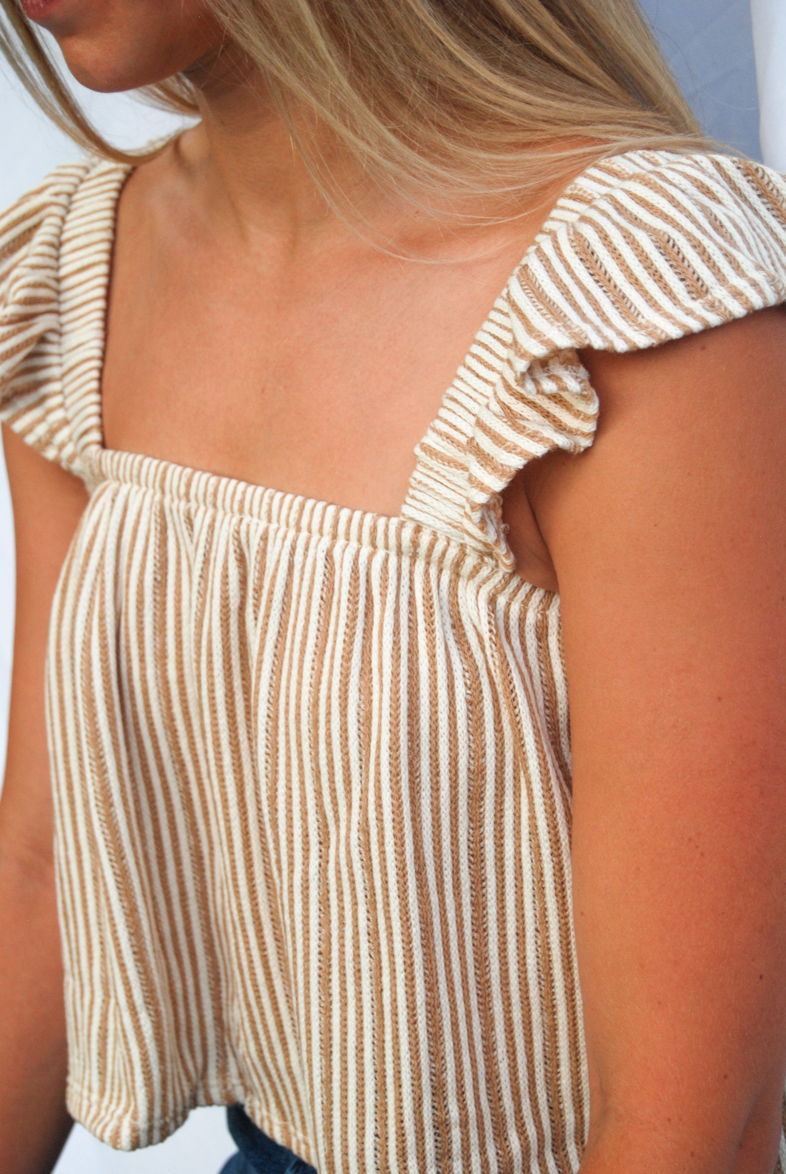 Upgrade your wardrobe with our Journey On Ruffle Top! This cozy and cute, striped knit tank will make you stand out in style. Its unique ruffle sleeve detail adds a touch of fun to any outfit.