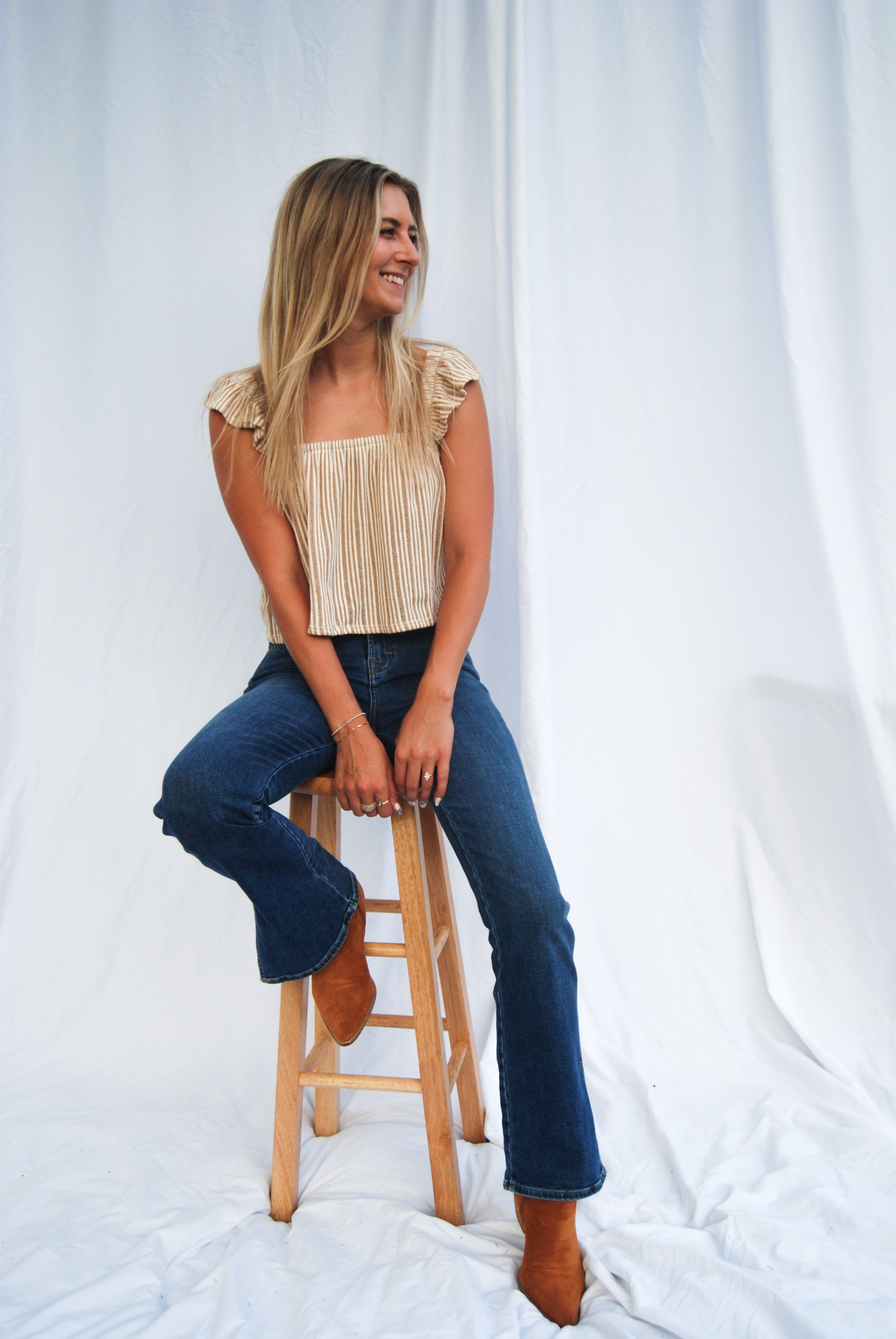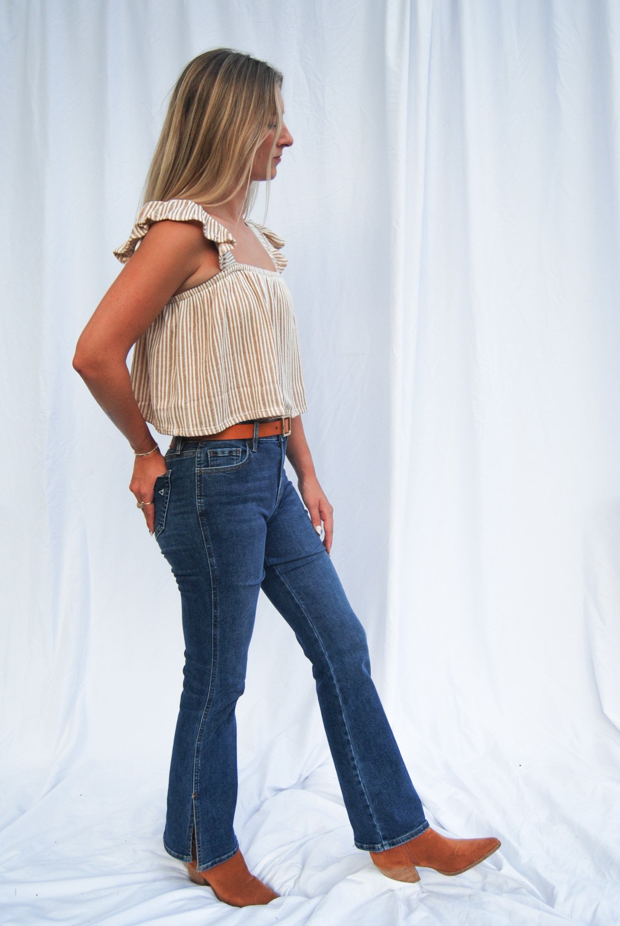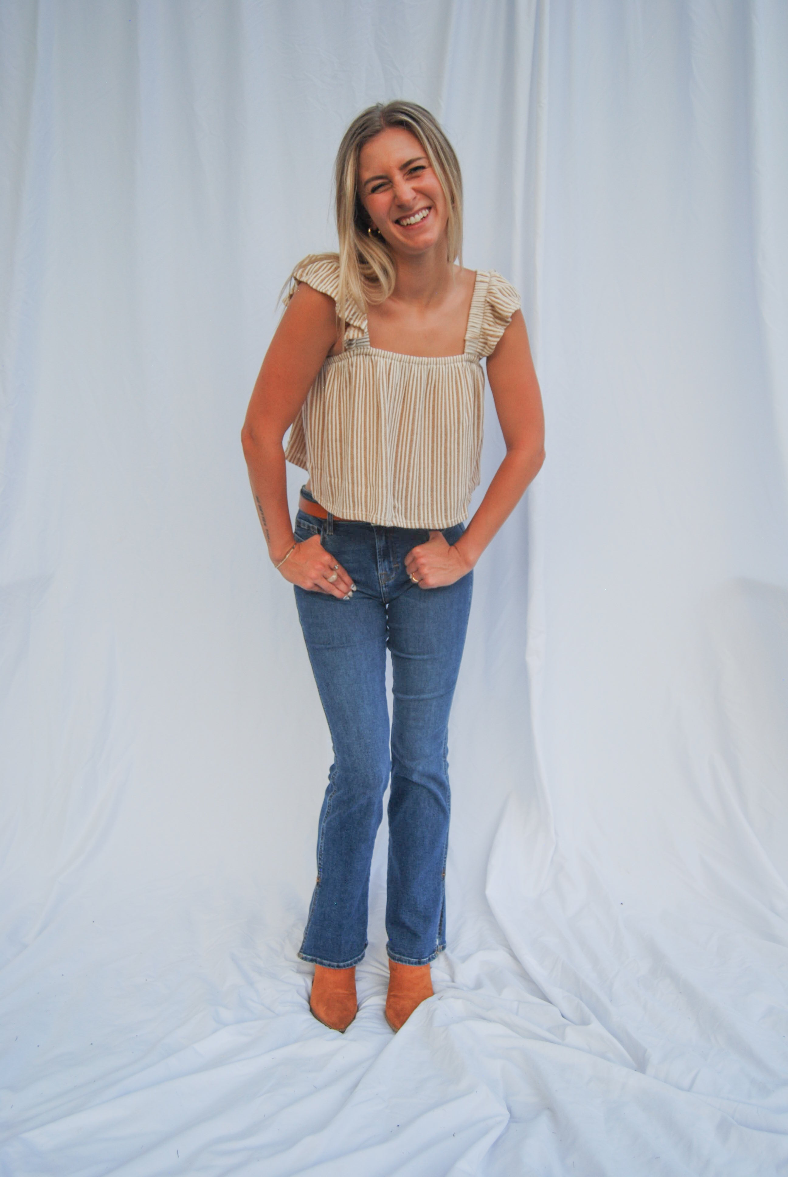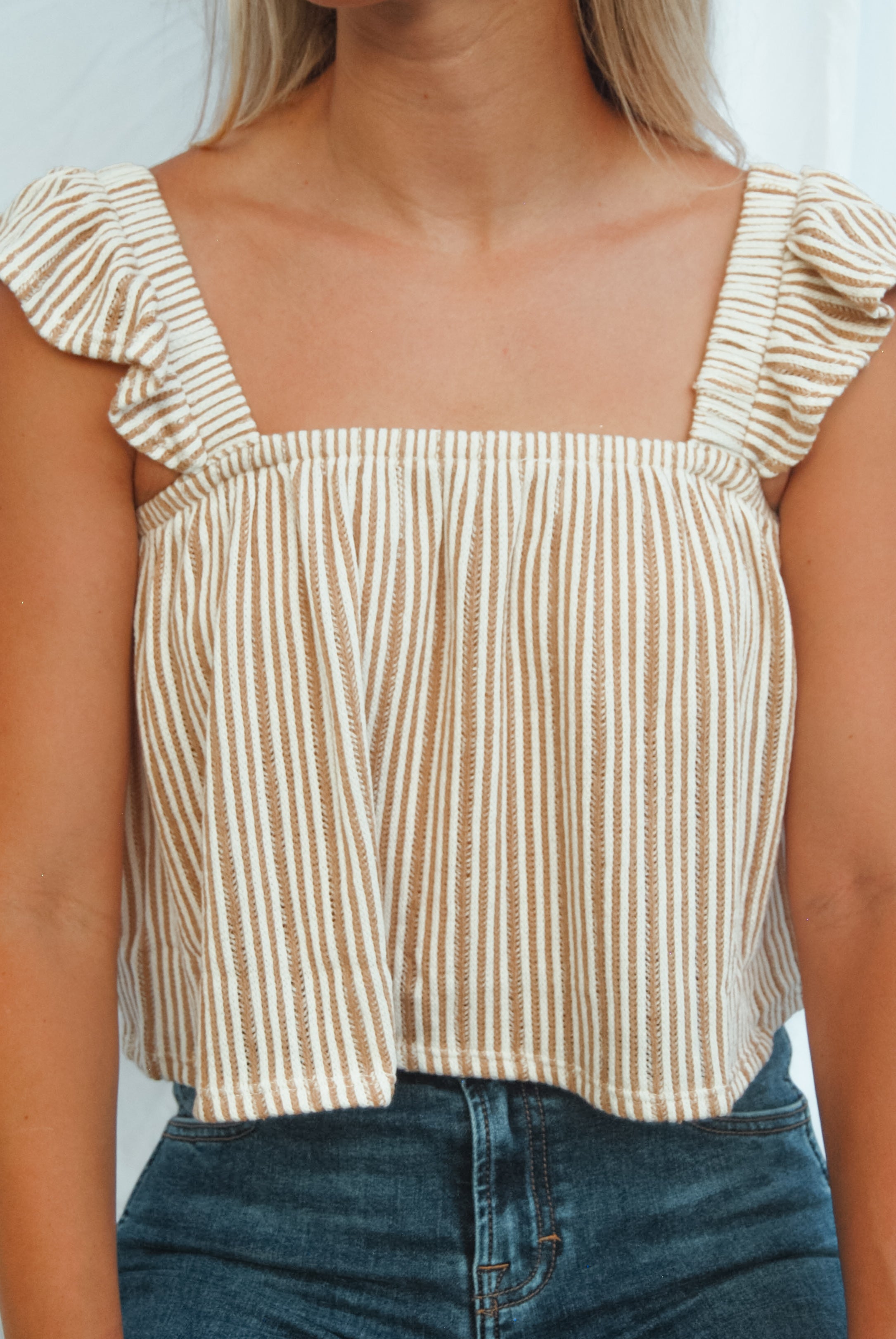 Upgrade your wardrobe with our Journey On Ruffle Top! This cozy and cute, striped knit tank will make you stand out in style. Its unique ruffle sleeve detail adds a touch of fun to any outfit.
