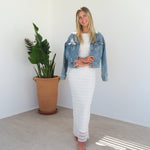 This lightweight, soft cropped denim jacket is your new wardrobe BFF! In the perfect medium wash that goes with literally everything, the Life Saver Denim Jacket lives up to its name. Toss it over dresses, tees, or even your gym outfit for an instant style upgrade. So easy to wear, you'll wonder how you ever survived without it!