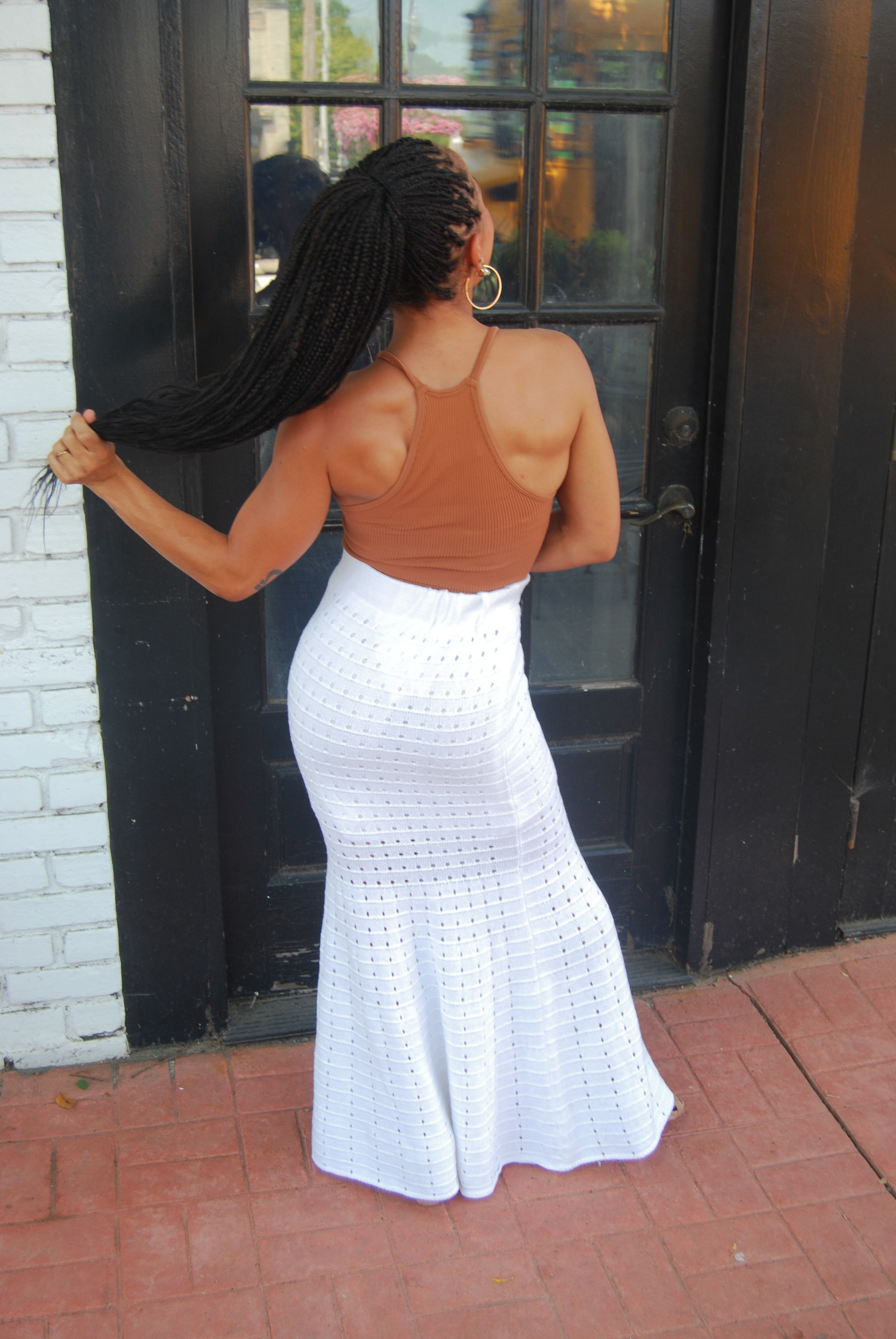 Fall in love with our Little Bit In Love Midi Skirt! This statement piece is not just your average white skirt - it features a playful slit, comfortable elastic waistband, and a lining for a perfect fit. Get ready to turn heads with this quirky, fun addition to your wardrobe. (And maybe even find a little love along the way!)