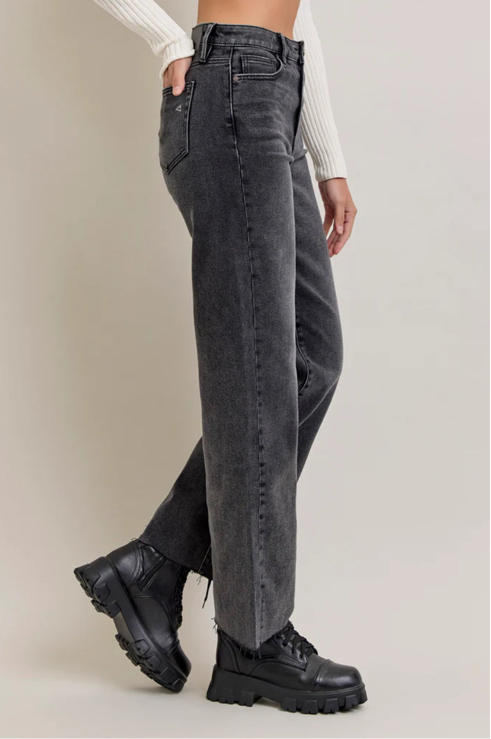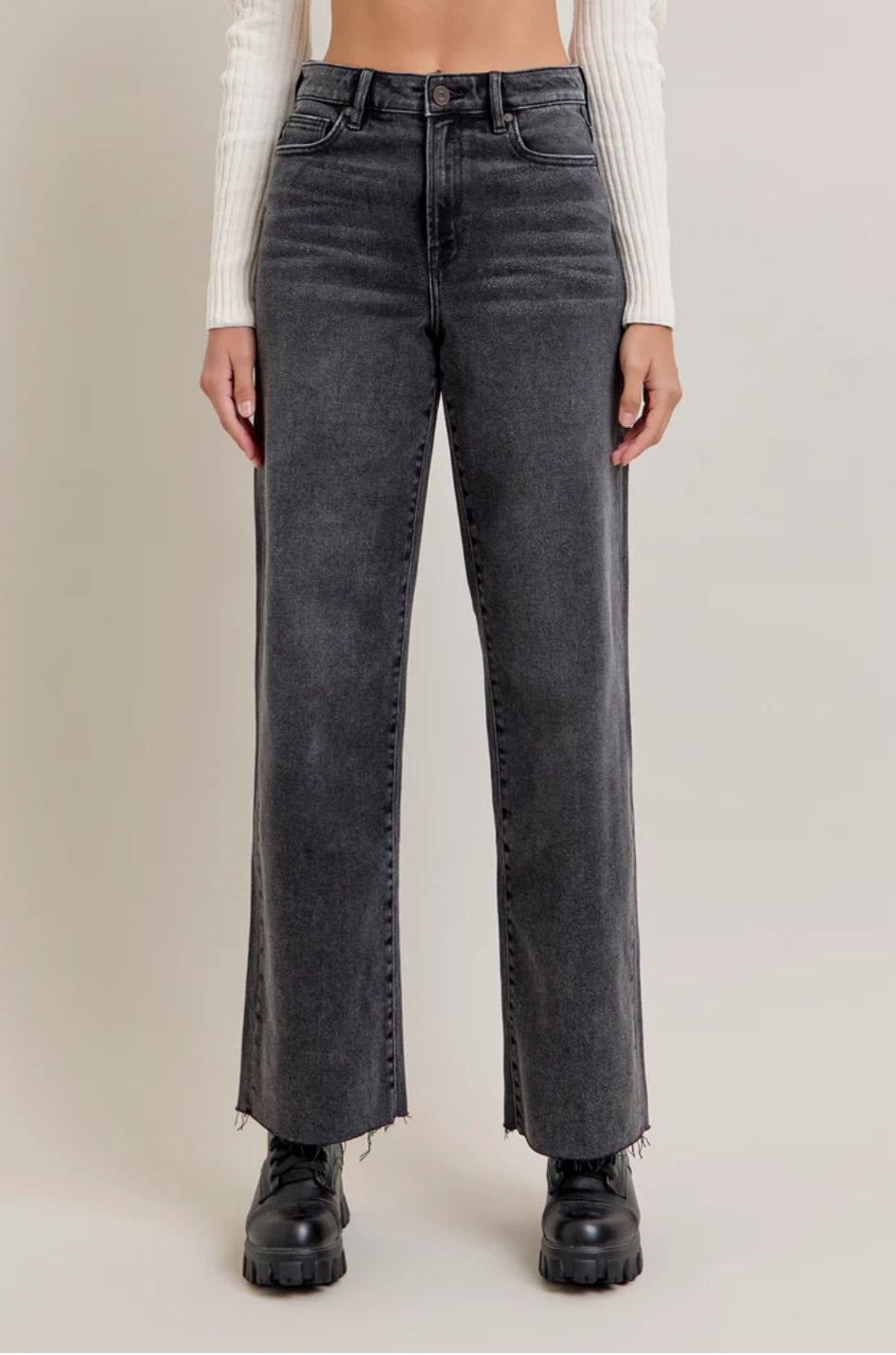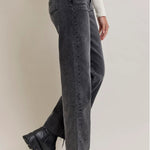 Meet the Logan Black Washed Jean — your new go-to for effortless cool. Featuring a raw hem with a clean cut, these dad jeans combine buttery-soft comfort with a flattering fit that celebrates every body shape. Perfect for dressing up or keeping it casual, they'll quickly become your favorite wardrobe staple. Slip into comfort and style that’s always on point!