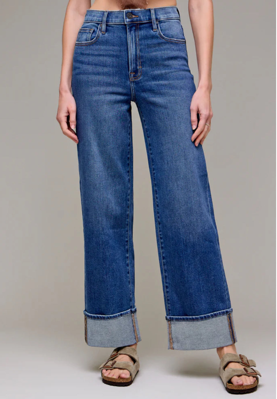 Step into easygoing vibes with the Logan Dark Wash Cuff jeans. These stretchy dad jeans feature a stylish cuff for a laid-back look that’s as comfy as your favorite hoodie. Perfect for days when you want effortless style without sacrificing comfort.