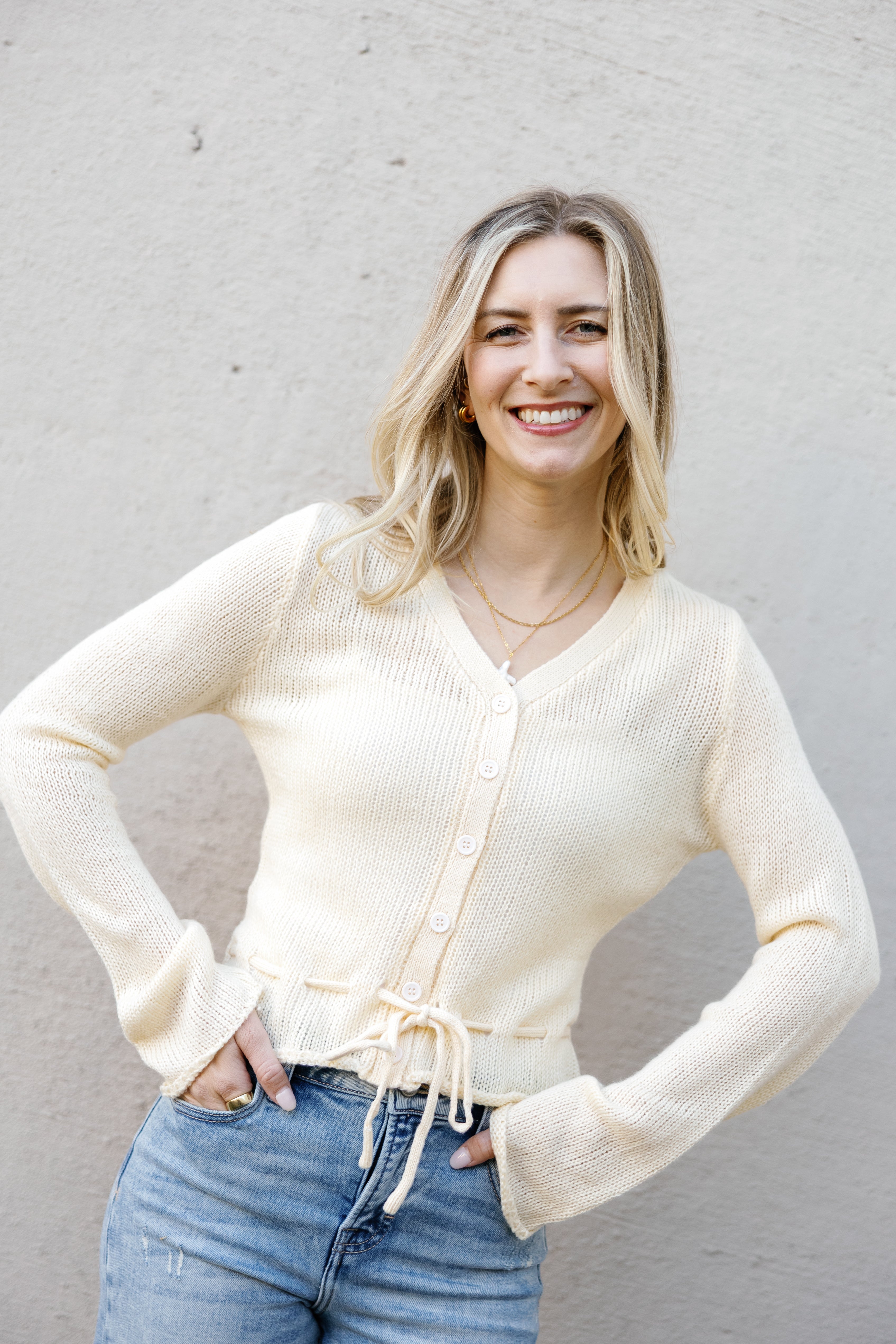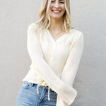 Meet your new favorite layering essential—a butter yellow peplum cardigan that's as fun as it is functional. Button it up over anything and adjust the waist tie to flatter your figure exactly how you like it. Bright, cheerful, and endlessly versatile, this cardigan transitions seamlessly from season to season, making it the piece you'll reach for again and again. Pure joy in button form.