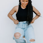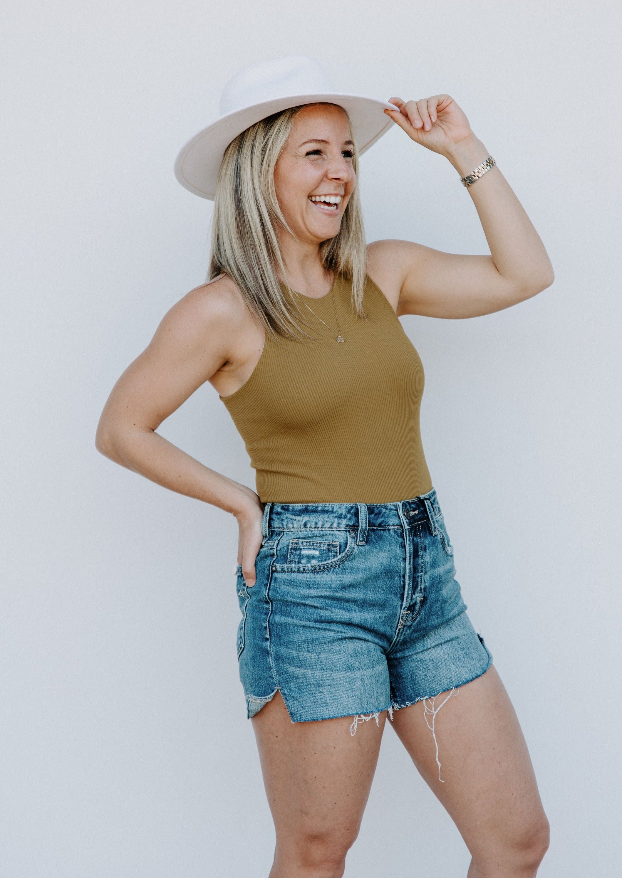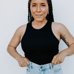 The Looking Sleek bodysuit is a ribbed knit bodysuit that will keep you looking snatched all Spring/Summer long! It features a high neck and a thong style bottom with snap closure for ultimate comfort. The perfect staple for the Summer!