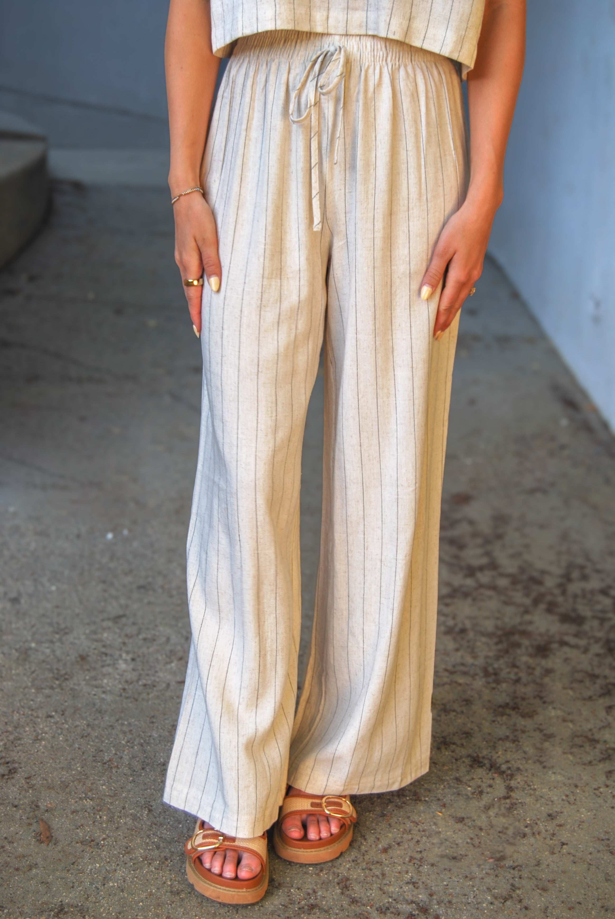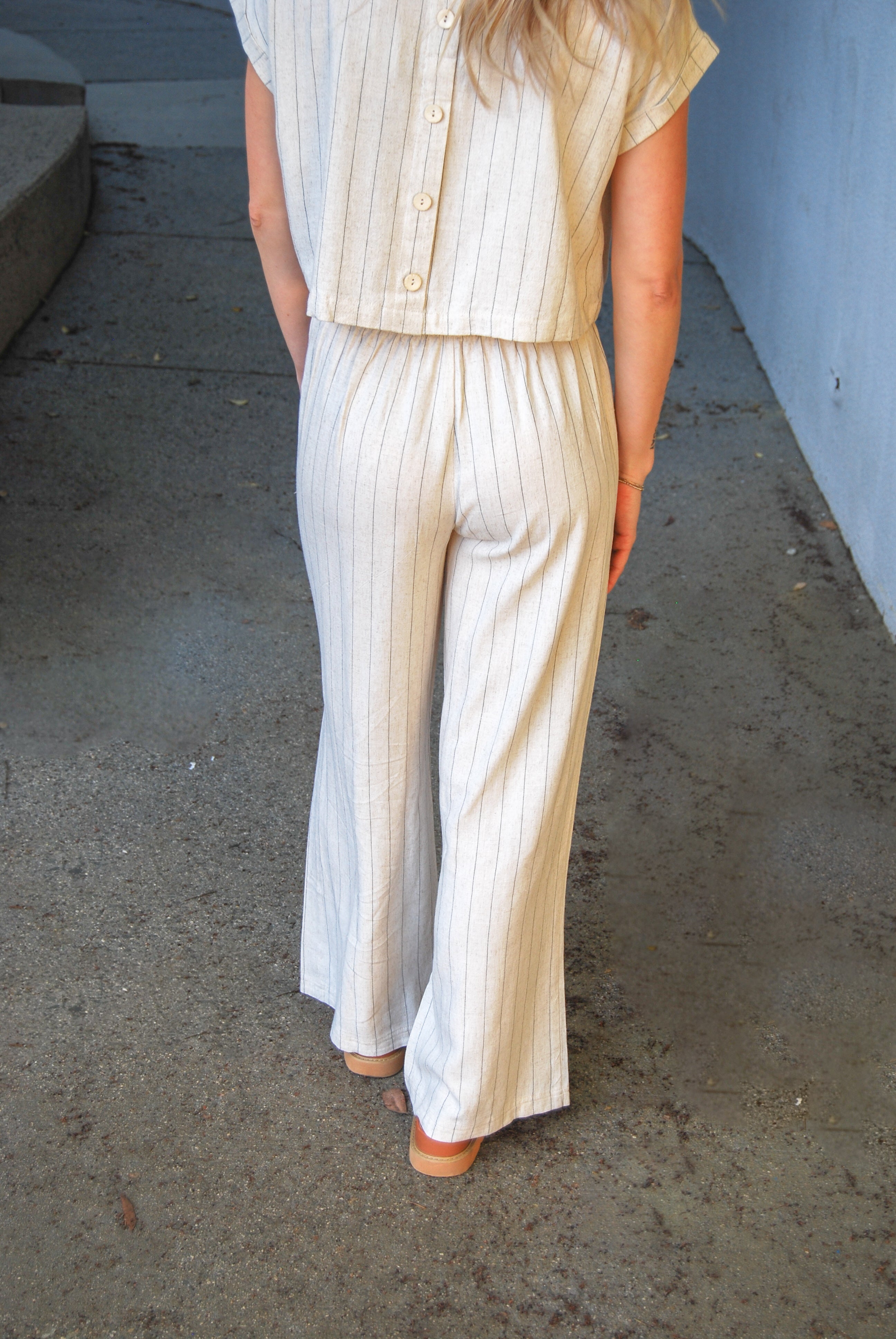 Get ready for a lovely day in our stylish linen pants! Featuring subtle stripe details an an elastic waistband these pants are perfect for pairing with the matching top for the ultimate coordinated look. Embrace the cuteness with this lovely set!