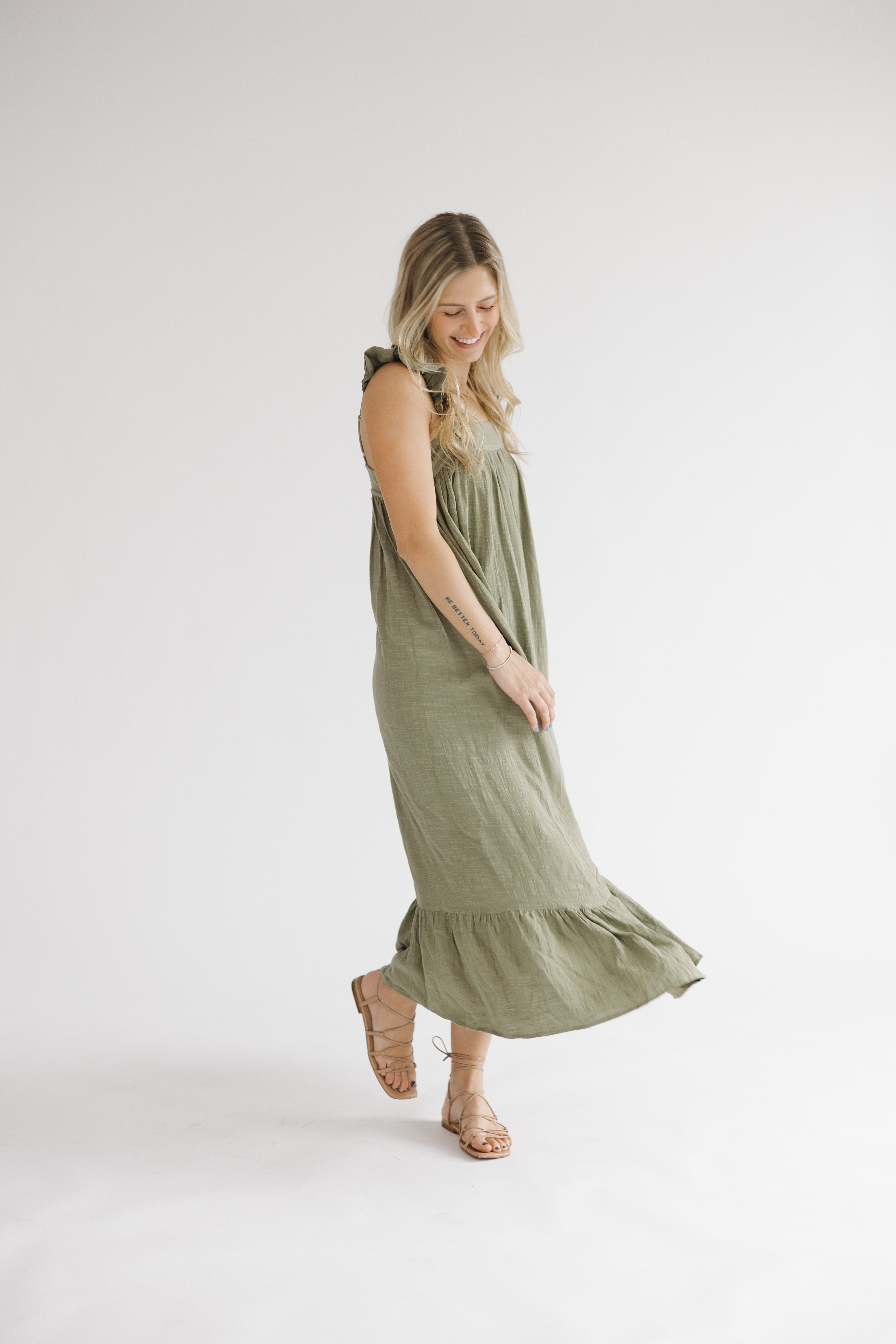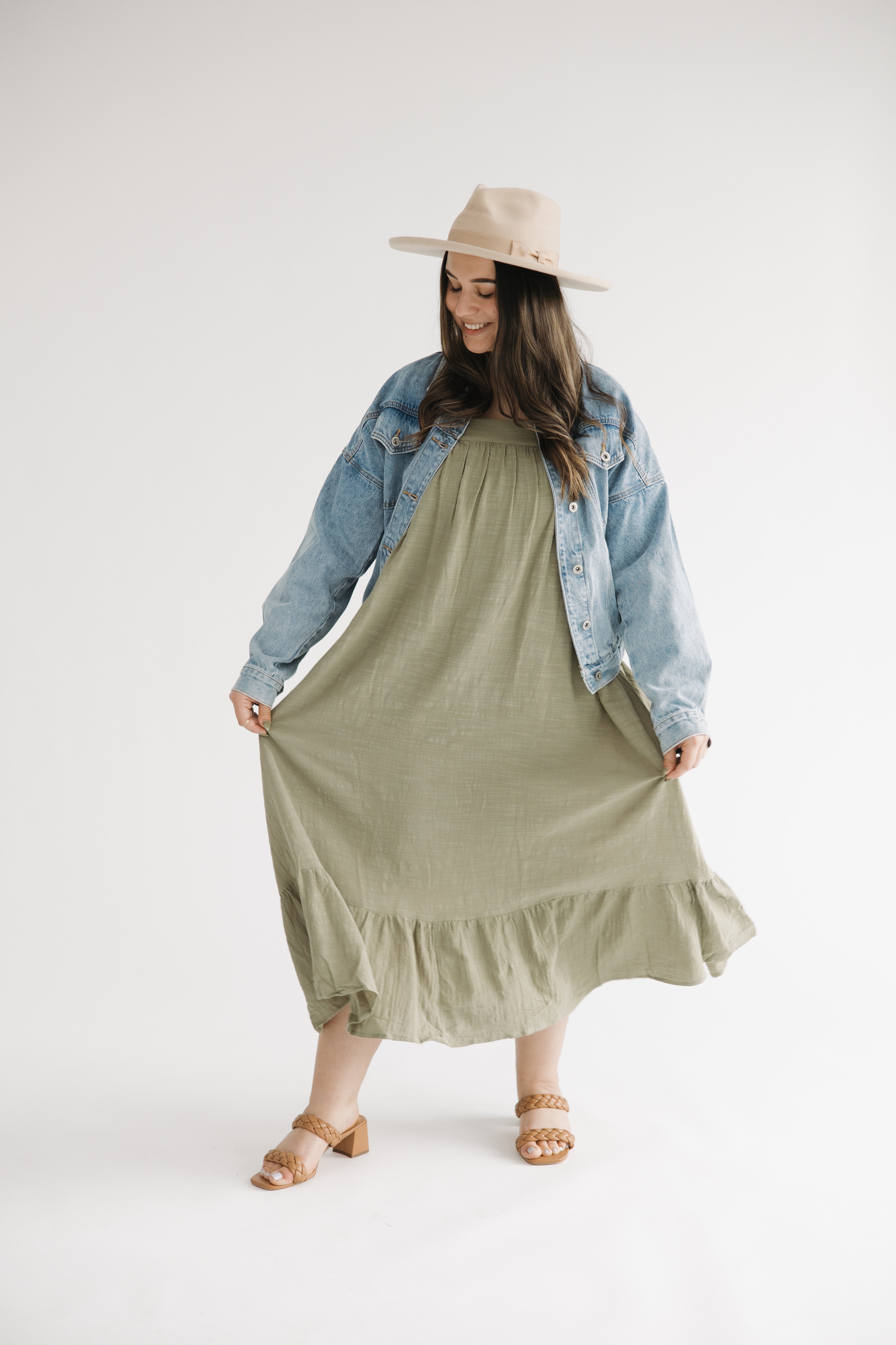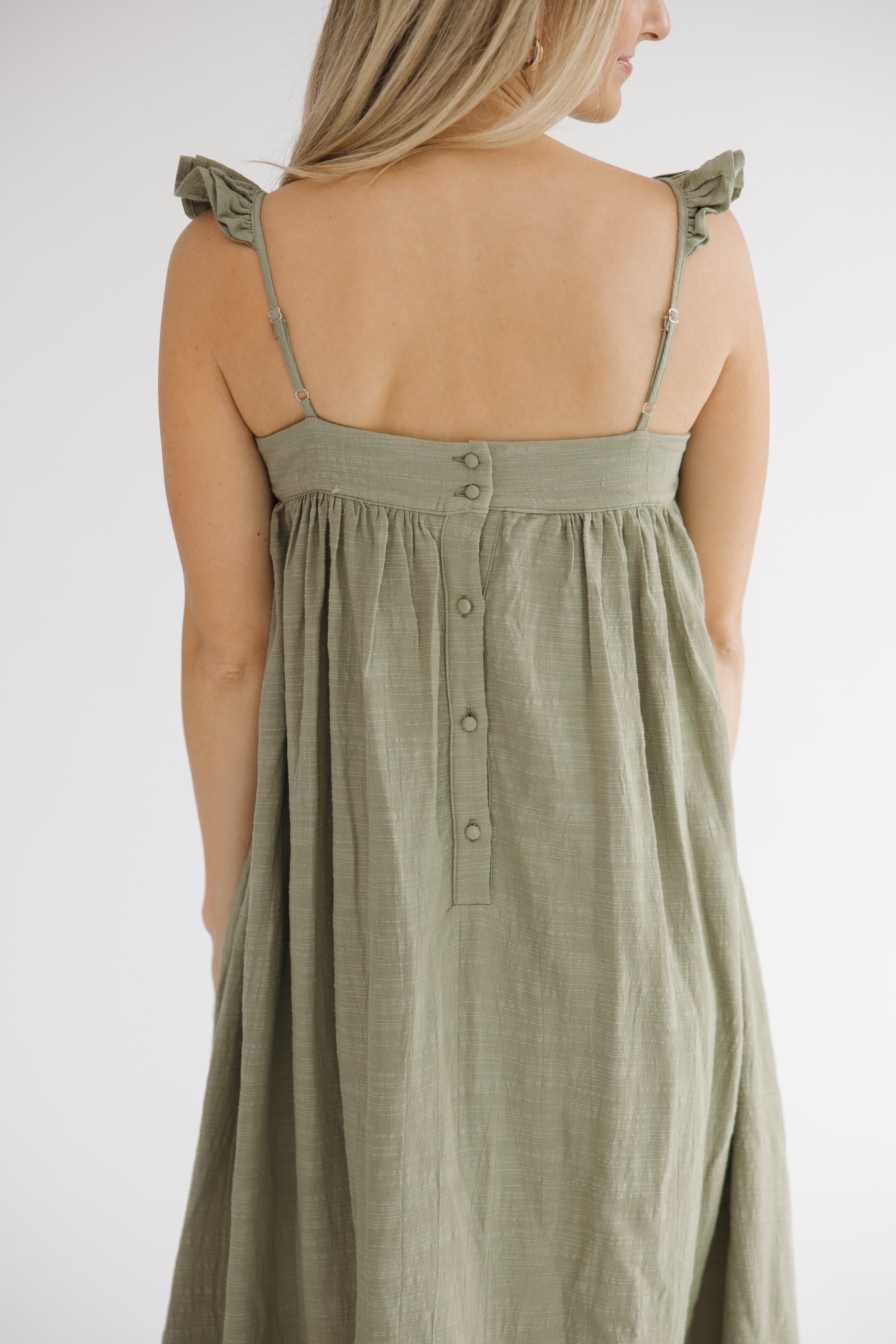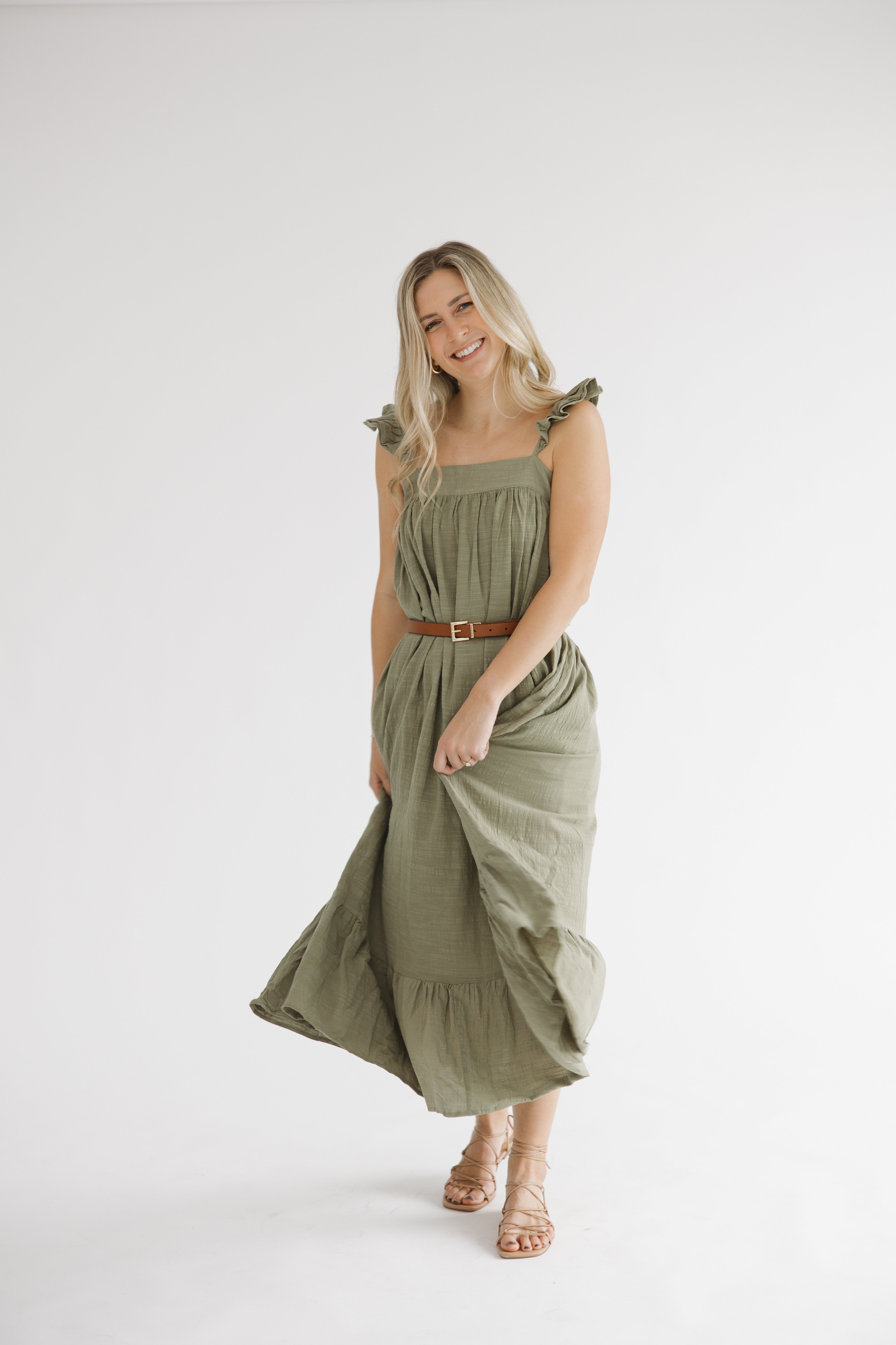 Get ready to fall in love with the Lovely Look Midi Dress. The ruffle sleeves and lightweight fabric provide a flowy and breezy look, perfect for any occasion. With its convenient pockets and stunning olive green color, this dress exudes a lovely look that will guarantee to be your go to dress!