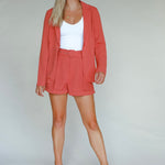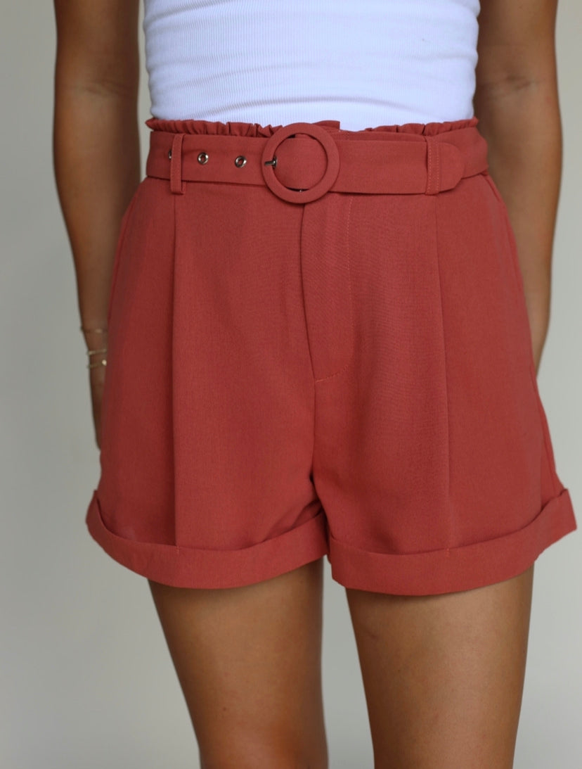 The Make It Up Shorts are an adorable paper bag short with a belt that pairs perfectly with the Make It Up Blazer for the ultimate power suit look! These are nice and lightweight perfect for transitioning into Fall.