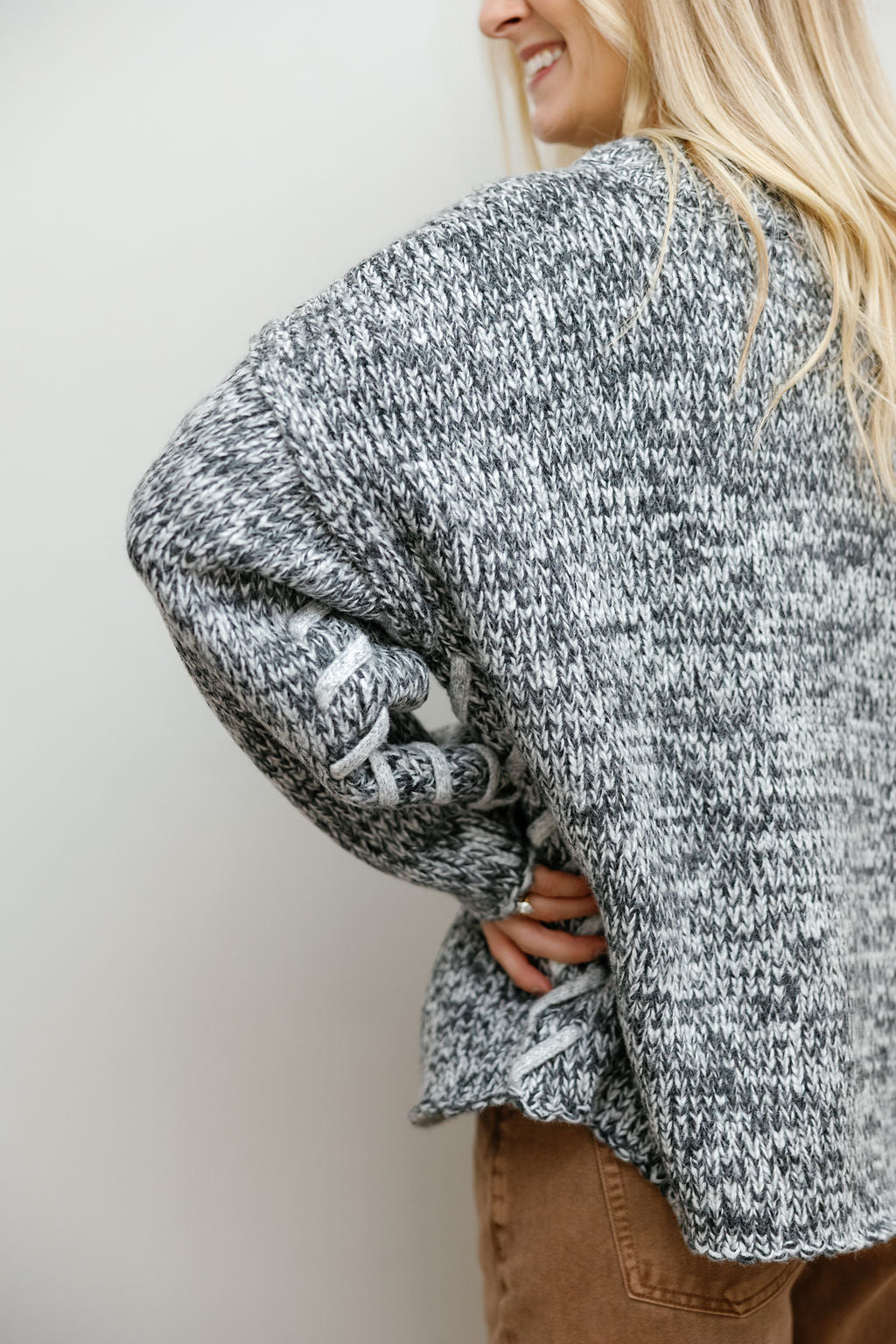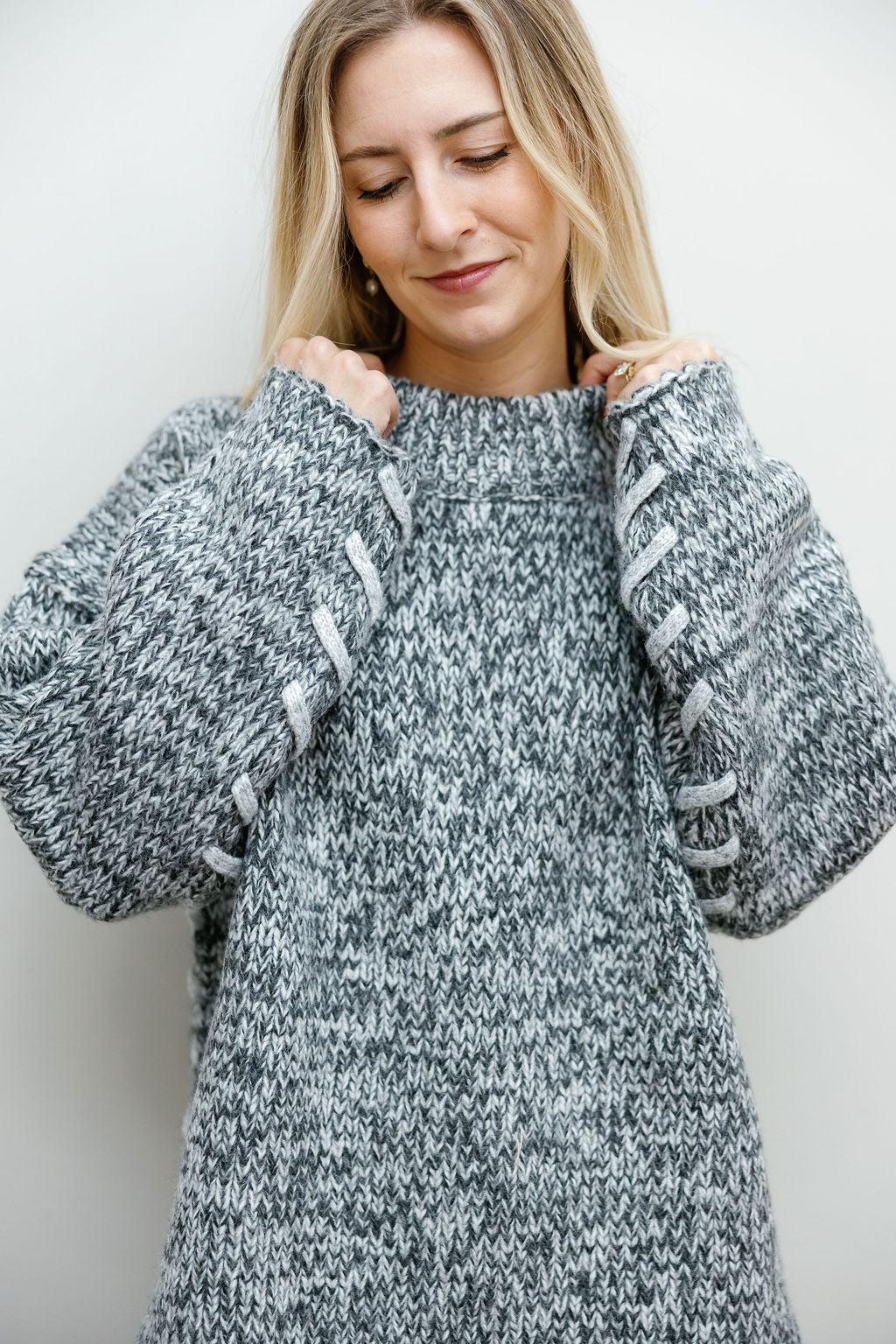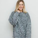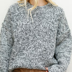 Rock an effortlessly cool vibe in this two-tone marled knit sweater that's all about relaxed charm. Oversized stitching runs down the sides for visual interest, while the crew neckline features a cozy ribbed collar. Long sleeves with rolled cuffs and a matching rolled hem keep things casual, and the drop shoulder paired with an exposed seam adds that modern, laid-back edge. Cut with a loose fit that feels like your favorite weekend staple.