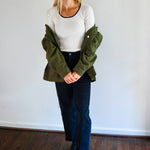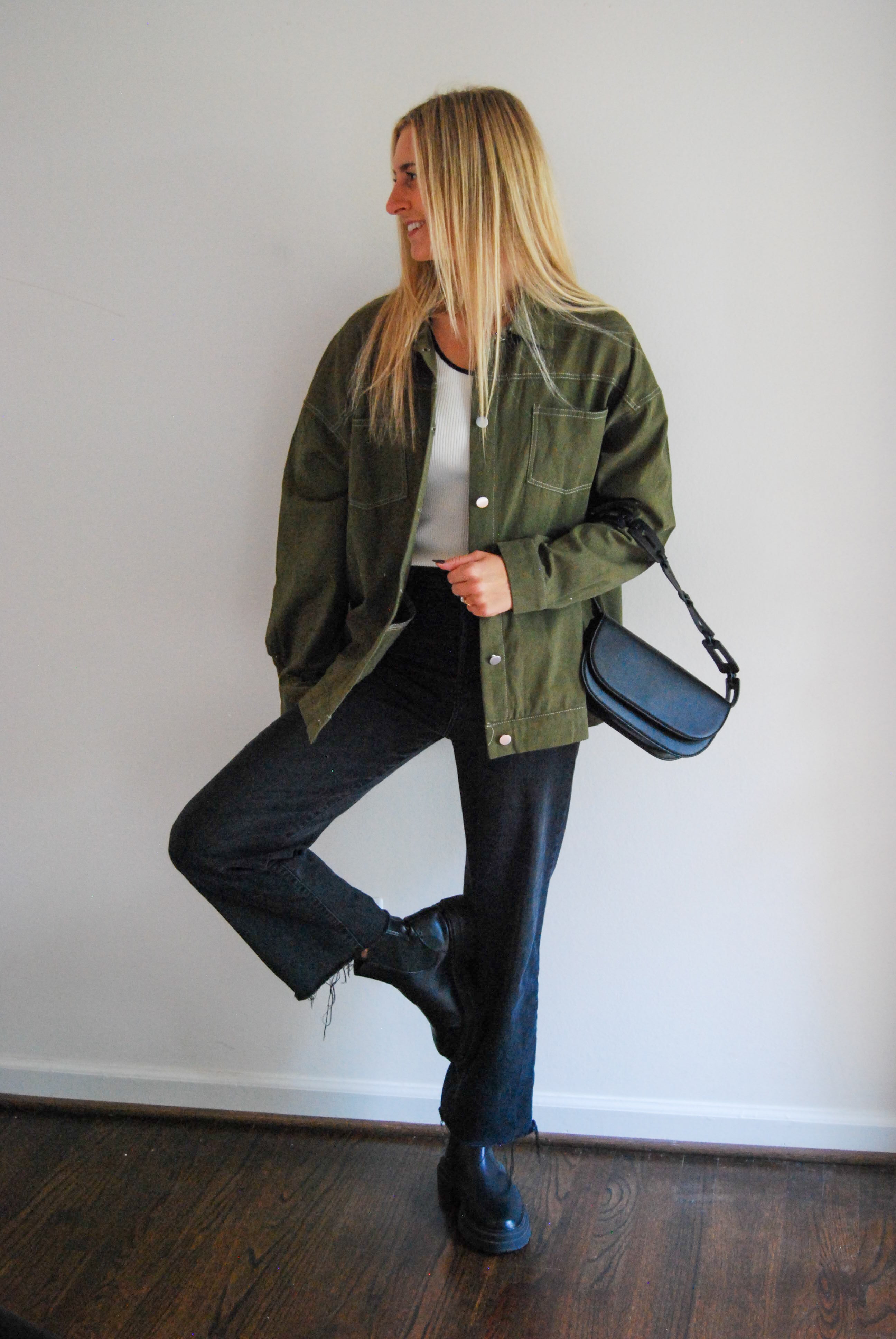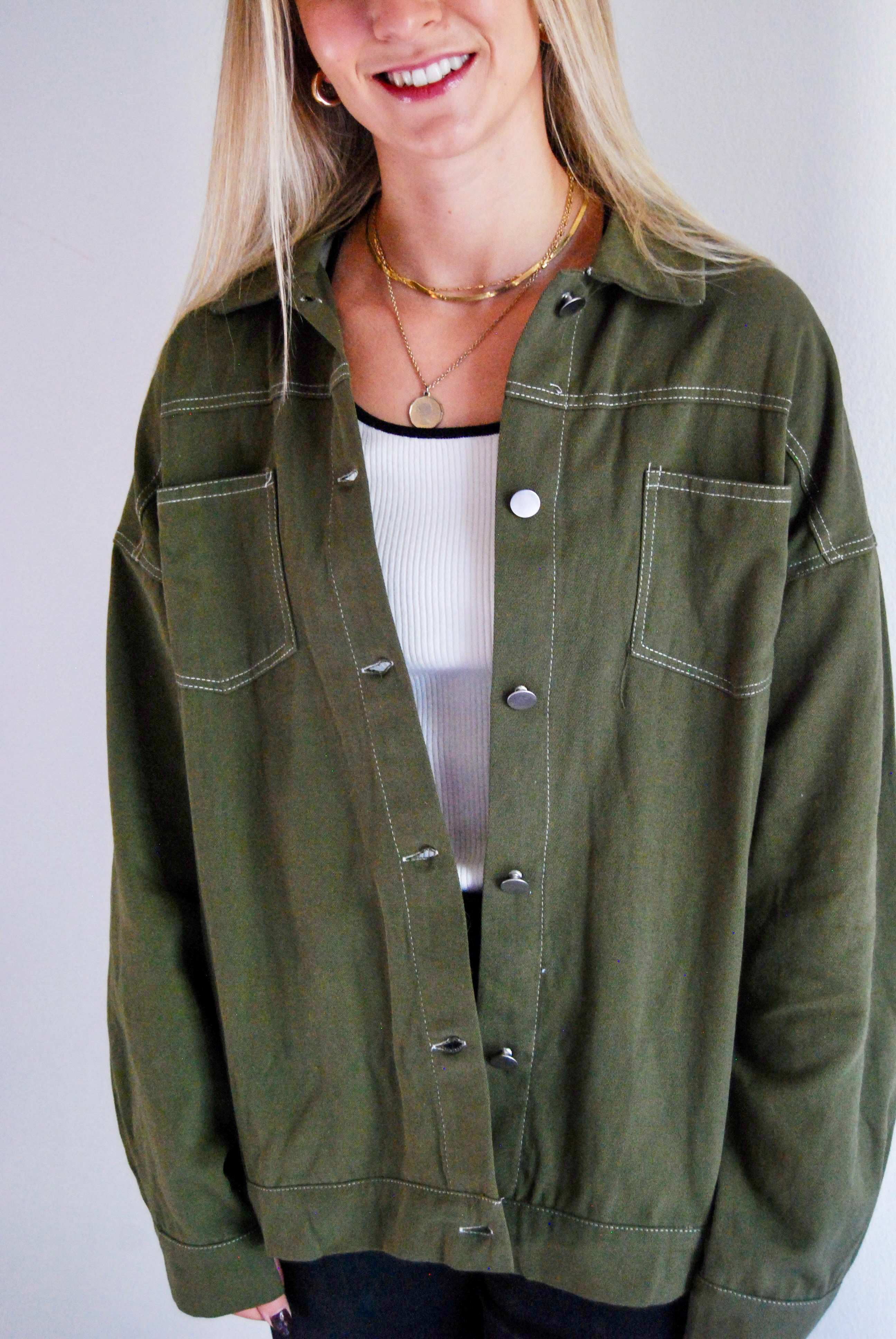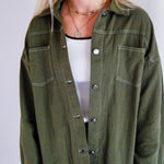 Stay warm and stylish with our No Funny Business Shacket! Made with soft cotton and contrast stitching, this oversized shacket brings edgy vibes to your fall wardrobe. Perfect for the non-serious fashionista who wants to stand out from the crowd.