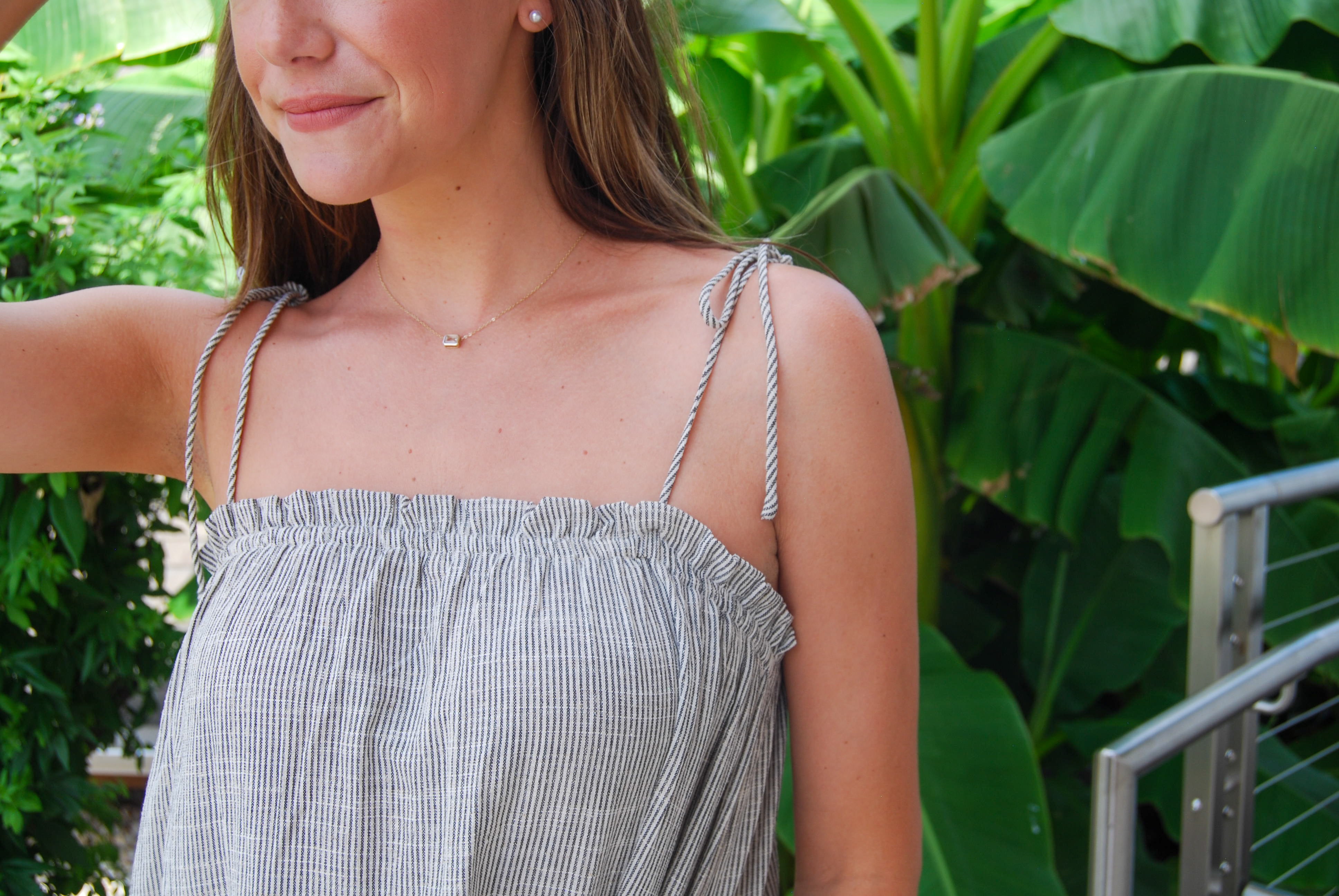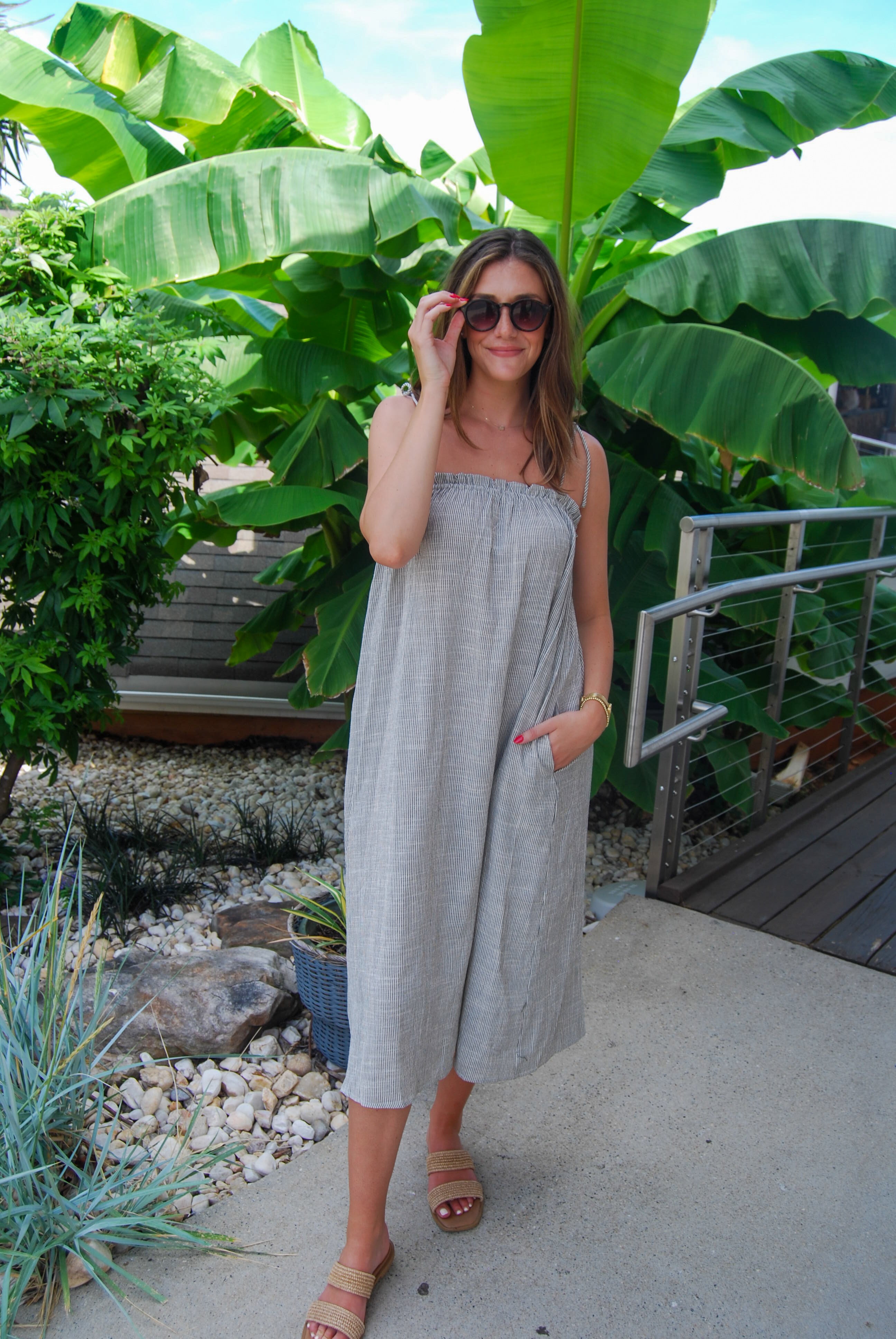 Get ready to set no limits on your style with our No Limits Linen Midi Dress! Crafted with a lightweight linen fabric and featuring a trendy striped design, this dress is both chic and comfortable. The elastic top and adjustable straps allow for a perfect fit, while the pockets add a practical and playful touch. Stay on-trend and carefree in this must-have dress.