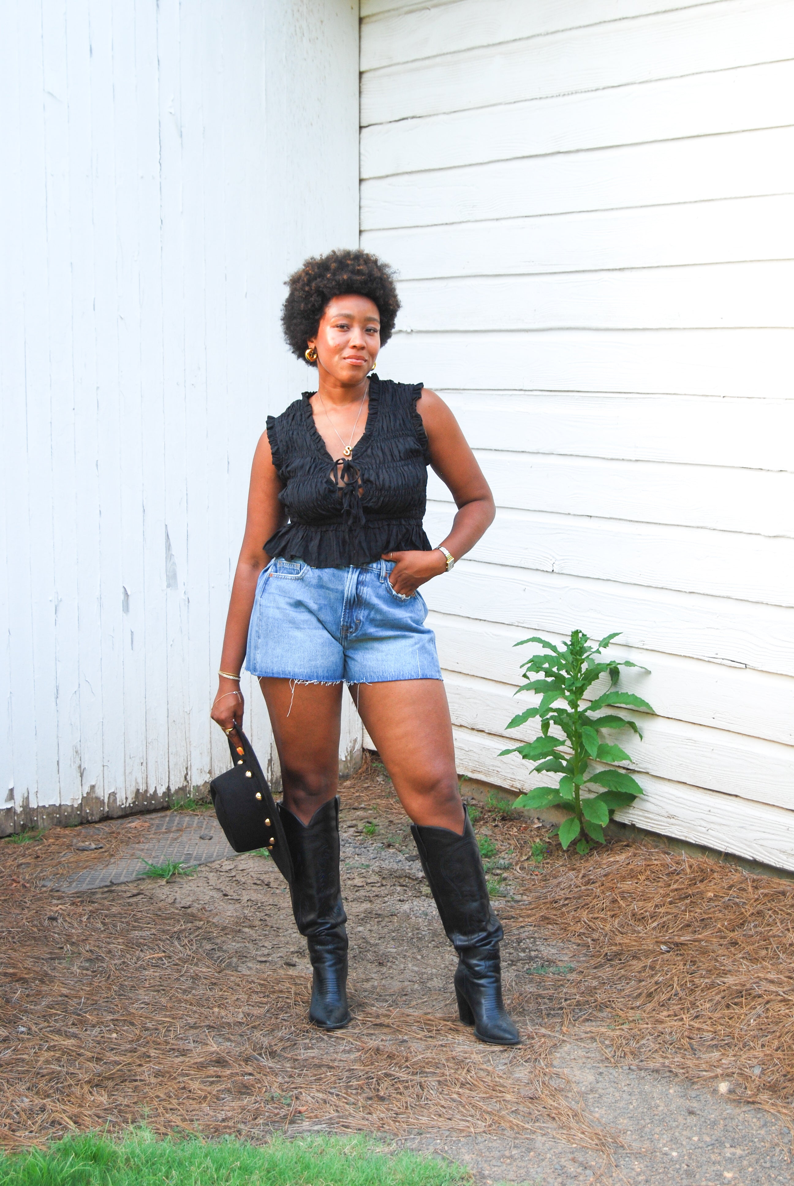 This item has high stretch but is slightly cropped. We recommend your true size. Model is 5'6 wearing sz M