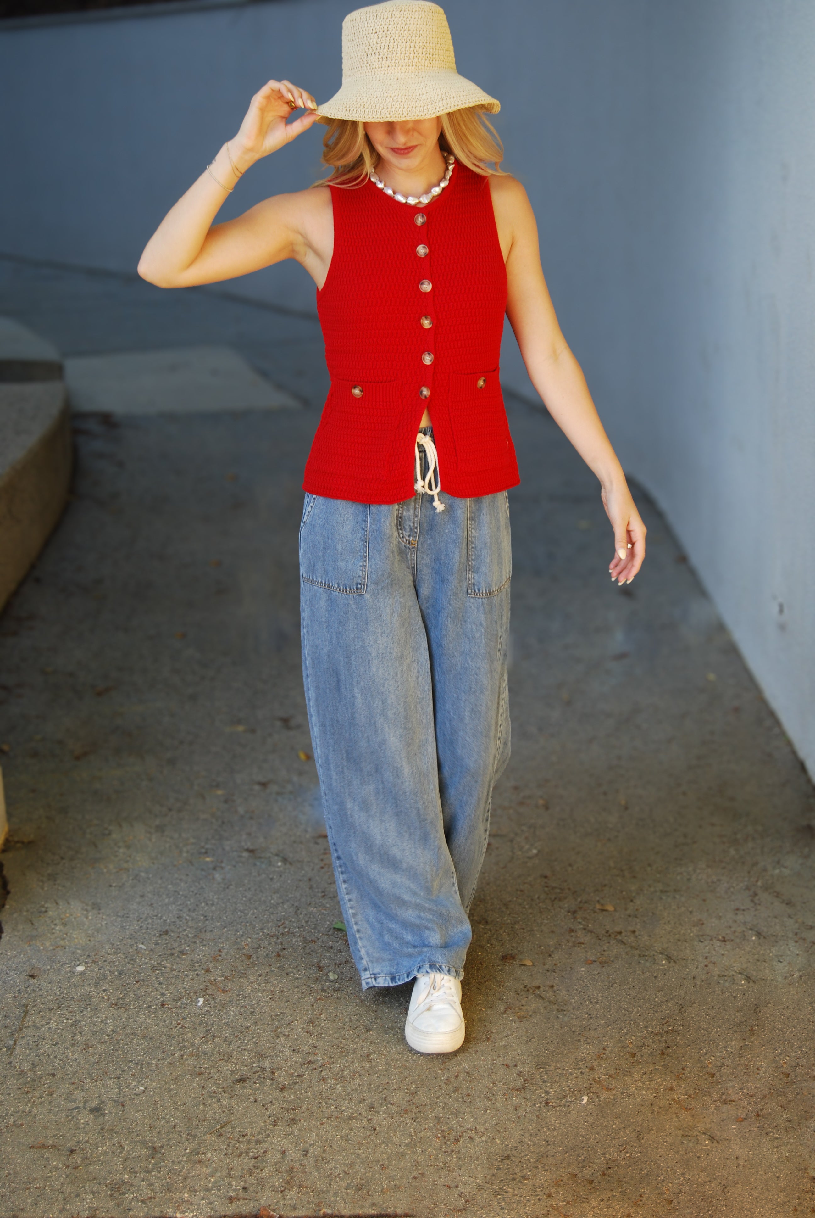 Stay cozy and chic with the Peace of Mind Knit Vest. This elevated basic features a button up design, front slit, and convenient pockets. It's the perfect combination of style and functionality for a worry-free look.