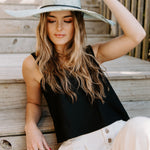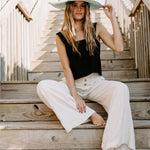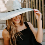 The Pia ultra-wide brim sun hat is made of 100% hand woven sisal straw and features a genuine leather stampede strap making it the perfect shady accessory even on a windy day.