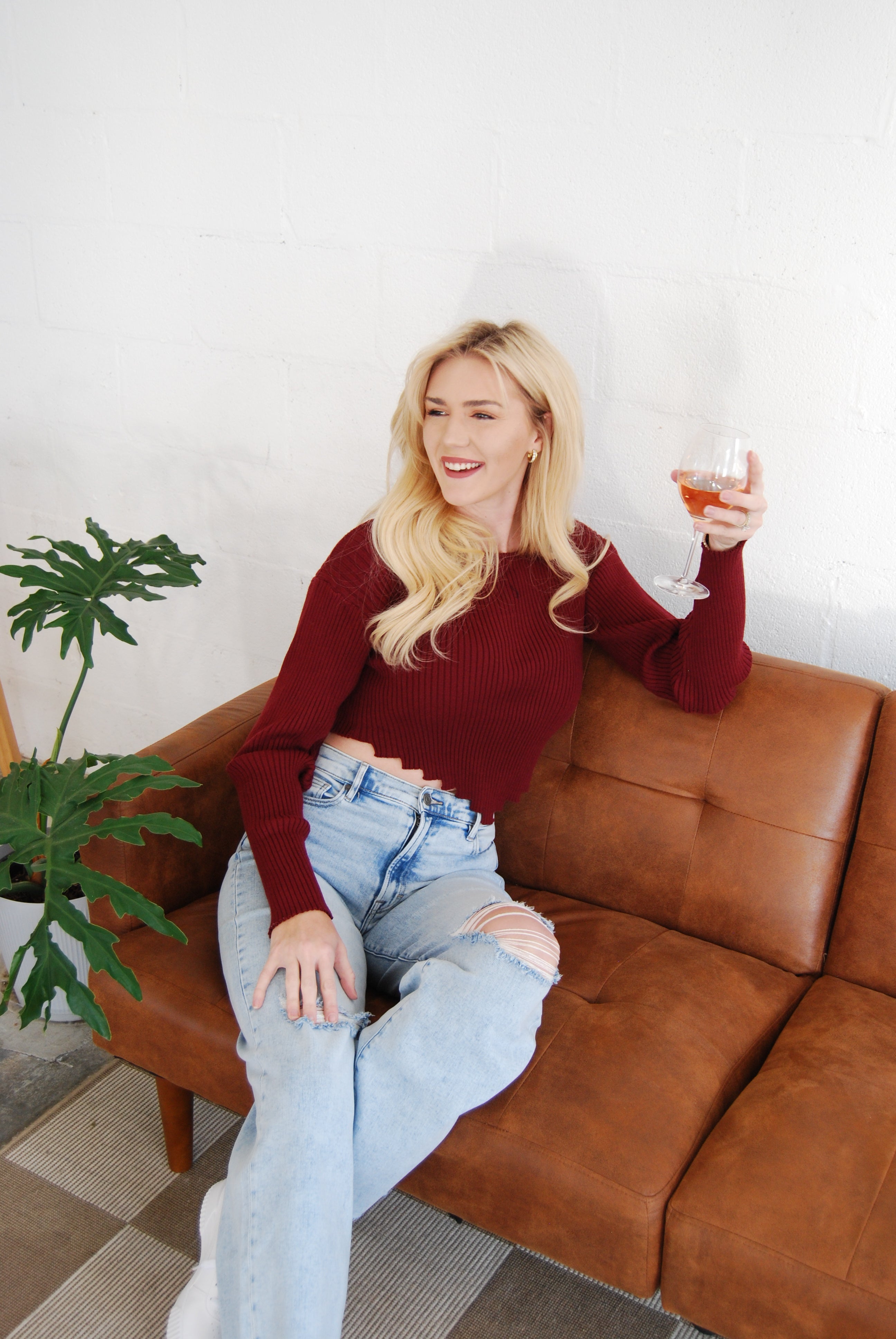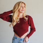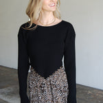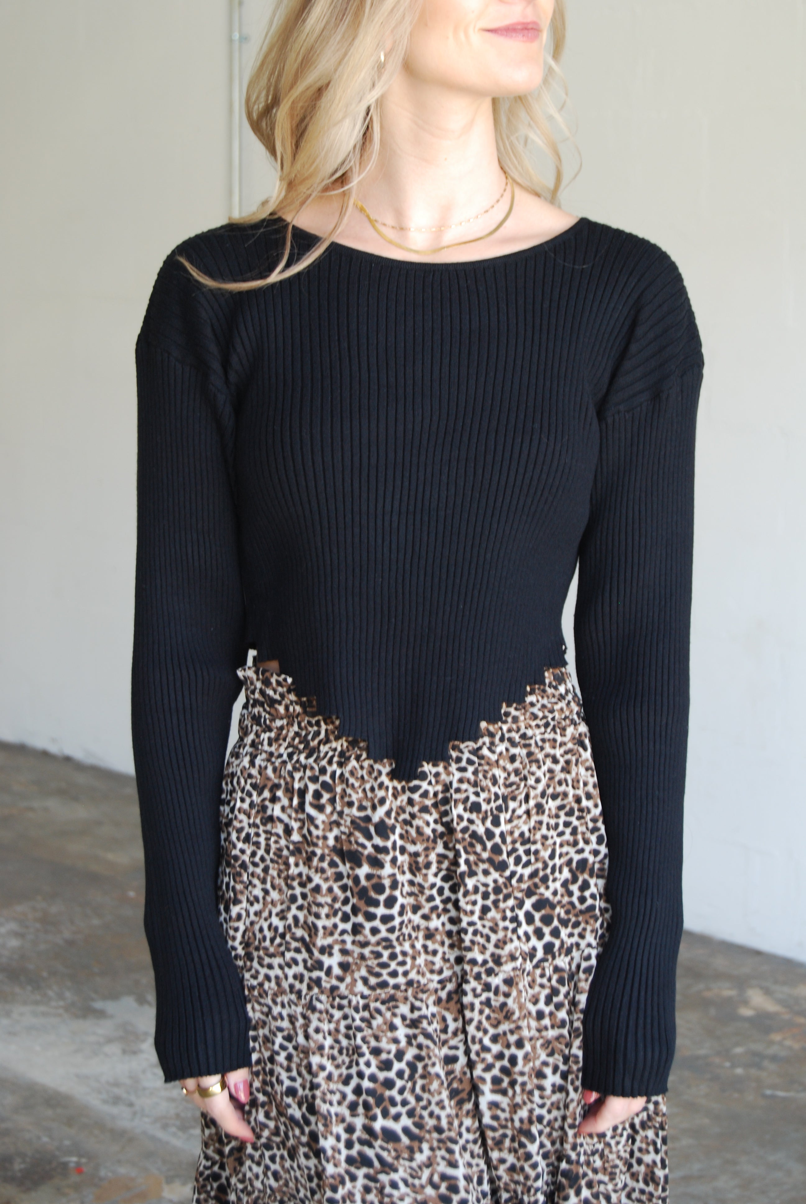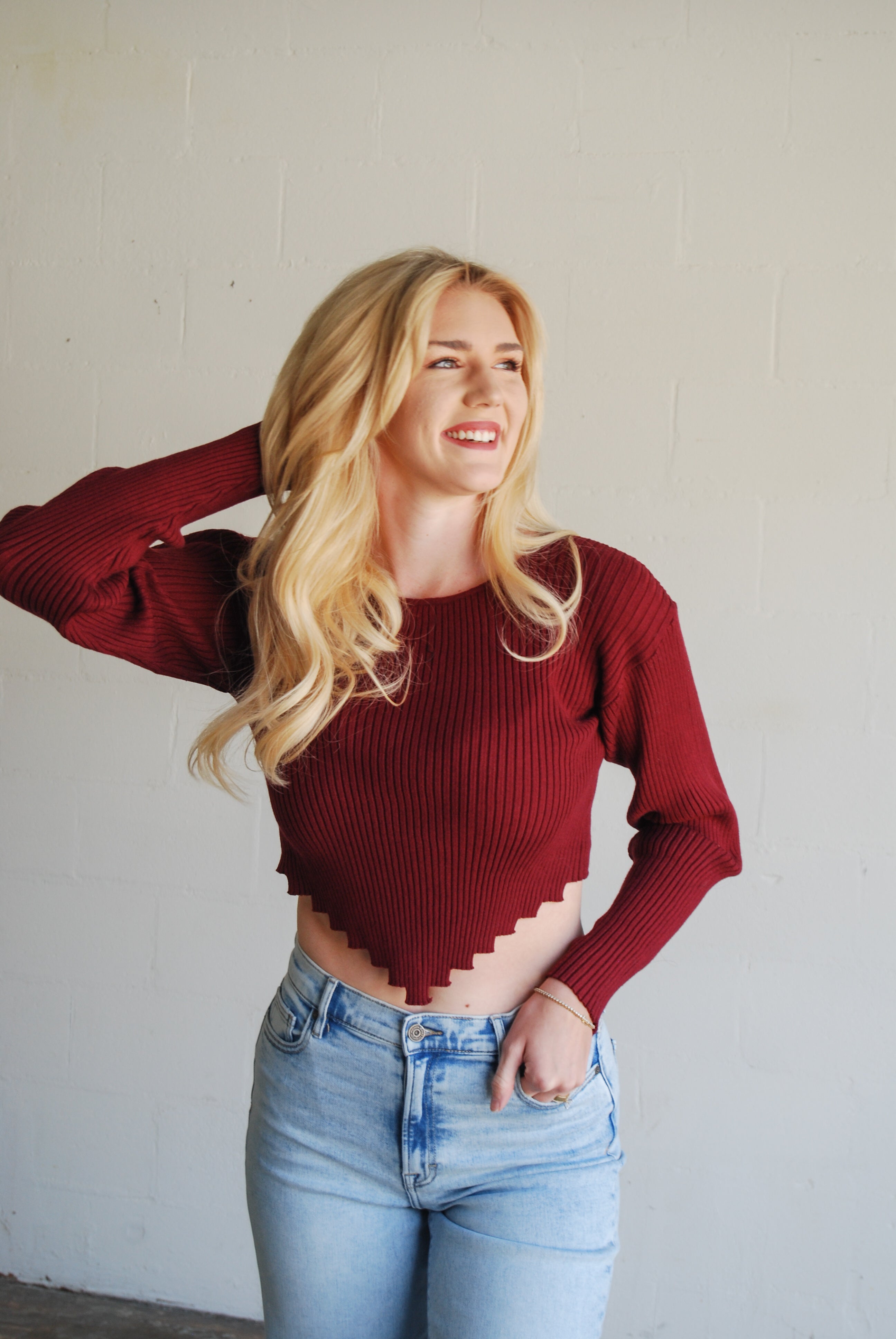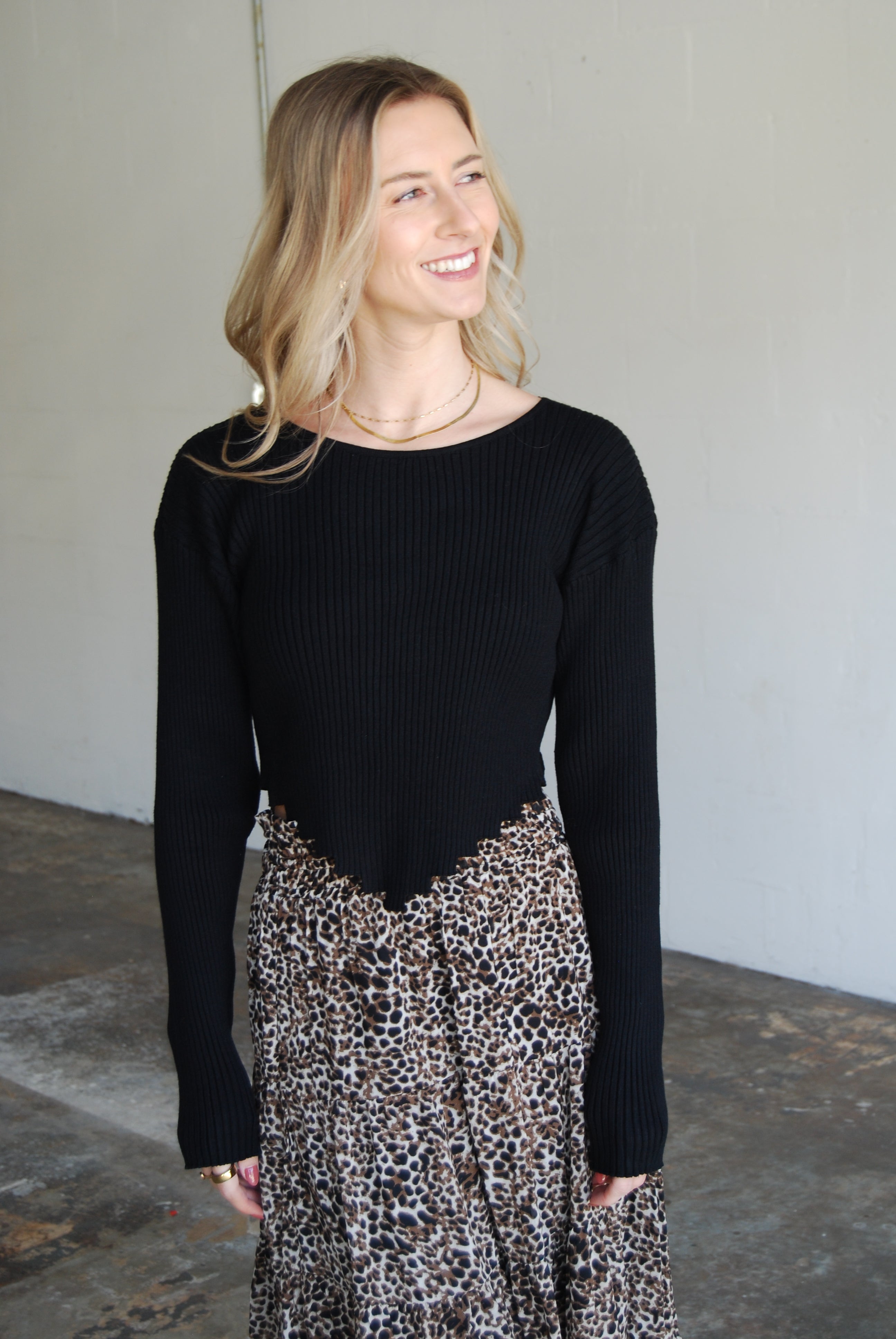 Take your style up a notch with our Point Taken Sweater. This knitted crop sweater features a unique triangle-shaped hem, perfect for adding a touch of flair to your look. Made with buttery soft fabric, it's an elevated basic that can easily take you from day to night.