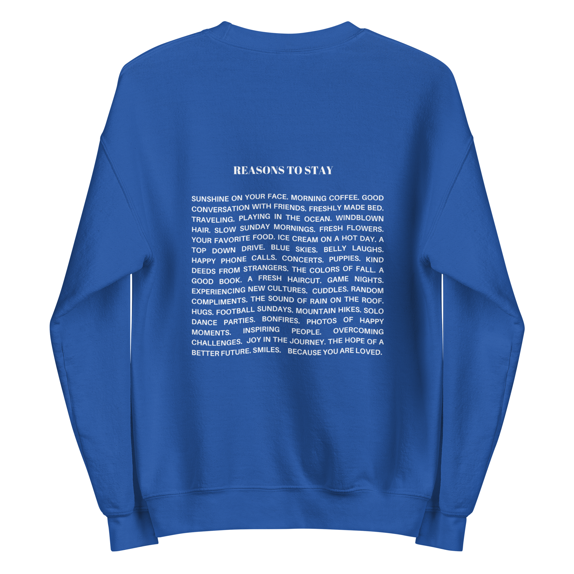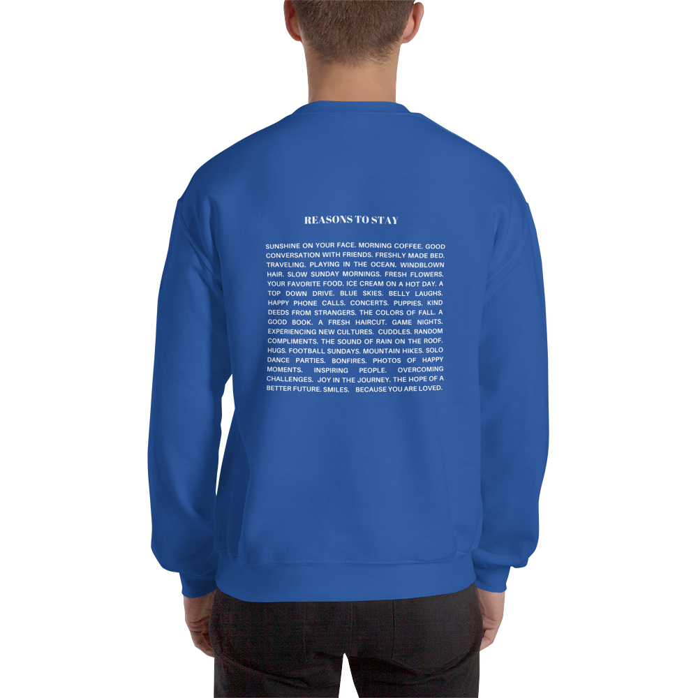 Our best selling design is being released in an exclusive blue crewneck in honor of suicide awareness and prevention month. This crewneck will only be available for purchase through the end of the month. 20% of all sales will be donated to the organization To Write Love On Her Arms who is raising money for free therapy to those who don't have access to it.
