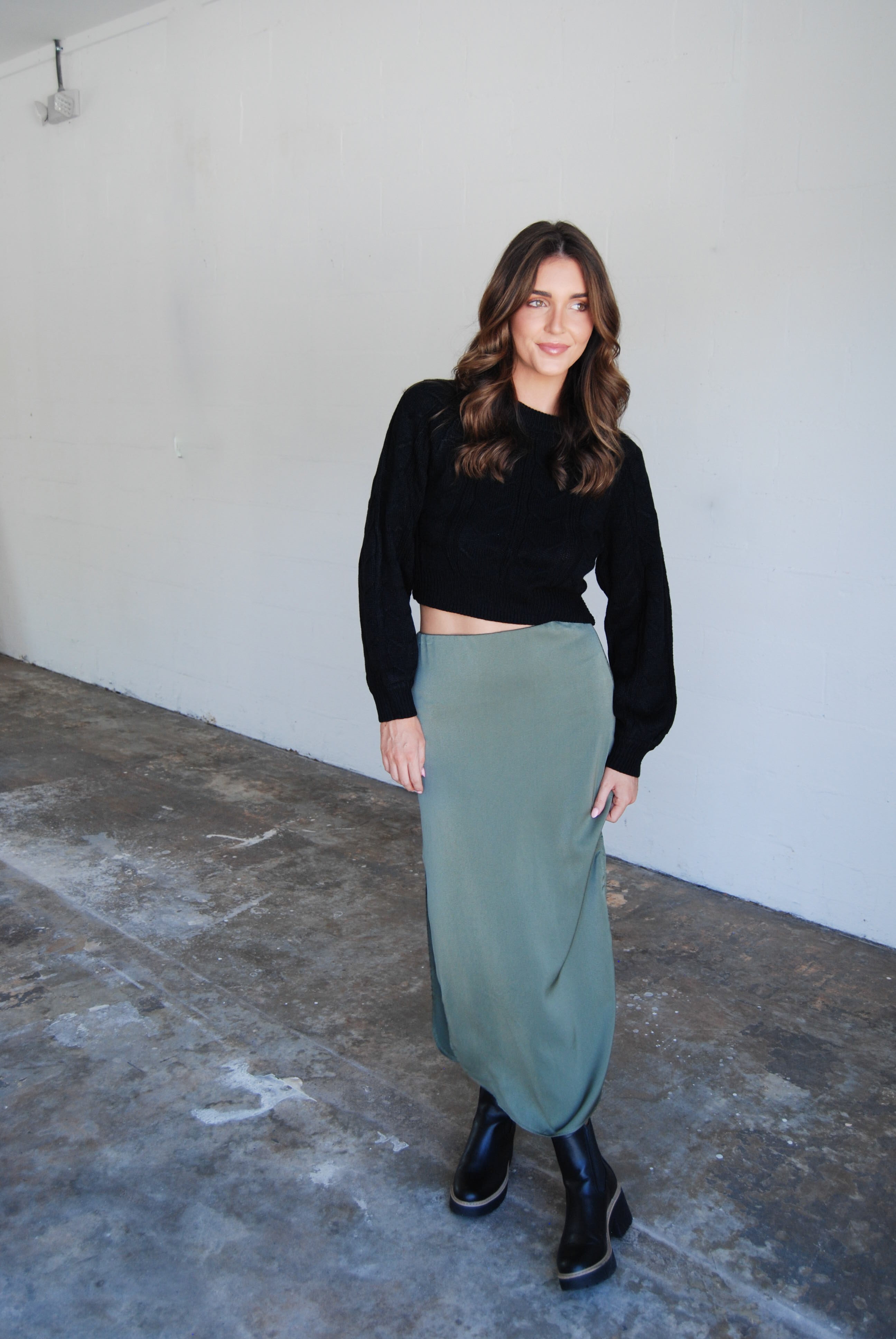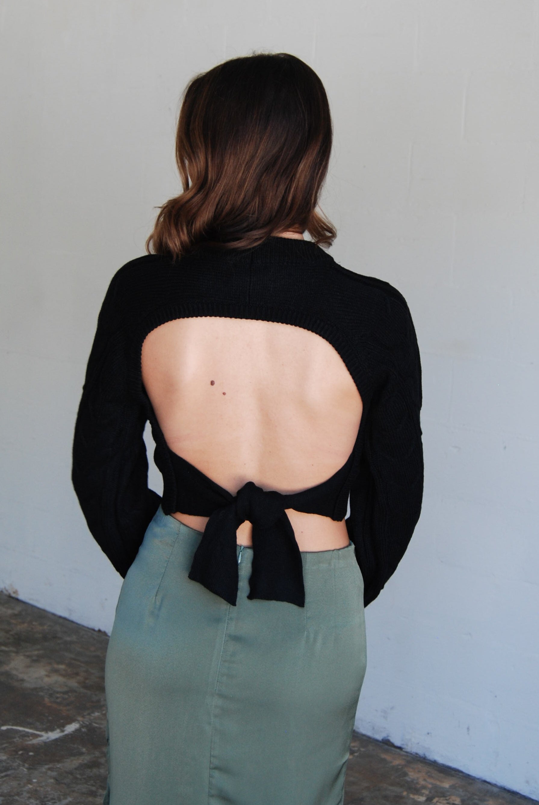 Don't forget to turn around in the Remind You Not Backless Sweater! This playful tie back sweater features a stunning open back, cute cable detail, and a subtle bubble sleeve. With a touch of sexiness and sophistication, it's perfect for any occasion.