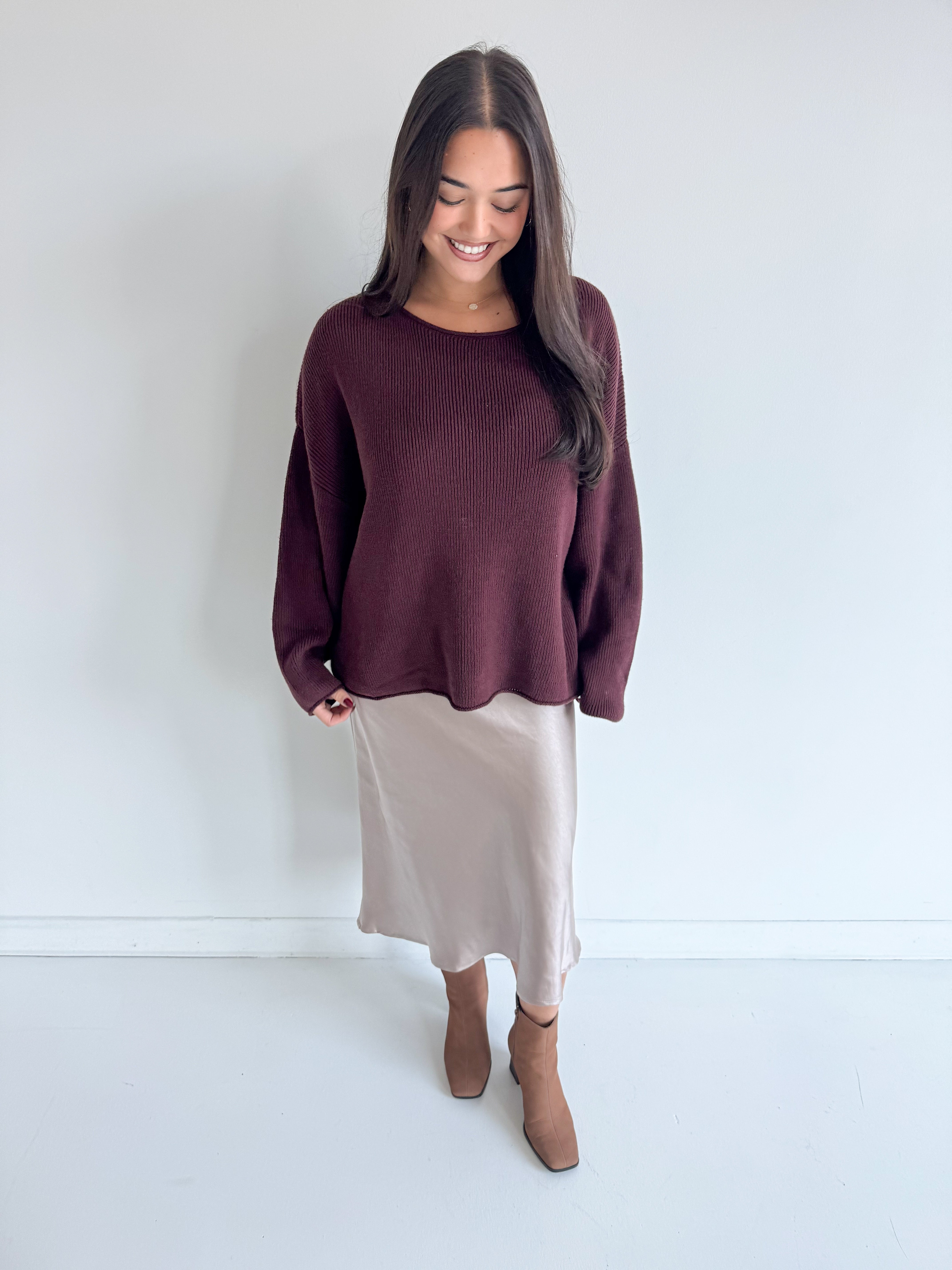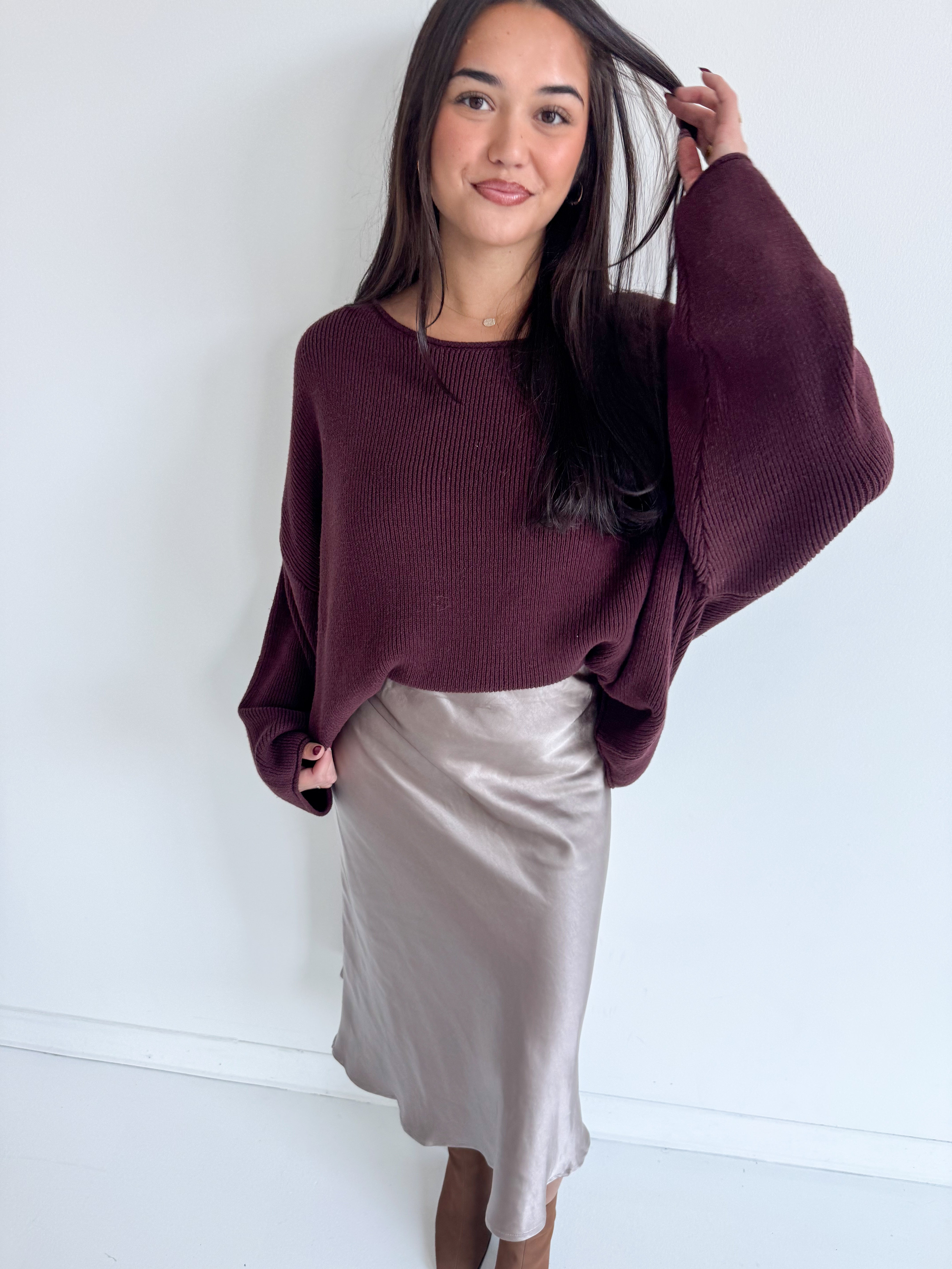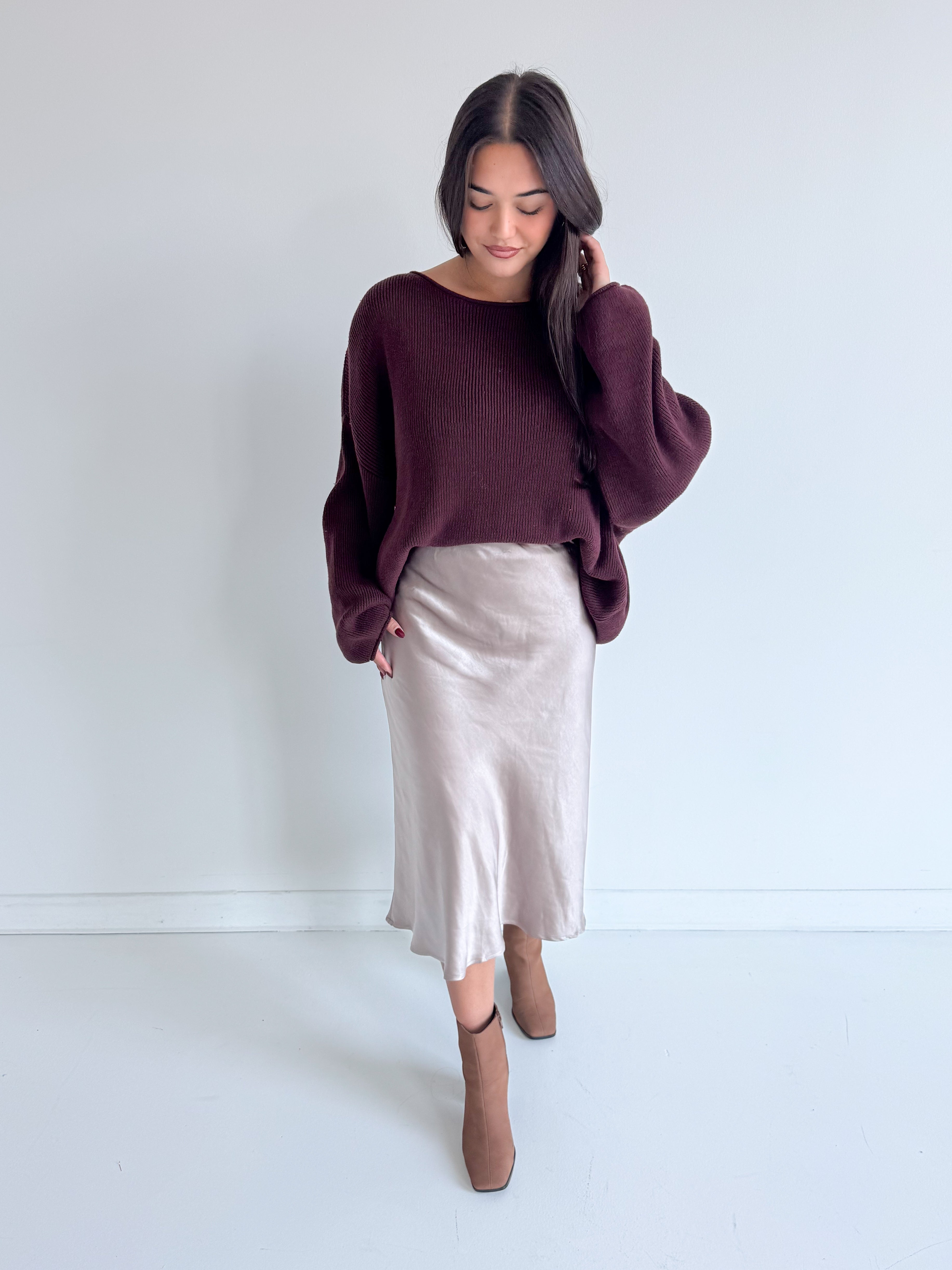Slip into pure sophistication with this satin midi skirt—a shimmering showstopper that plays beautifully with light. The fluid drape flatters every figure while keeping things effortlessly chic, whether you're heading to a holiday party or grabbing drinks with friends. Style it minimalist with a crisp tee or go bold with a statement blouse. Either way, you've got a timeless piece that works as hard as you do.