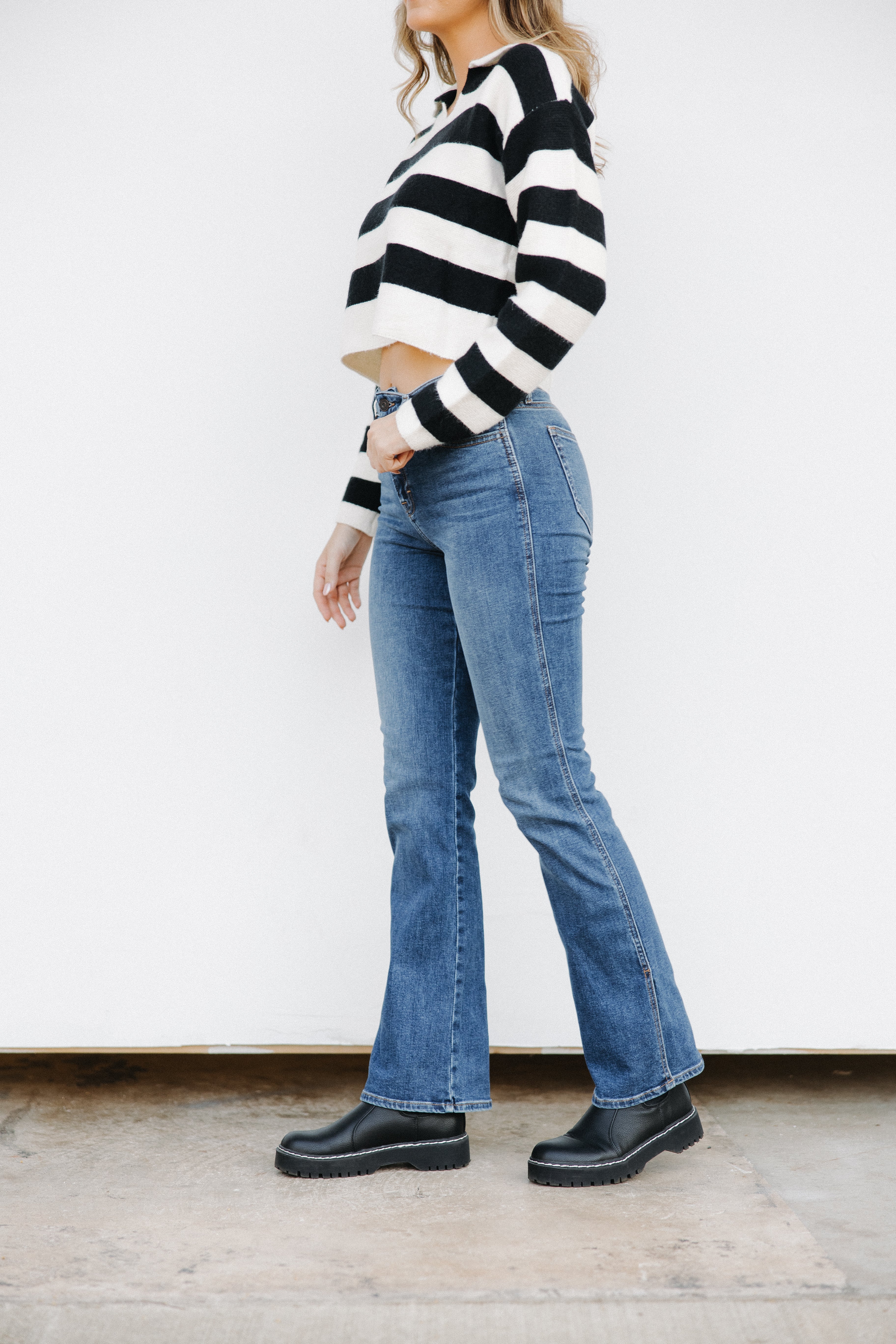 The Ryan Bootcut Jean is the perfect denim for the gal who wants to be stylish but isn't feeling the wide leg boyfriend styles that are trending. Enjoy the extra comfy feel!
