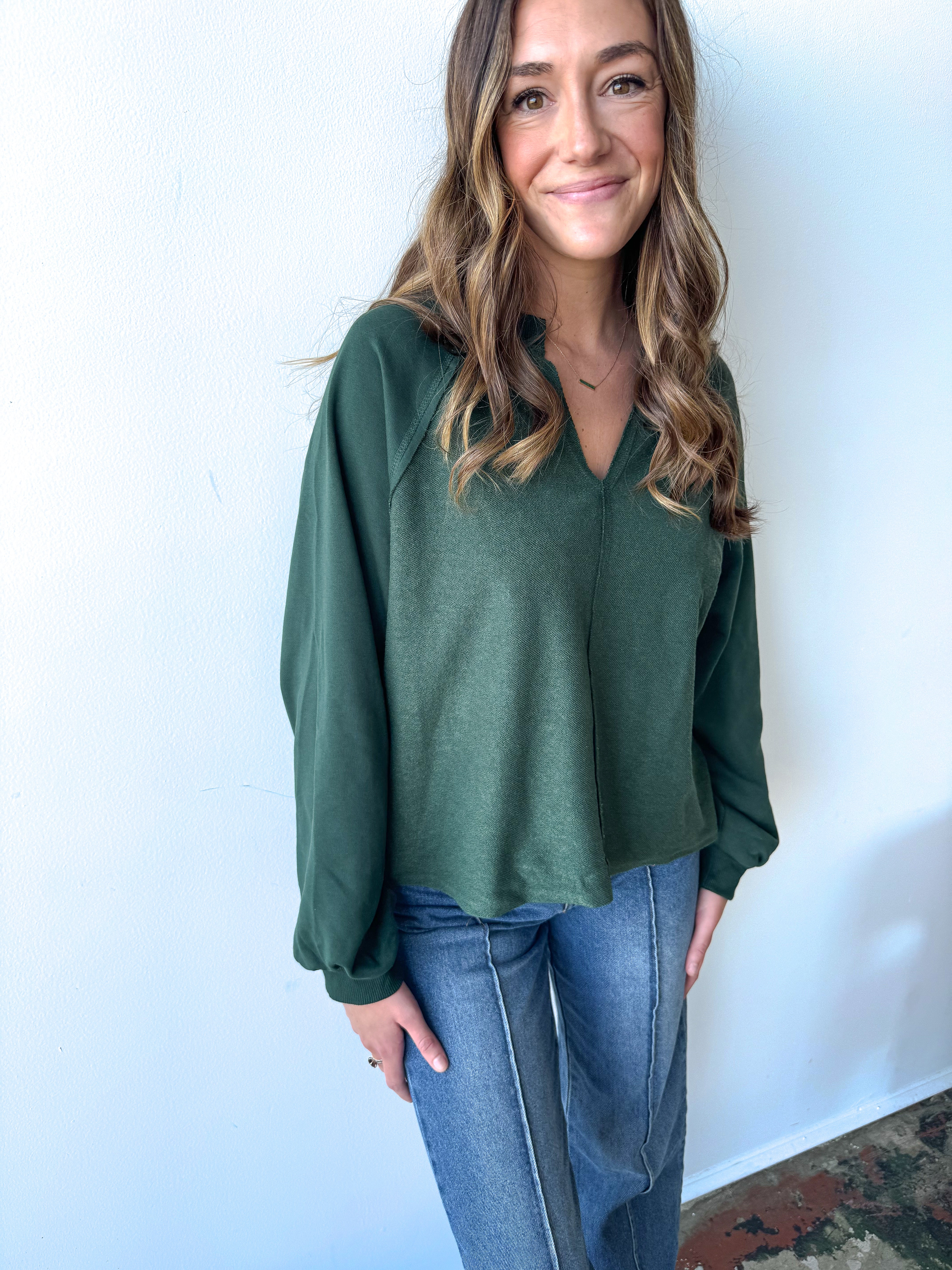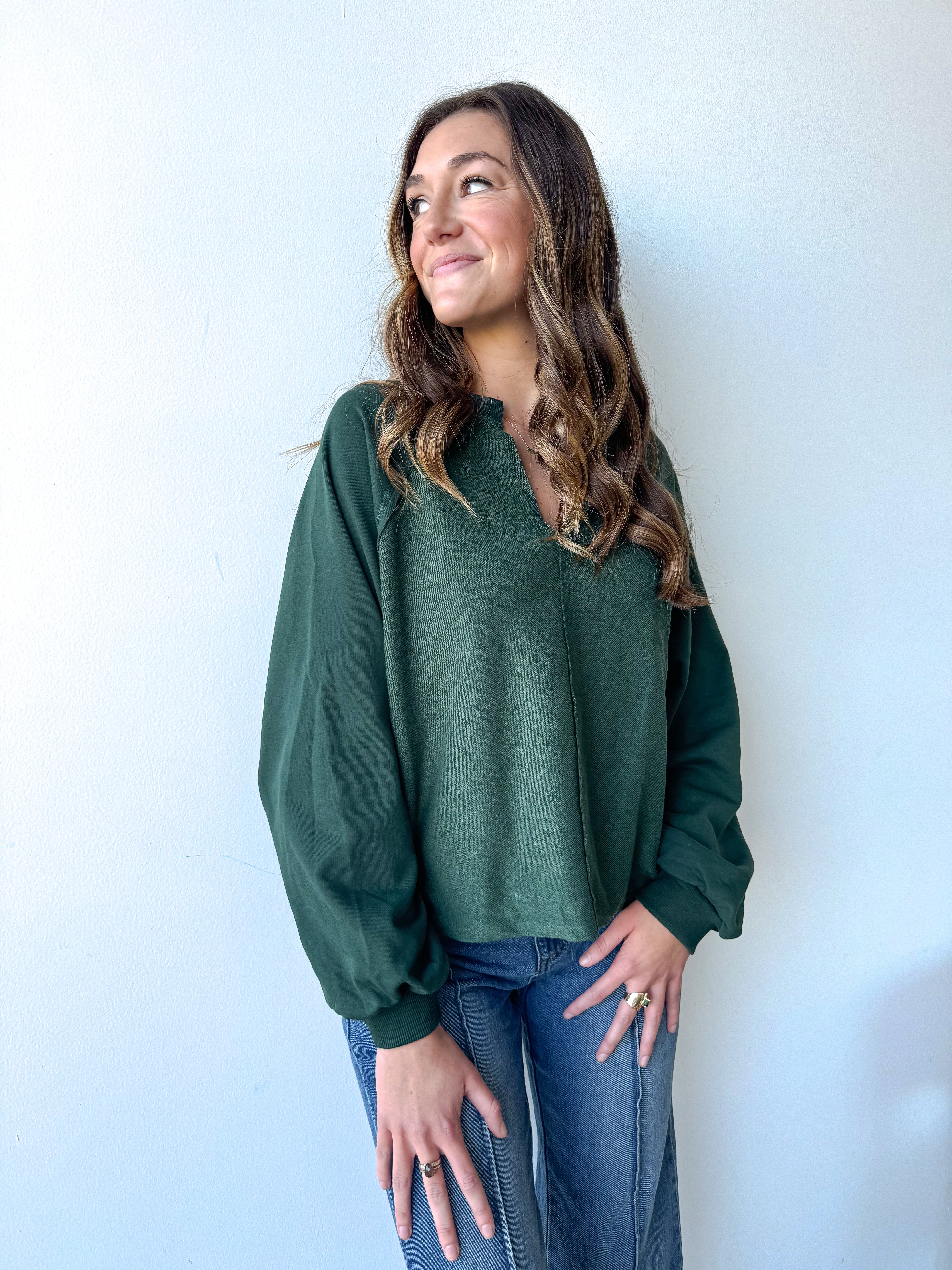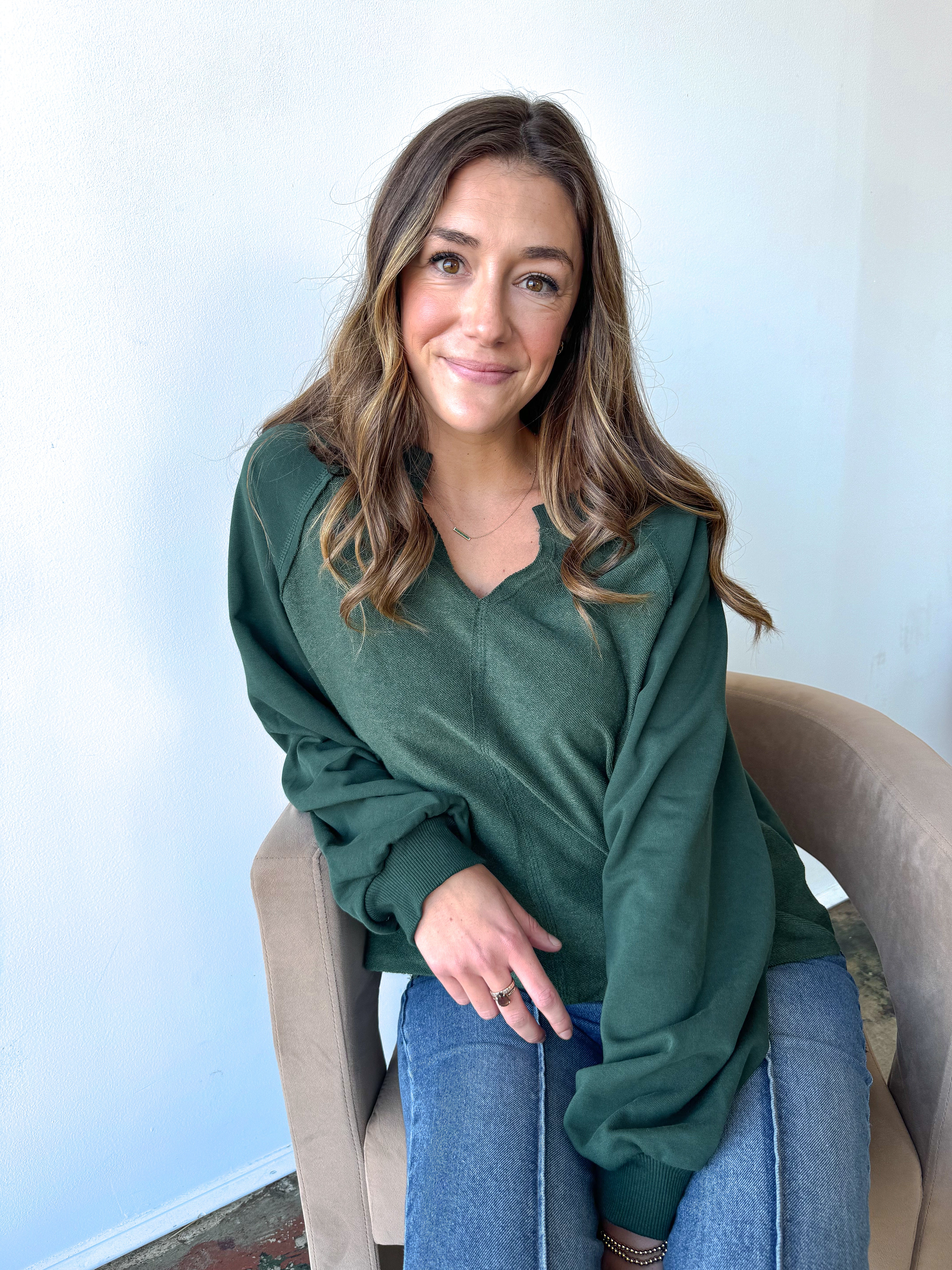 Introducing our Slightly Elevated Everyday Top! With its exposed seam and relaxed long sleeves, this knit top contrast top is both comfy and effortlessly stylish. Perfect for those looking for easy vibes without sacrificing comfort.