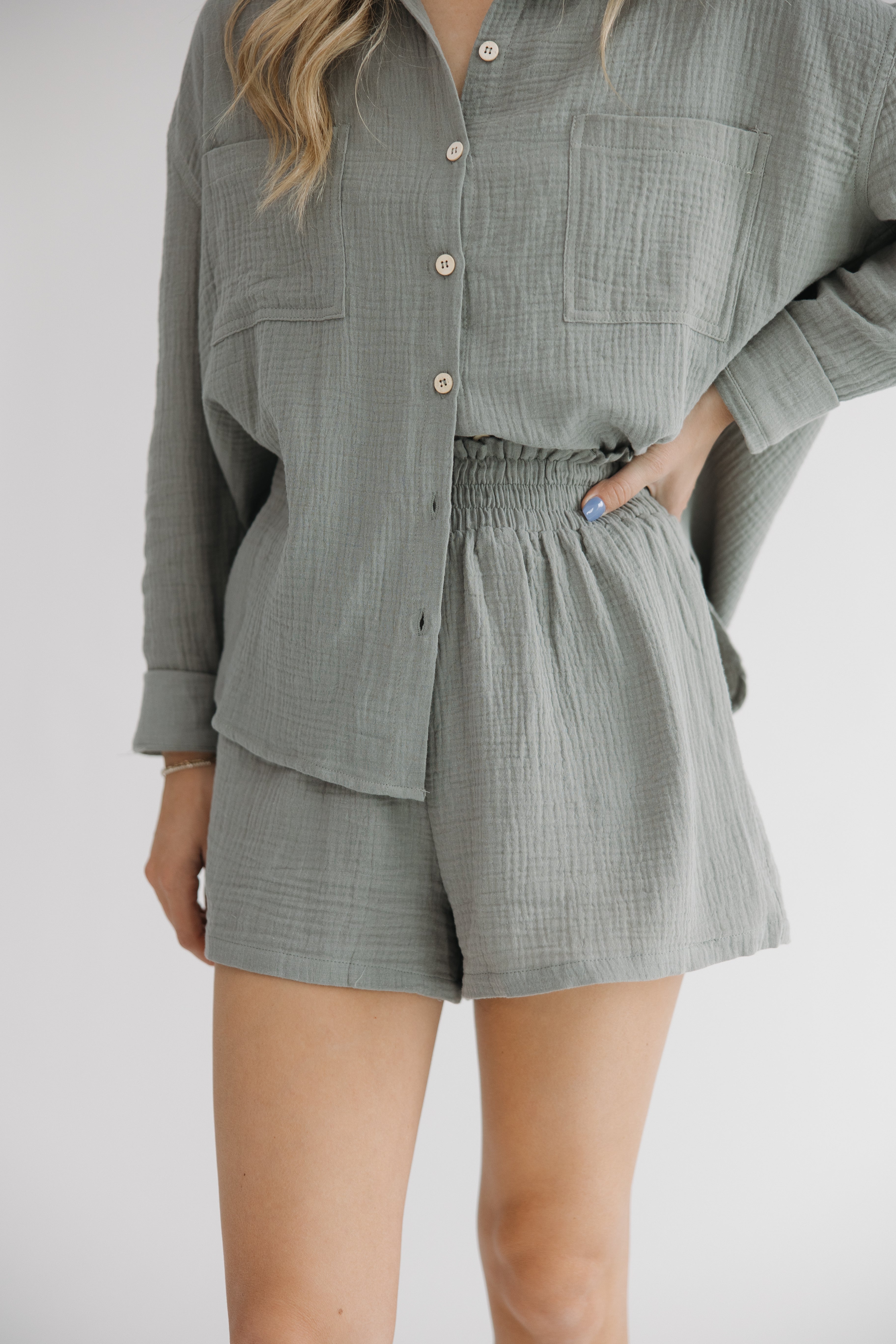 These lightweight gauze shorts are designed for effortless style and comfort. The elastic waistband ensures a perfect fit, while the matching top creates a versatile and cute set. Guaranteed to help you smooth sail through the day, these shorts are super cozy and easy to wear.