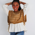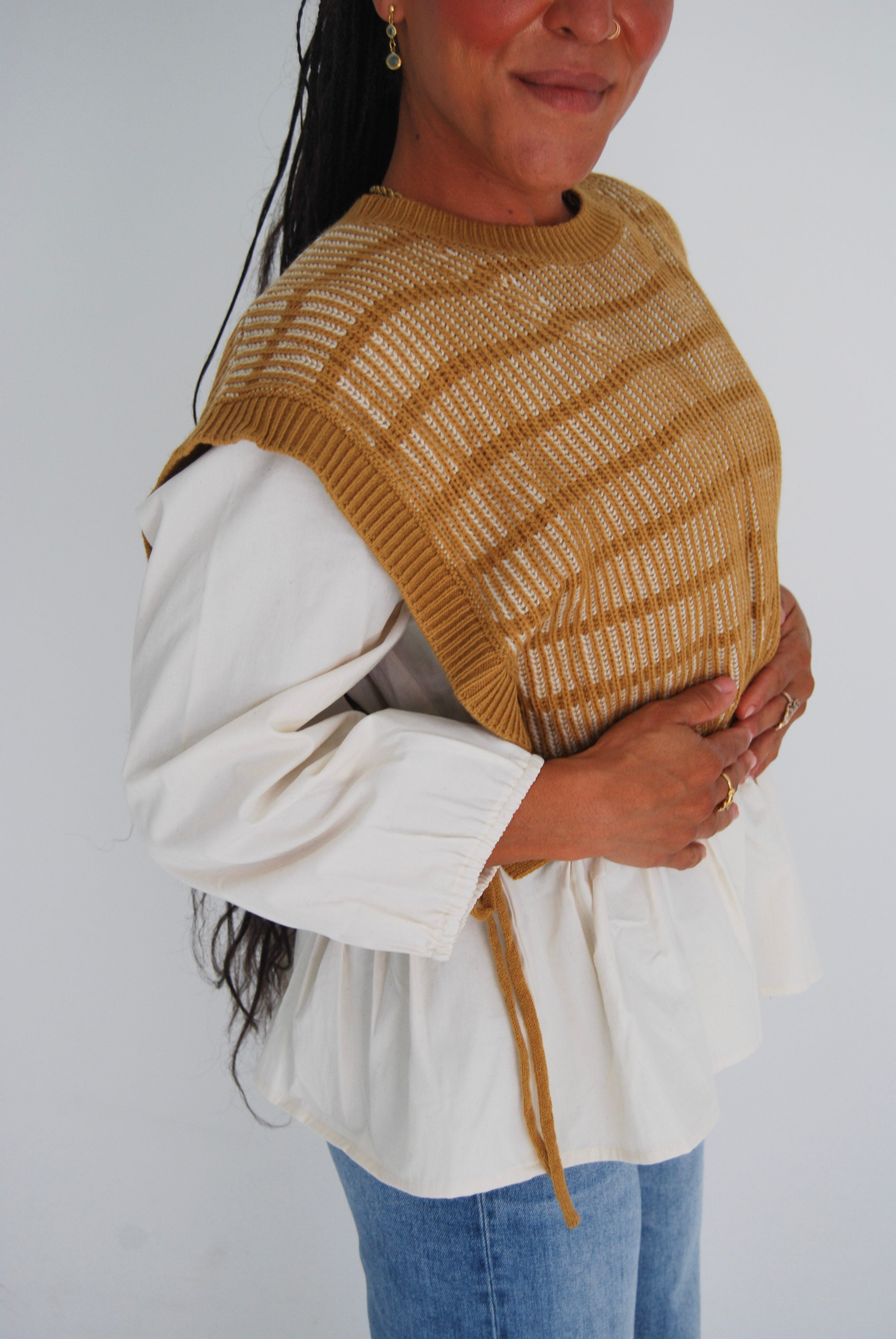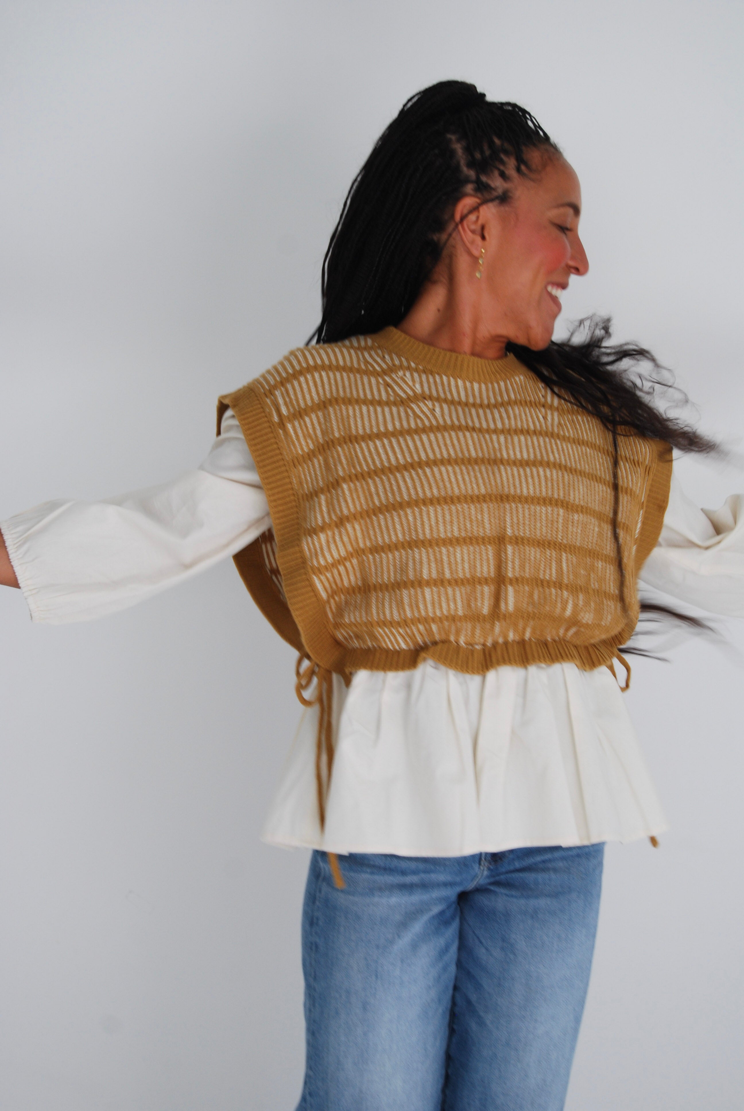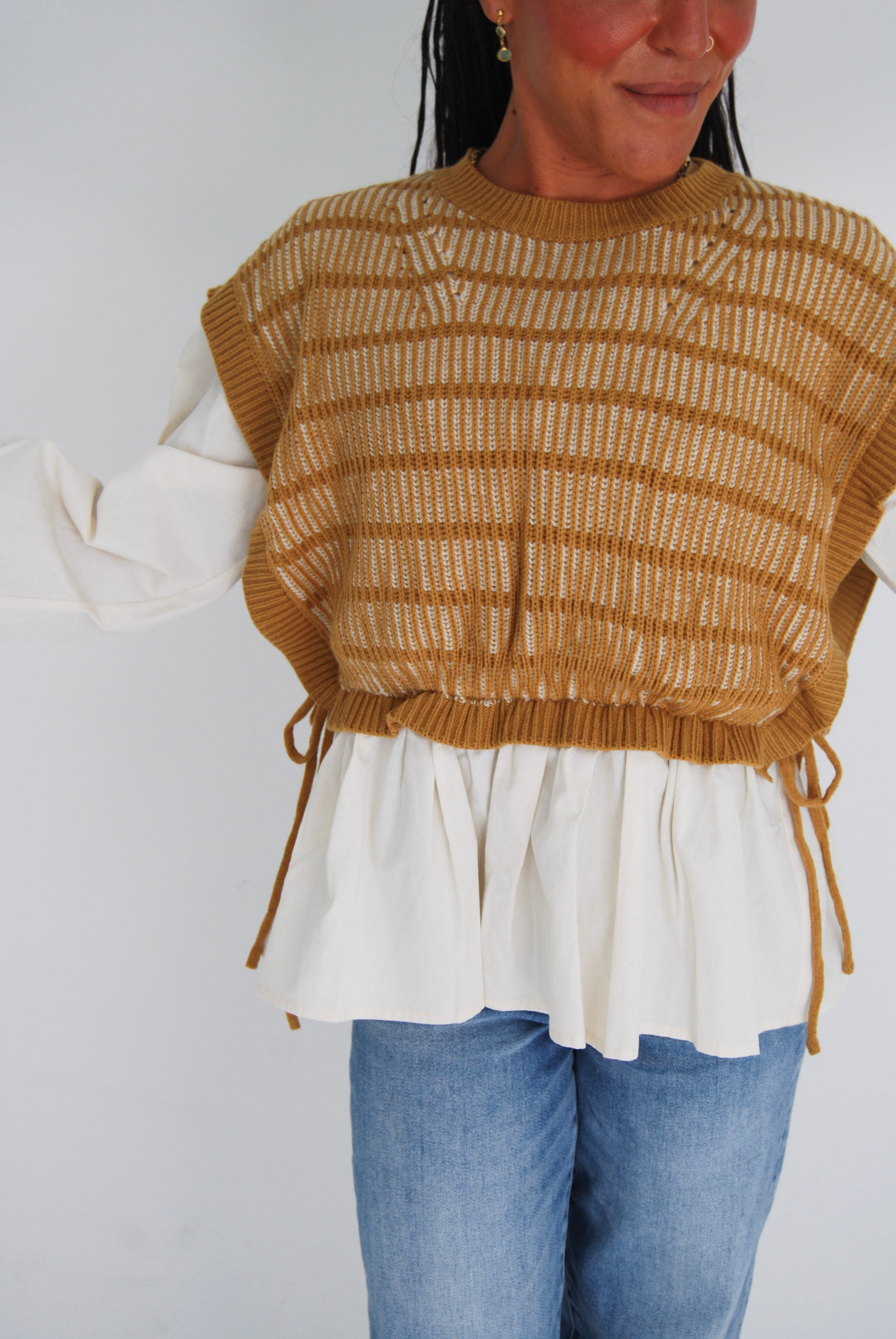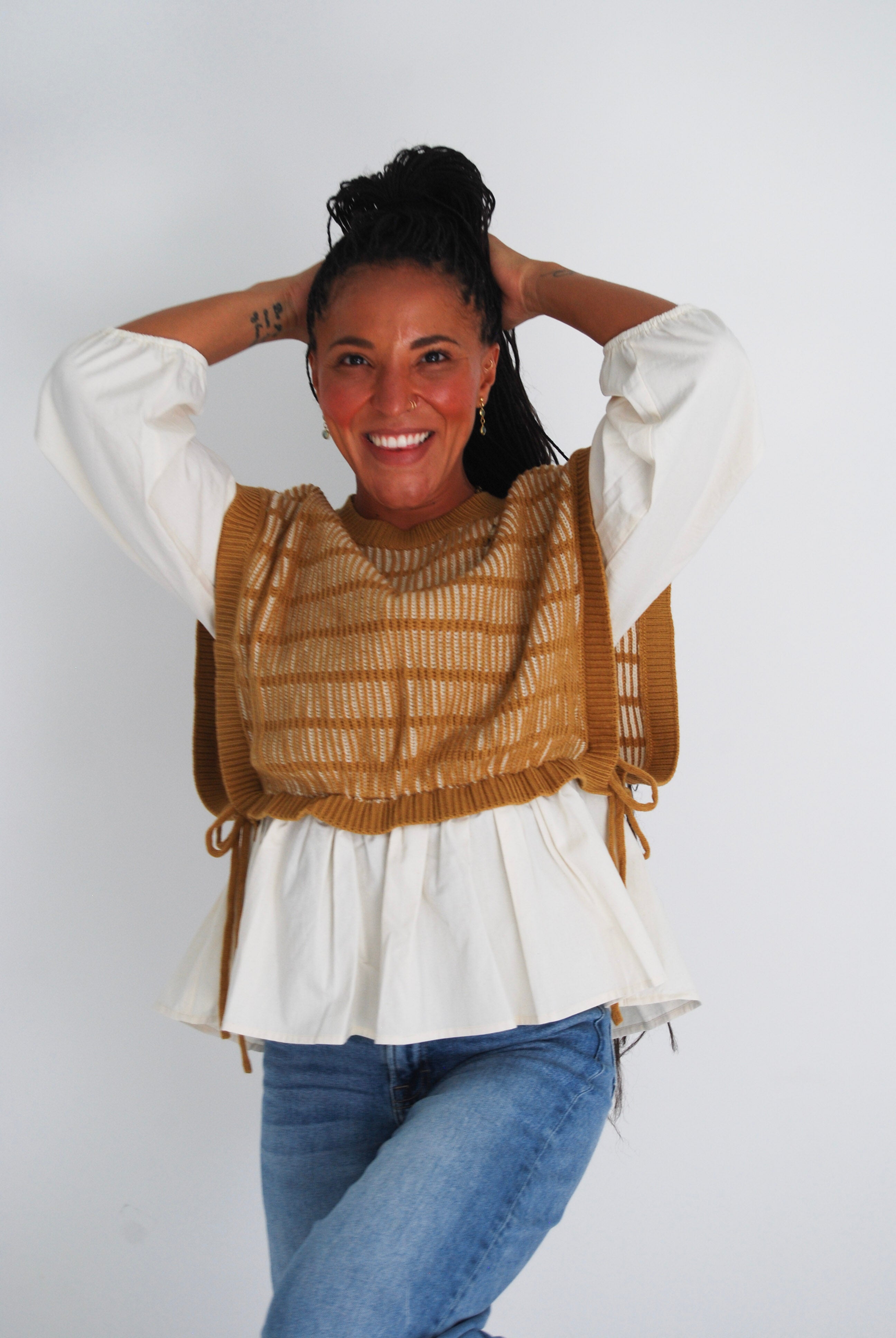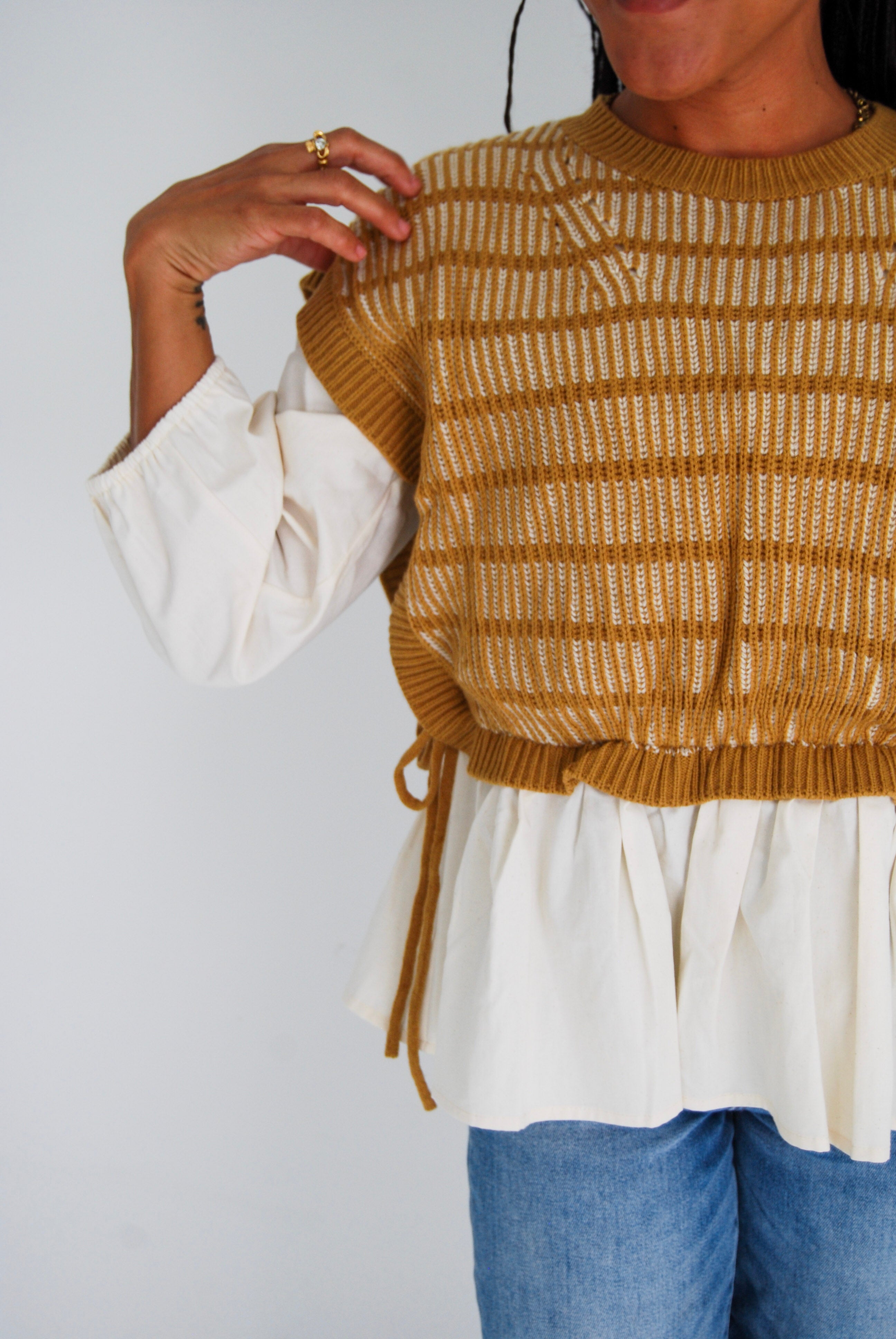 Add a dash of fun to your wardrobe with the Sugar and Spice Blouse! This playful top pairs 3/4 sleeves with an attached knit vest overlay and side tie detail, creating a flirty peplum silhouette that’s fun and flattering. Perfect for mixing comfort with style!