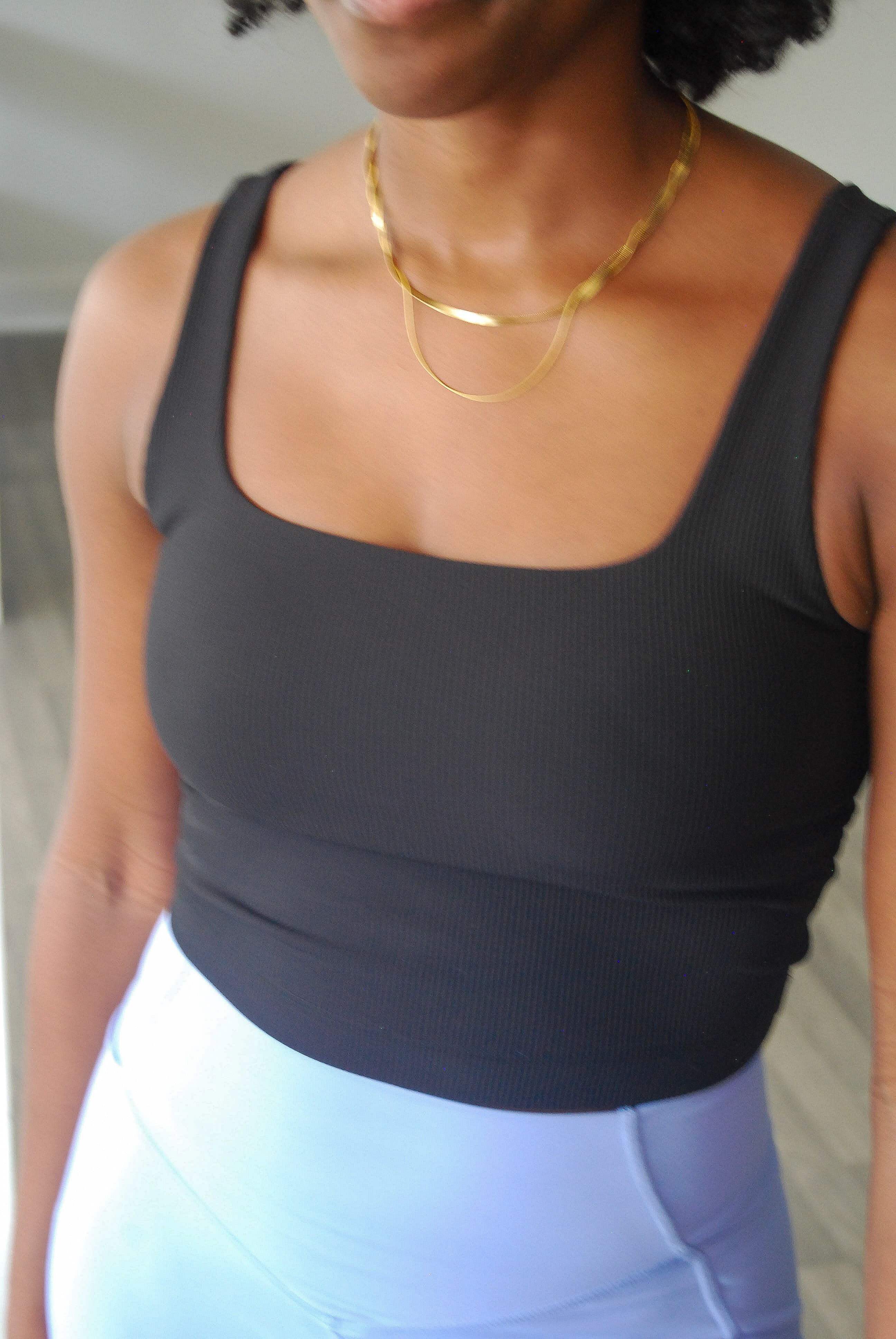 Sweat it out in style with our Ribbed Square Neck Crop Tank! This versatile and comfy tank is perfect for both working out and dressing down. Its ribbed design adds a touch of texture, while the square neck and bra feature provide support and coverage. Keep it casual or break a sweat, this tank has got you covered!