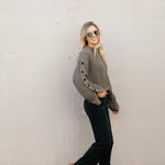 Get ready to turn heads in the Enjoy The Journey Sweater, a chunky knit masterpiece that's anything but ordinary. The relaxed wide neckline pairs perfectly with whimsical button embellishments running down the sleeves, adding personality to every gesture. Crafted in a substantial knit that feels as good as it looks, this slightly cropped beauty hits just right for mixing with your favorite high-rise styles. Cozy, unique, and totally cool—your new favorite sweater awaits.